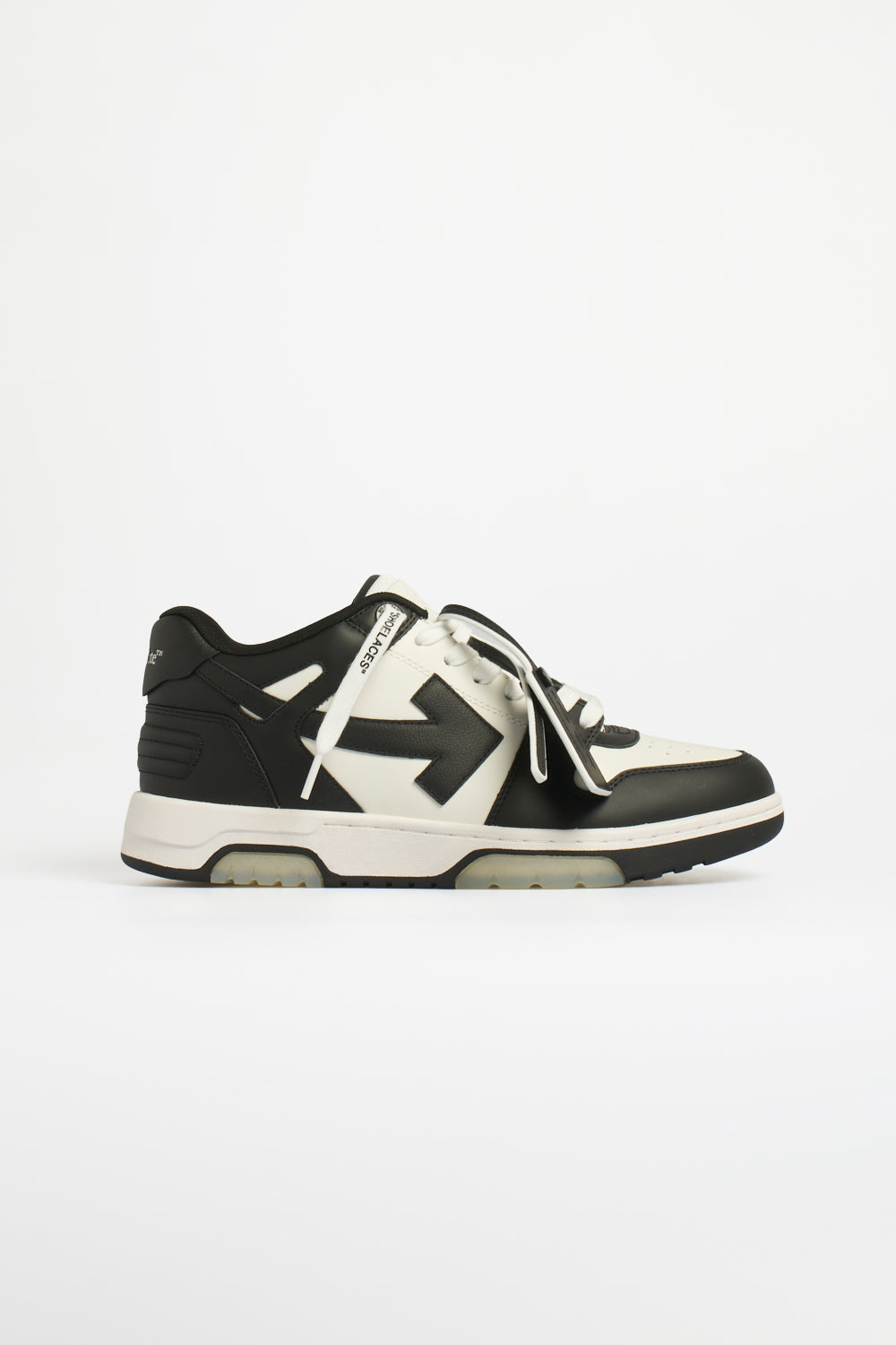 Sneakers uomo Off-White in pelle con design bicolore e iconica freccia laterale applicata a contrasto. La tomaia combina pannelli strutturati con dettagli traforati sulla punta, mantenendo un’estetica street contemporanea.