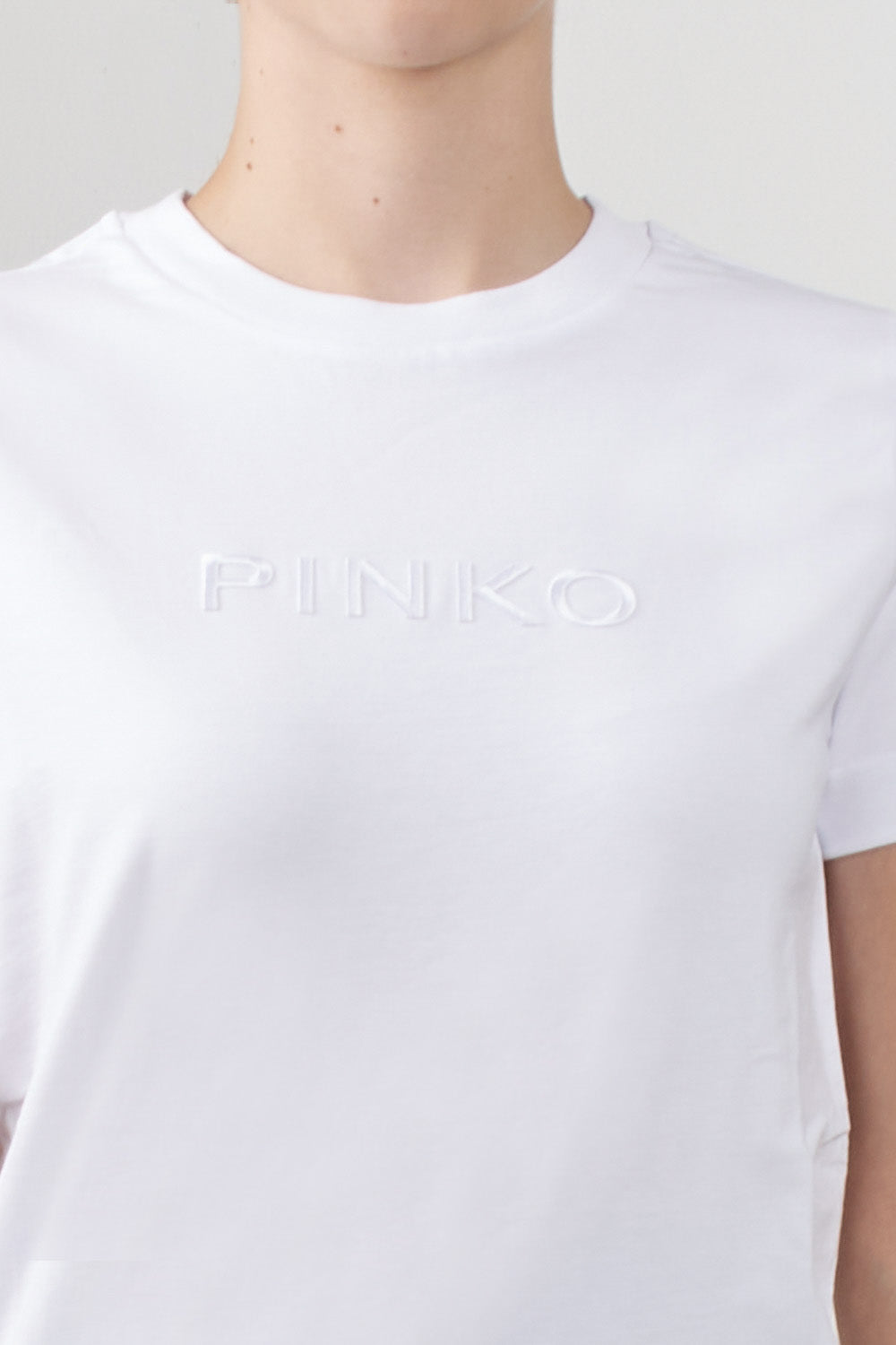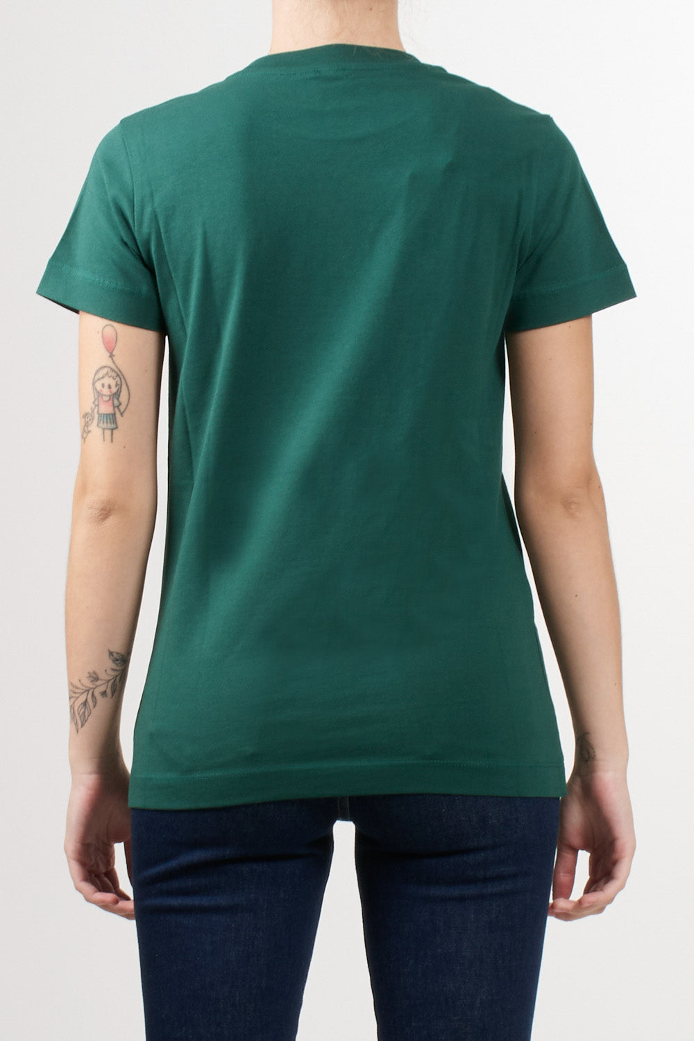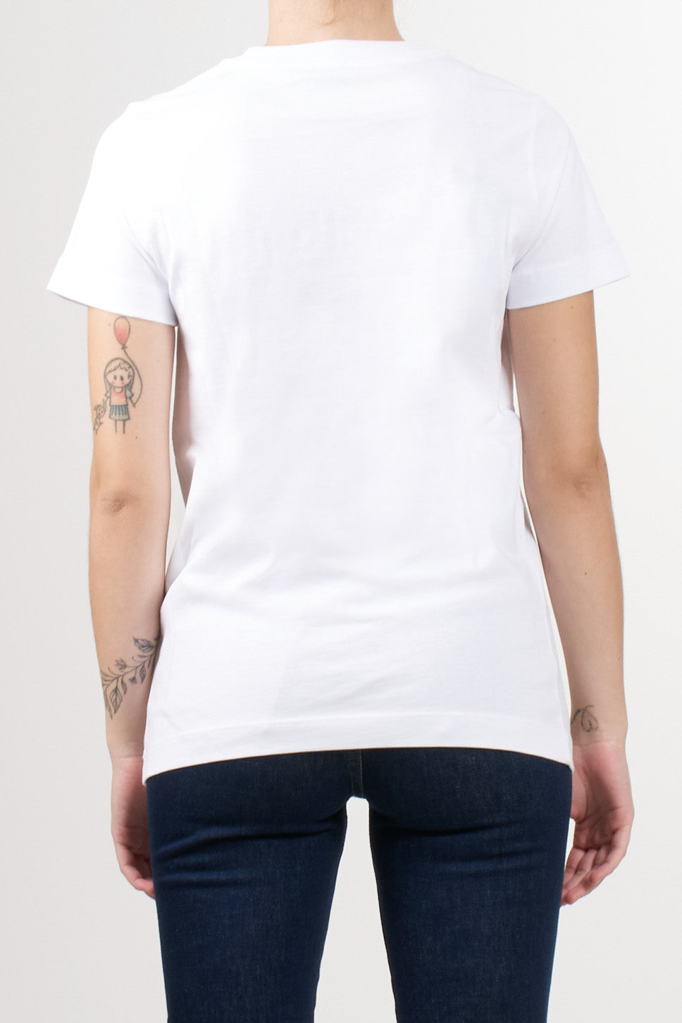 T-shirt in cotone a maniche corte, caratterizzata da linea essenziale e logo ricamato a rilievo sul petto. Un capo basico ma distintivo, adatto a diversi abbinamenti casual.