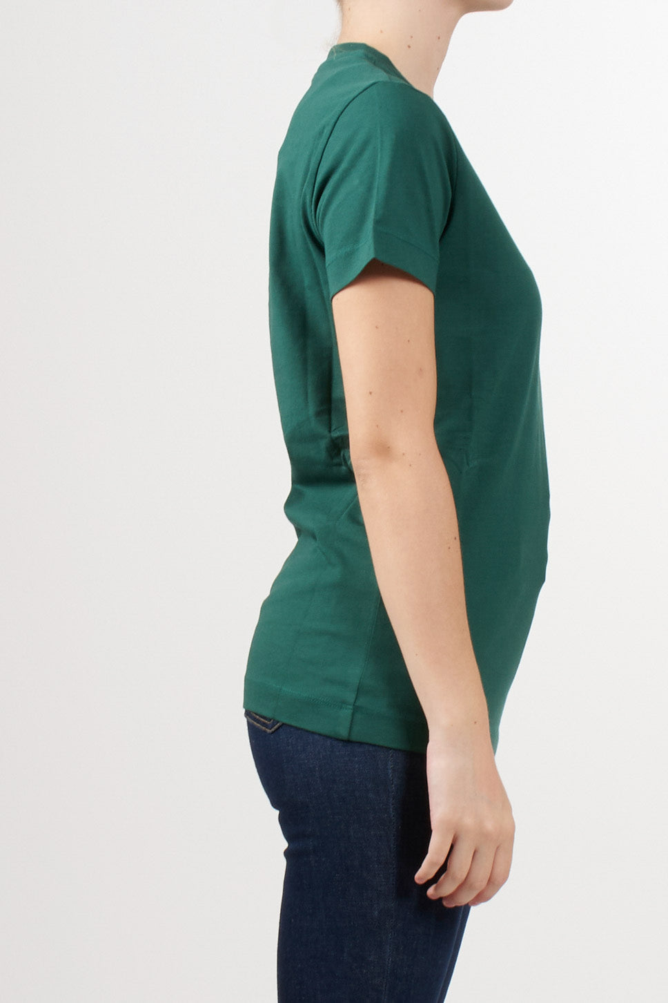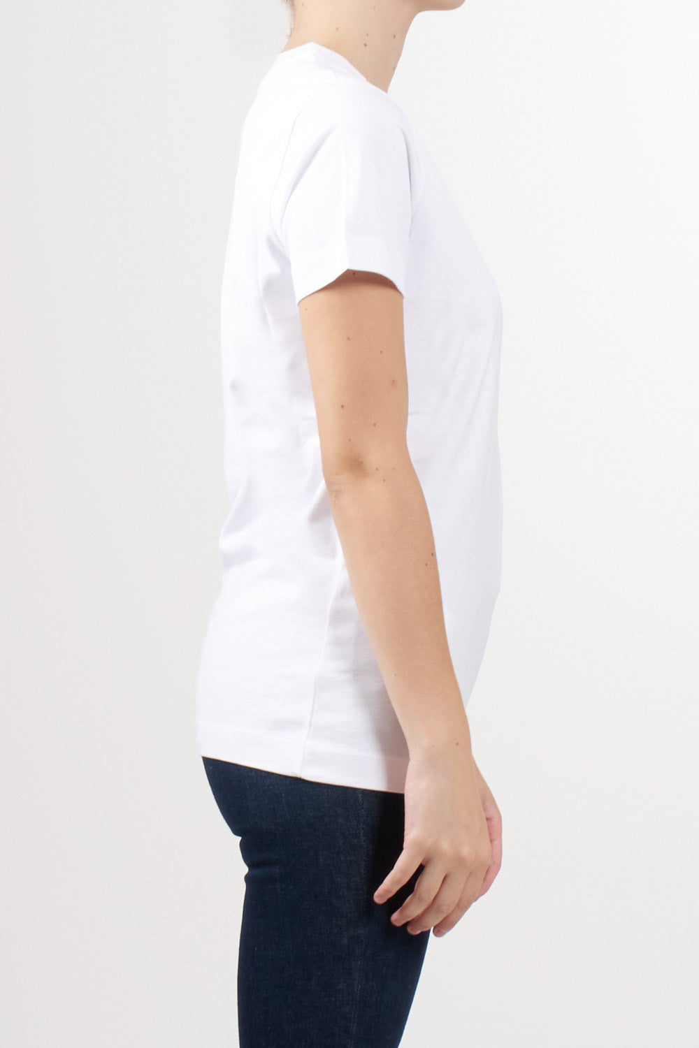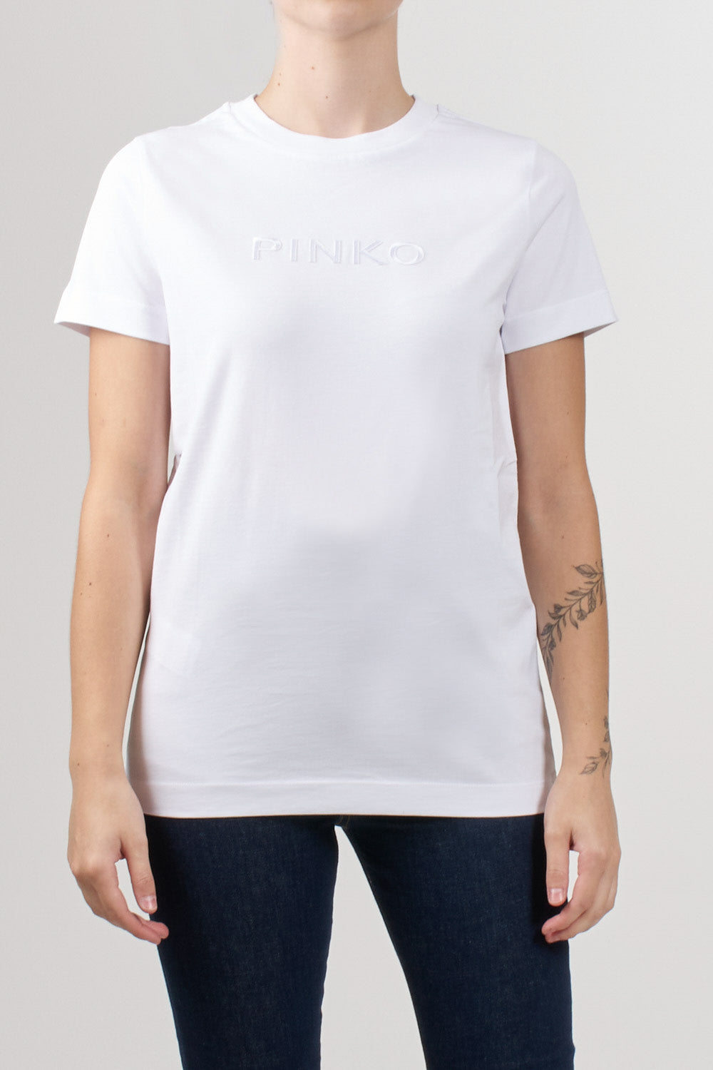 T-shirt in cotone a maniche corte, caratterizzata da linea essenziale e logo ricamato a rilievo sul petto. Un capo basico ma distintivo, adatto a diversi abbinamenti casual.
