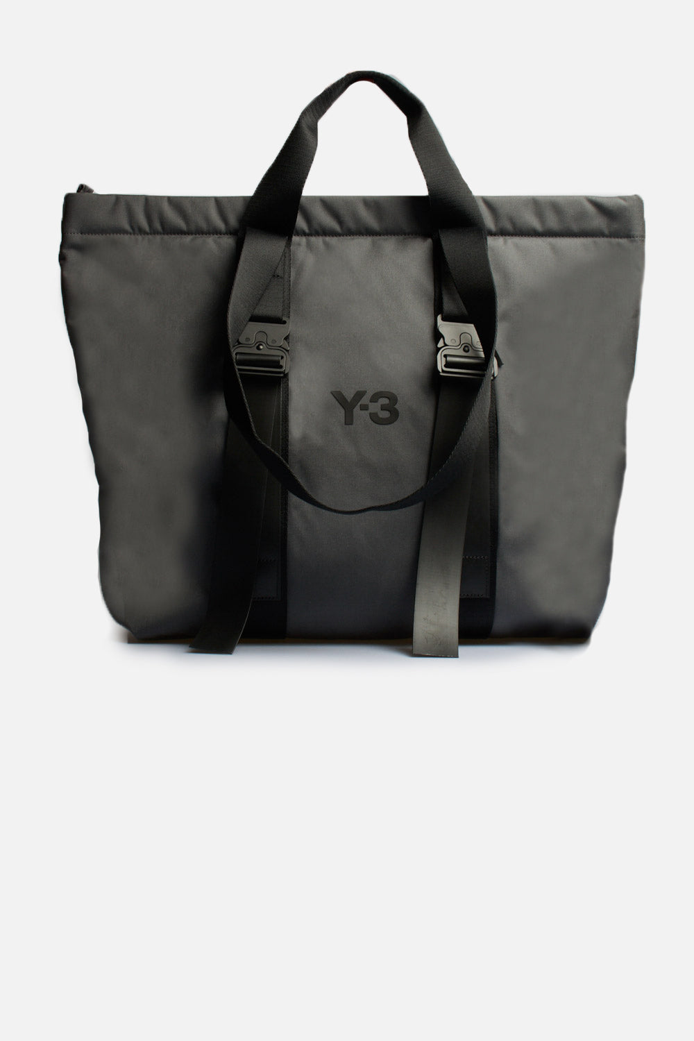 Borsa Y-3 Shopper è una borsa capiente realizzata in tessuto di nylon CORDURA, leggero ma resistente. Una chiusura con fibbia in metallo completa il look, Doppie maniglie per il trasporto, Logo Y-3 in silicone, tasca interna a bustina e tasca con cerniera in metallo con anello a D