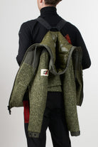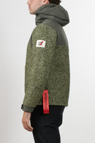 Featuring a front zip closure, large side pockets with flaps and snap buttons, an adjustable drawstring hood, and buttoned cuffs. The After Label logo patch on the left sleeve and a removable red logo tag add a distinctive touch to the look.