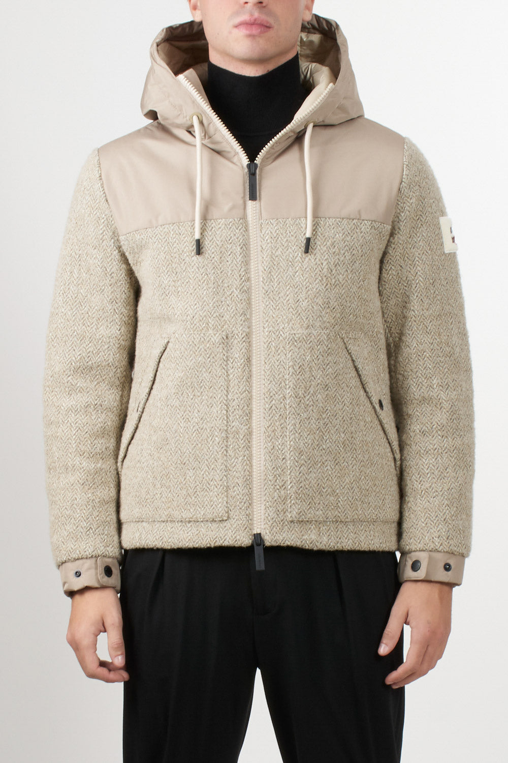 This After Label jacket features a sophisticated, contemporary design, a herringbone pattern, and smooth technical fabric details on the hood and upper hem. The padded interior ensures warmth and comfort, while the compact construction and clean lines make it the perfect piece for the cold season.