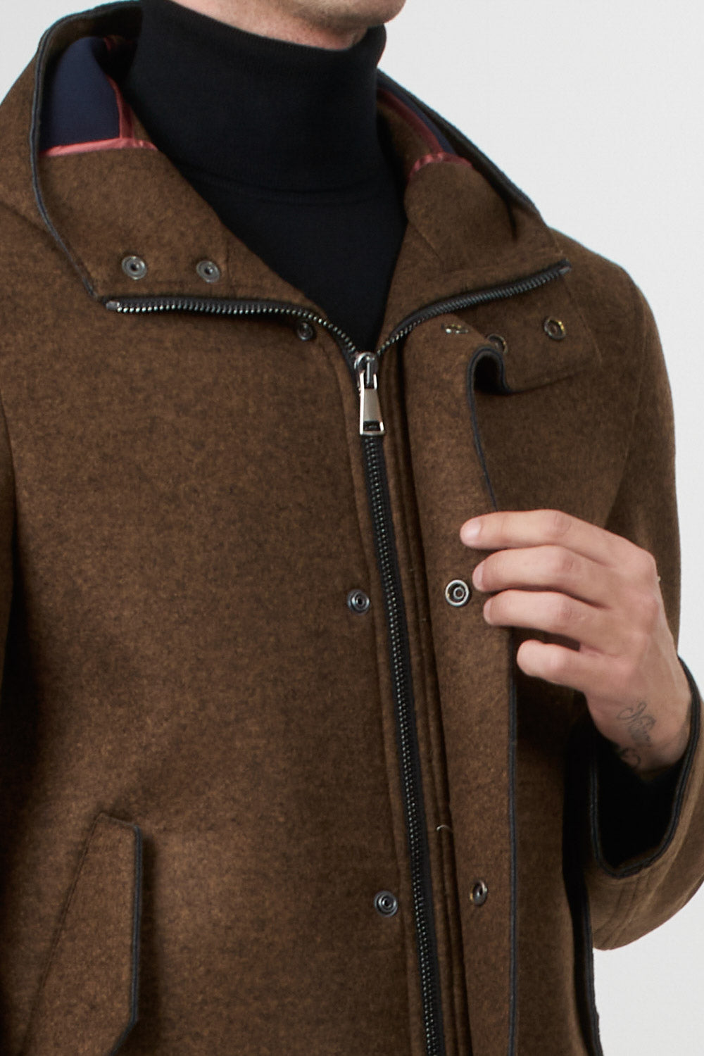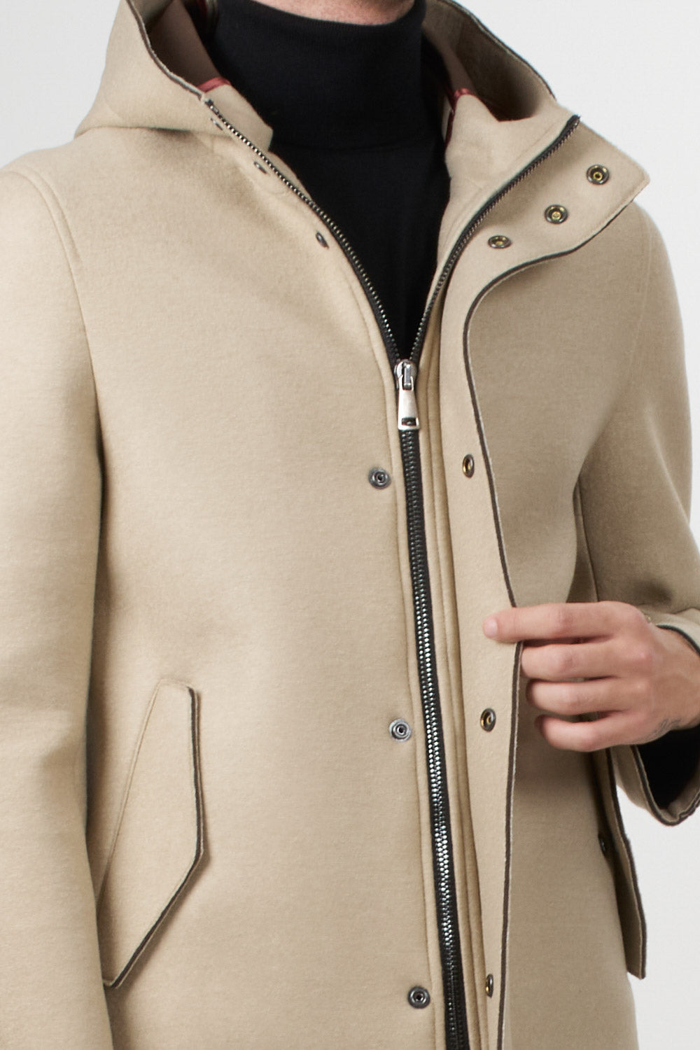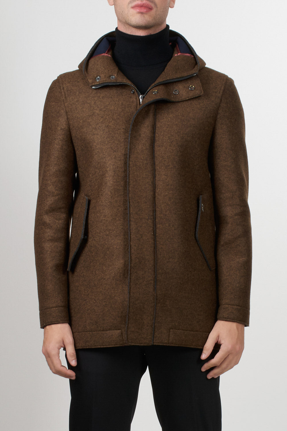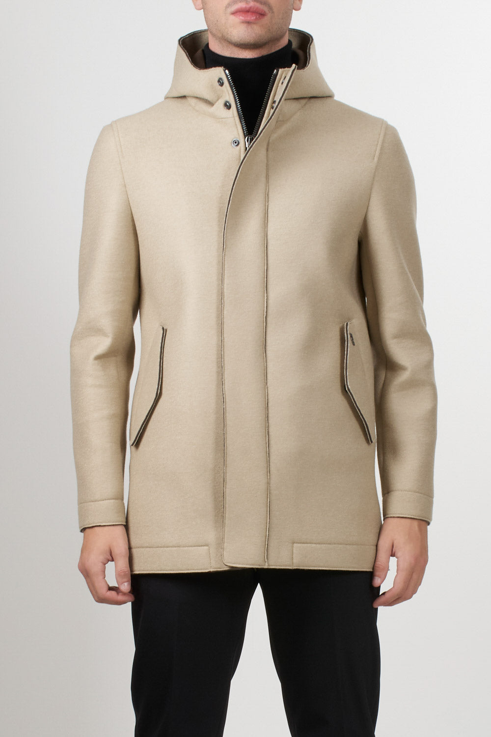 Bob Company long parka with button and zip fastening, hood and side pockets, perfect for completing formal and everyday looks with style.