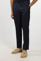 Hugo Boss trousers made from fine virgin wool, embodying the essence of sartorial minimalism and the brand's superior quality. The model stands out with a clean, pleat-free line and a classic concealed closure, offering a tapered silhouette that subtly enhances the figure. An essential and sophisticated garment, perfect for completing business looks or formal occasions in the spring/summer season thanks to the natural breathability of the fabric.