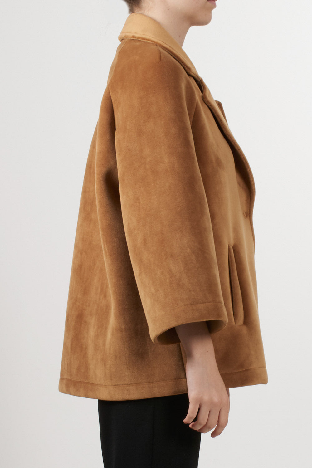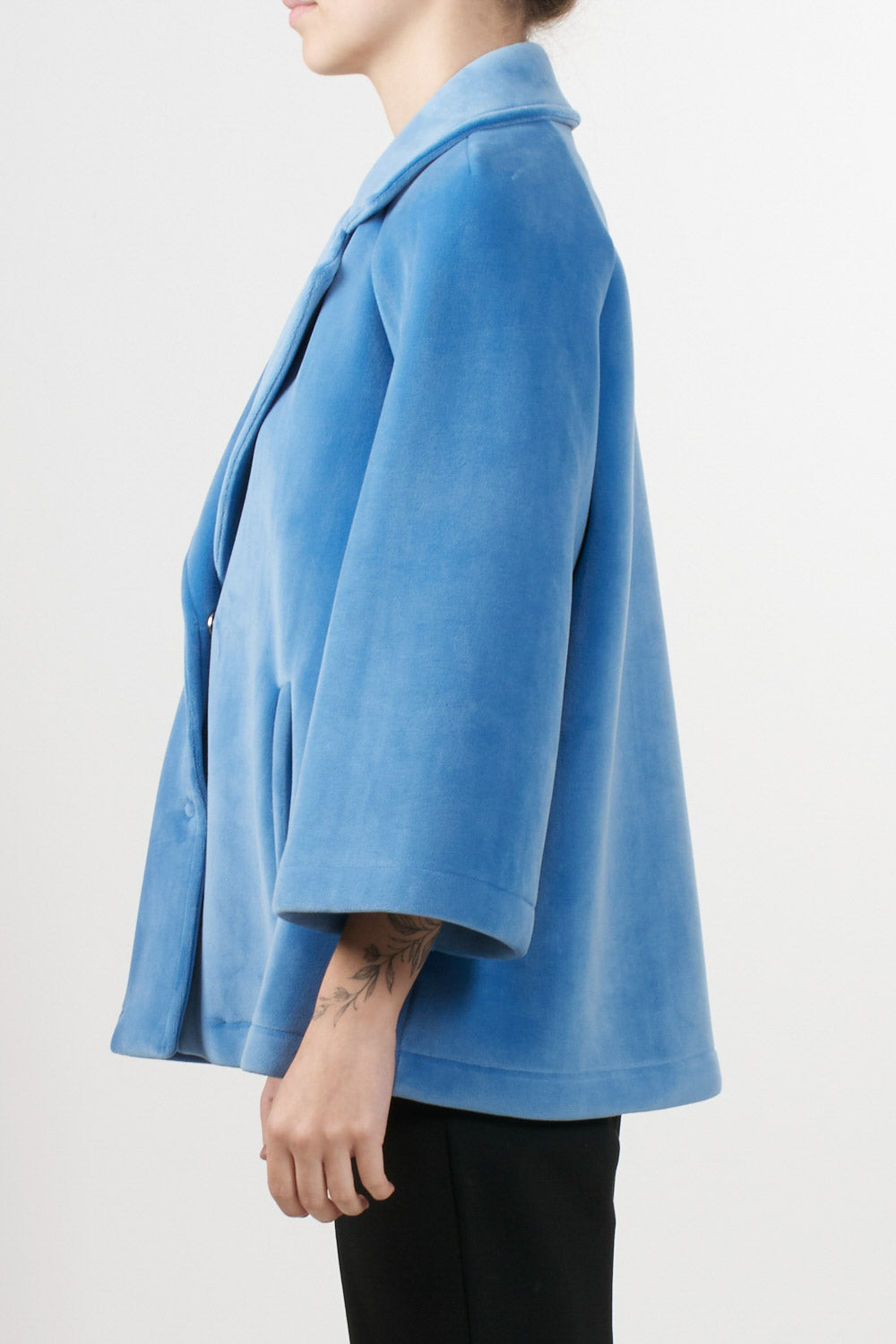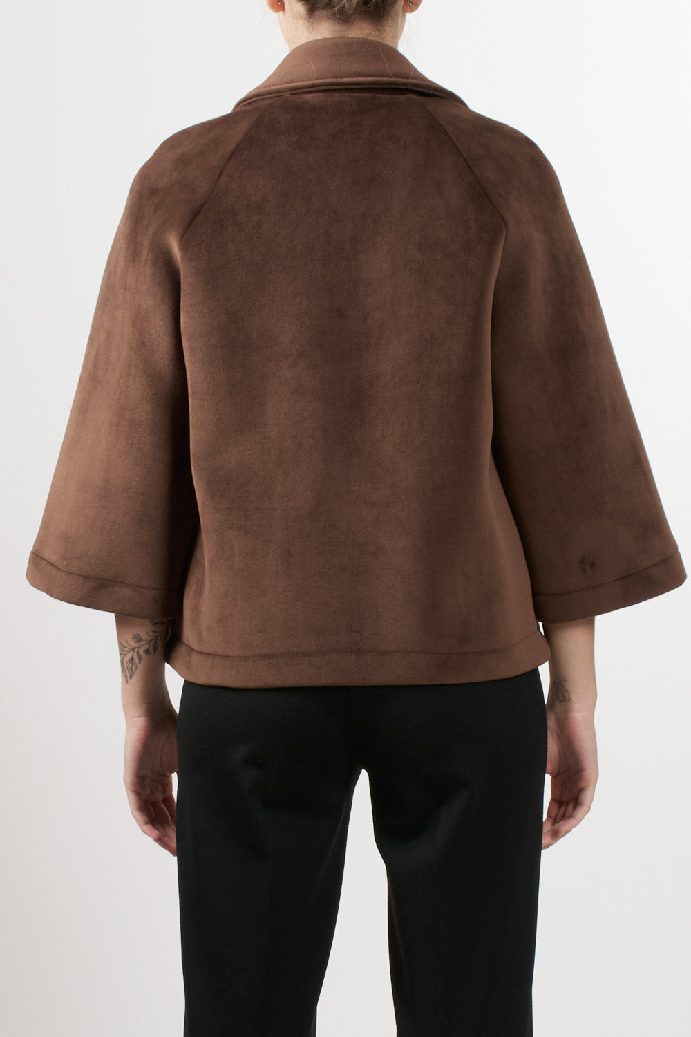 Tensione In's loose-fitting short jacket features 3/4 sleeves, a front button fastening, classic lapel collar and side pockets, completing the essential and sophisticated design, ideal for adding an elegant touch to even the most casual outfits.