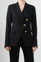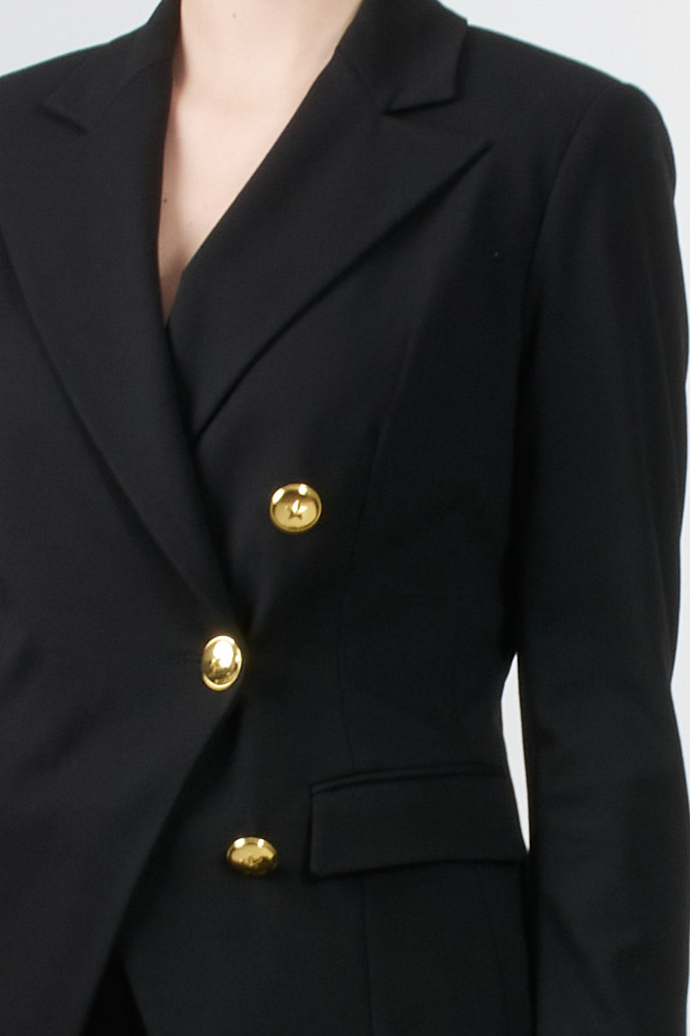Asymmetrical double-breasted blazer in stretch technical fabric – Pinko