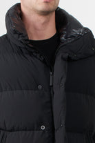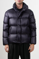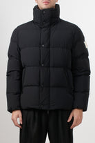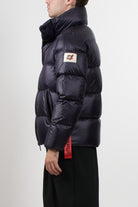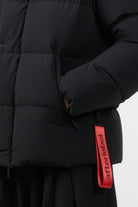 Chamonix short down jacket by After Label made in an ultra-light version of matte stretch nylon, Front zip fastening with snap button placket, Double welt pocket with zip, Heat-applied slash on the back of the garment, Red After Label logo tag.