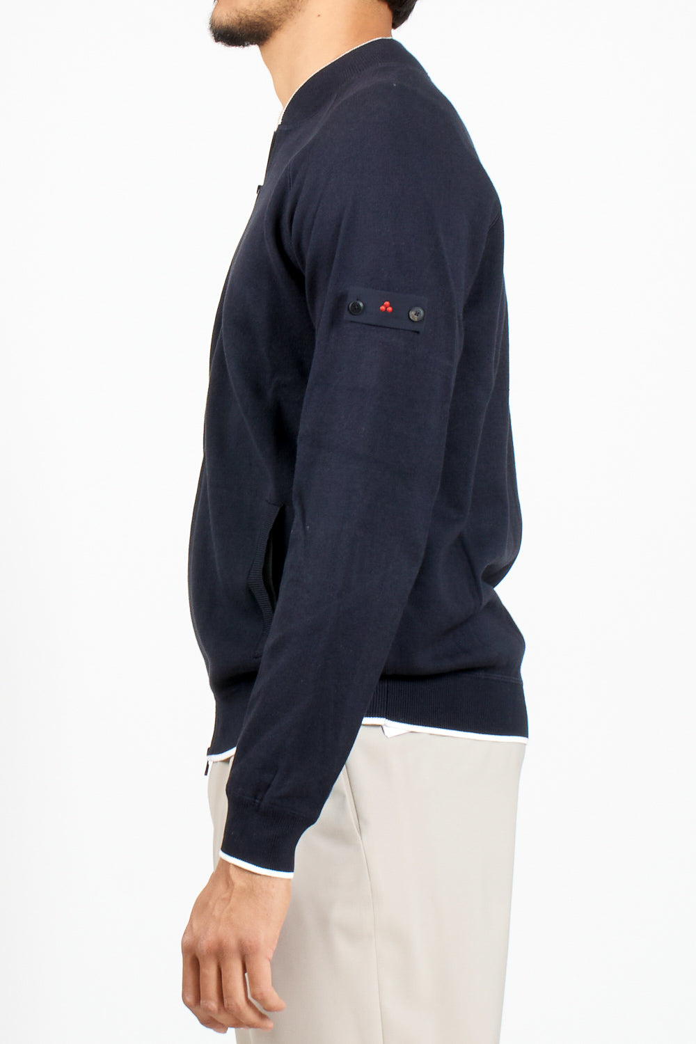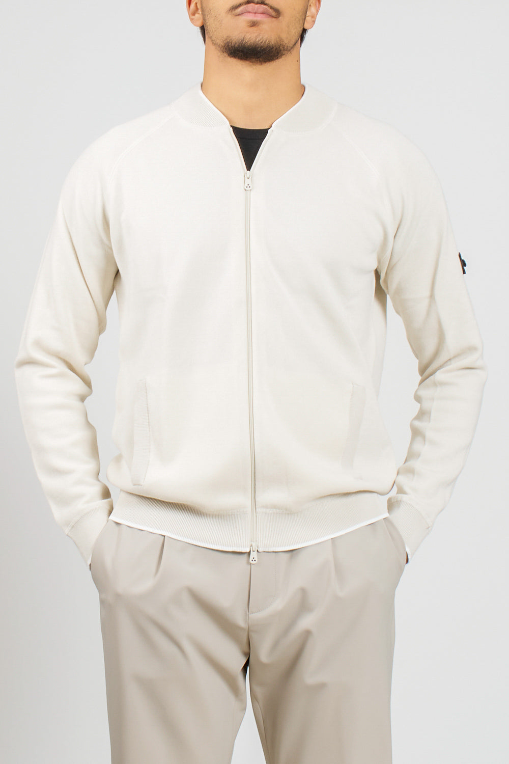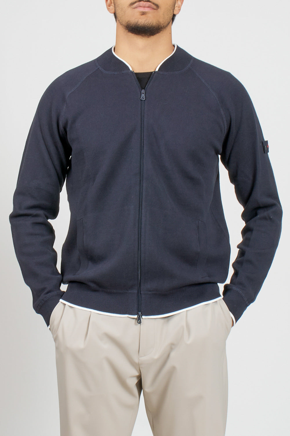 Knitted Bomber Jacket with Zip and Logo Patch – Peuterey