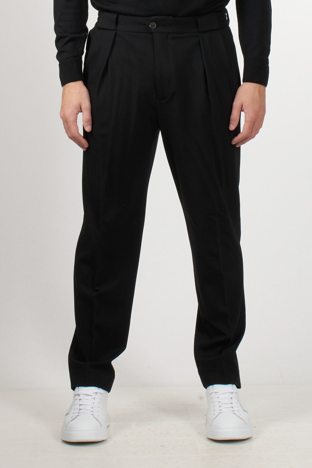 Manuel Ritz trousers with a soft and contemporary fit, a partially elastic waist and front pleats that add volume and comfort. They offer an elegant and casual fit, perfect for refined casual looks or modern tailored combinations, side pockets, and welt pockets on the back.