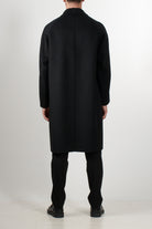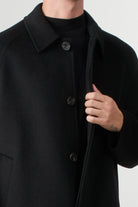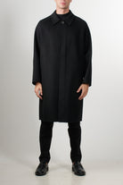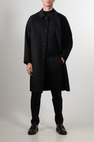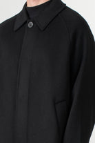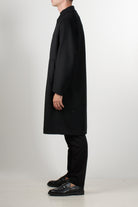 Long, straight-fit cloth coat with a simple construction. It features a front button closure, a classic collar, and inset side pockets. The oversized fit and clean design give the piece a minimalist, contemporary elegance, perfect for the winter season.