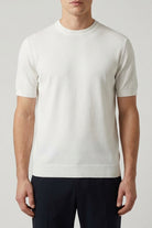 The short-sleeved t-shirt by Low Brand is the expression of a minimalist aesthetic combined with a strong commitment to sustainability. Made from a fine blend of recycled viscose and nylon, this garment stands out for its exceptionally fluid, cool, and silky feel. The technical component ensures excellent resistance and an impeccable drape, defining an essential and versatile piece, ideal for those seeking a contemporary, refined, and conscious wardrobe.