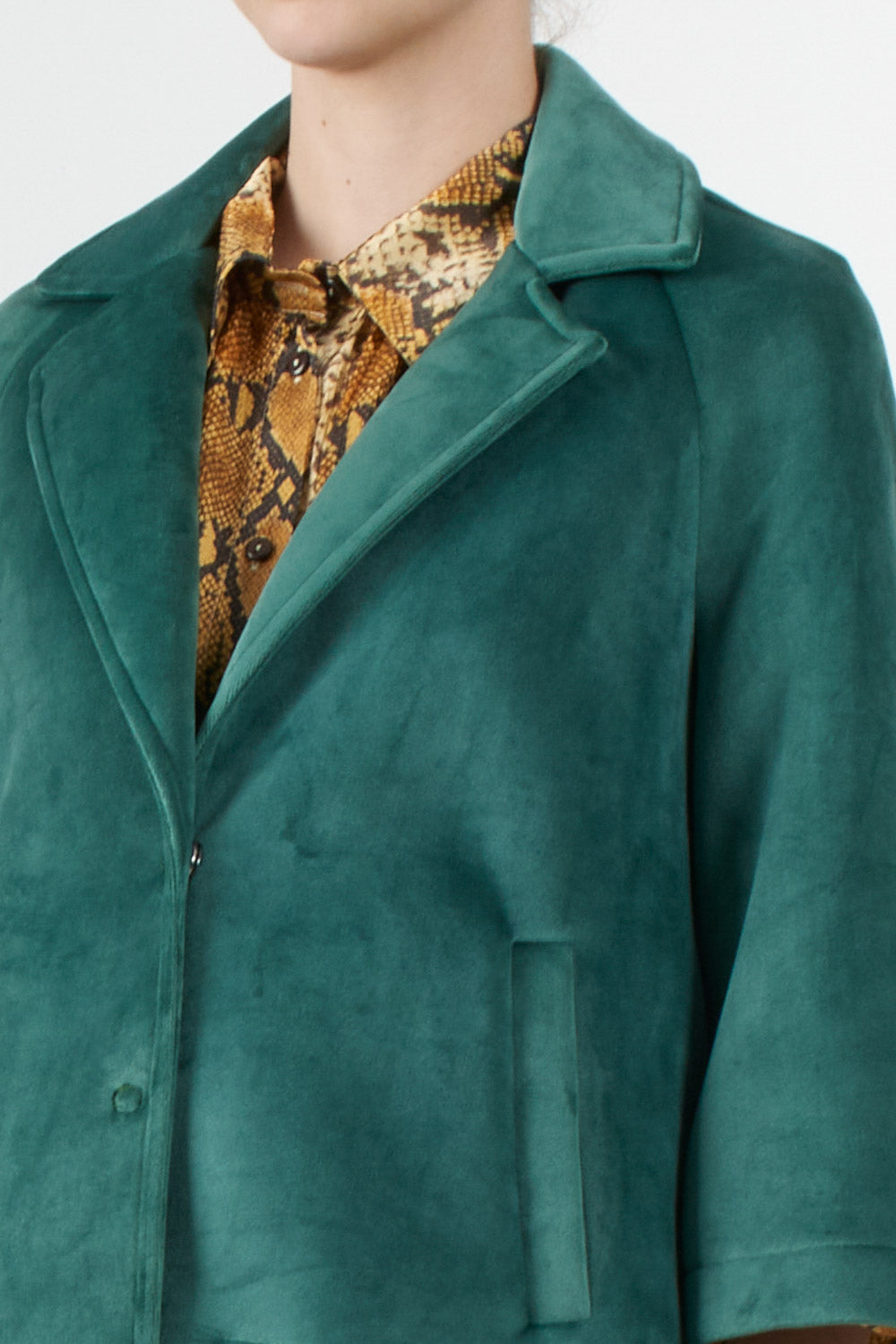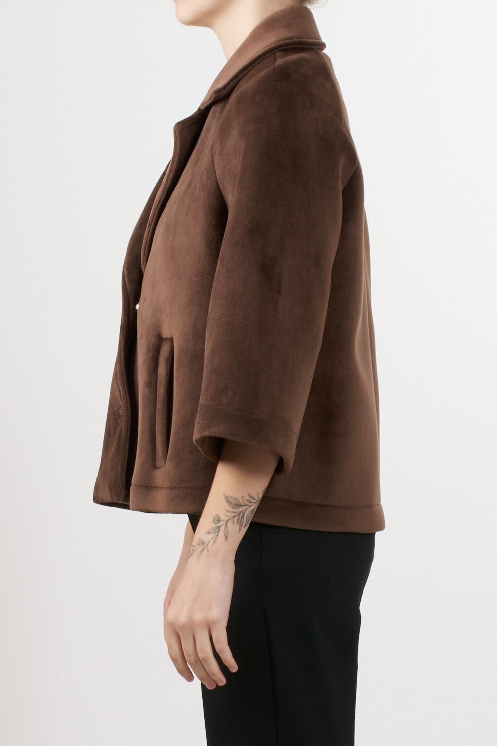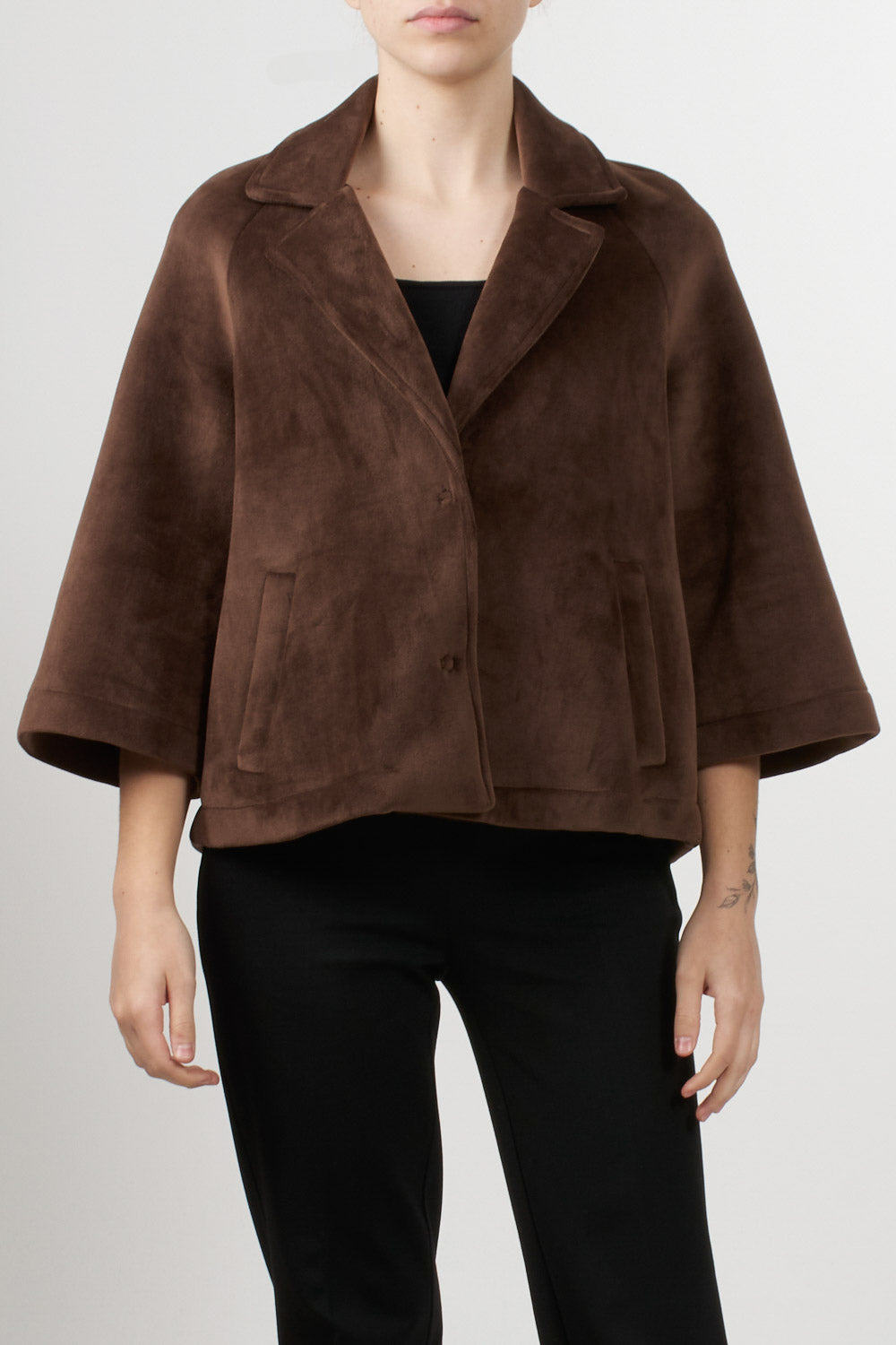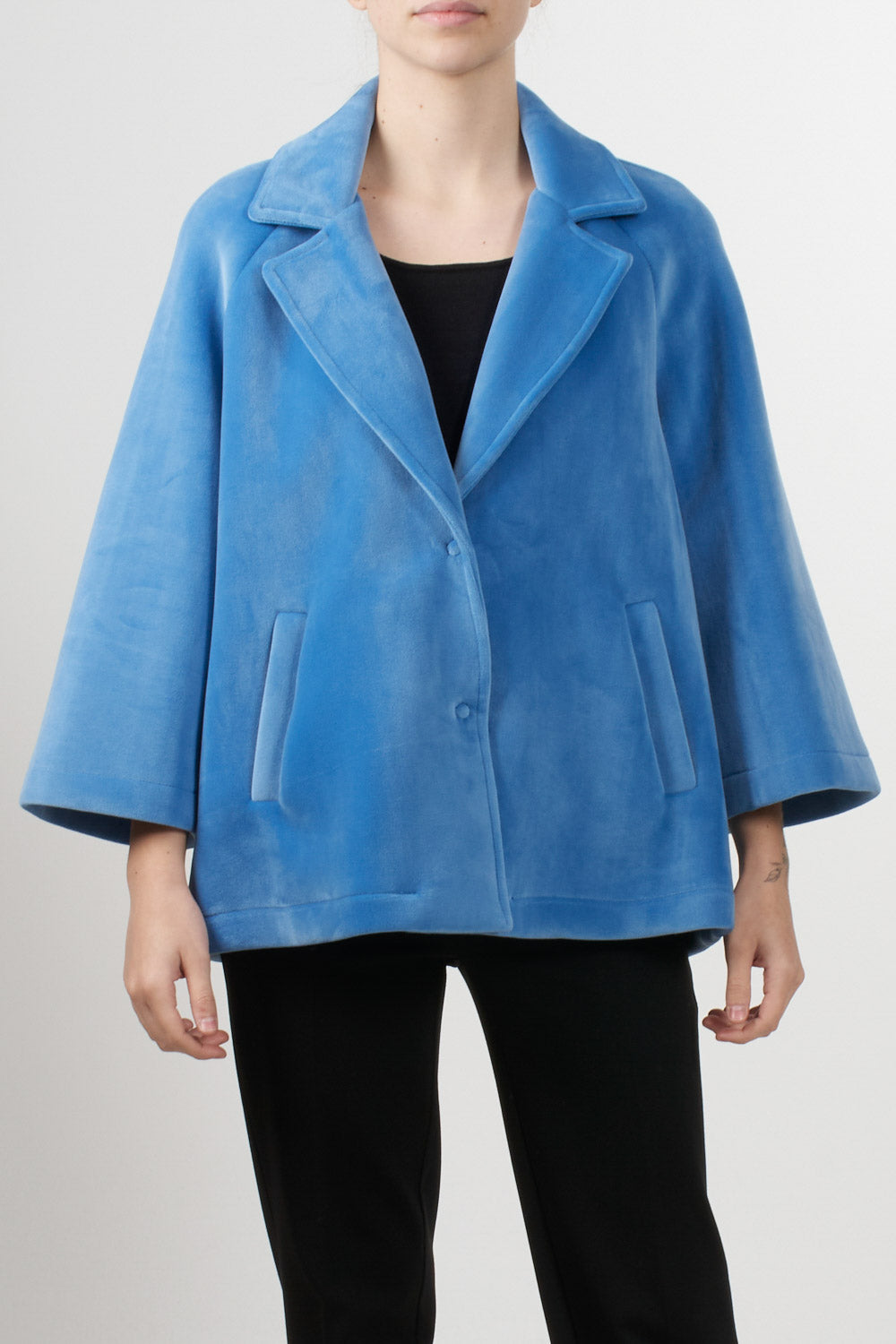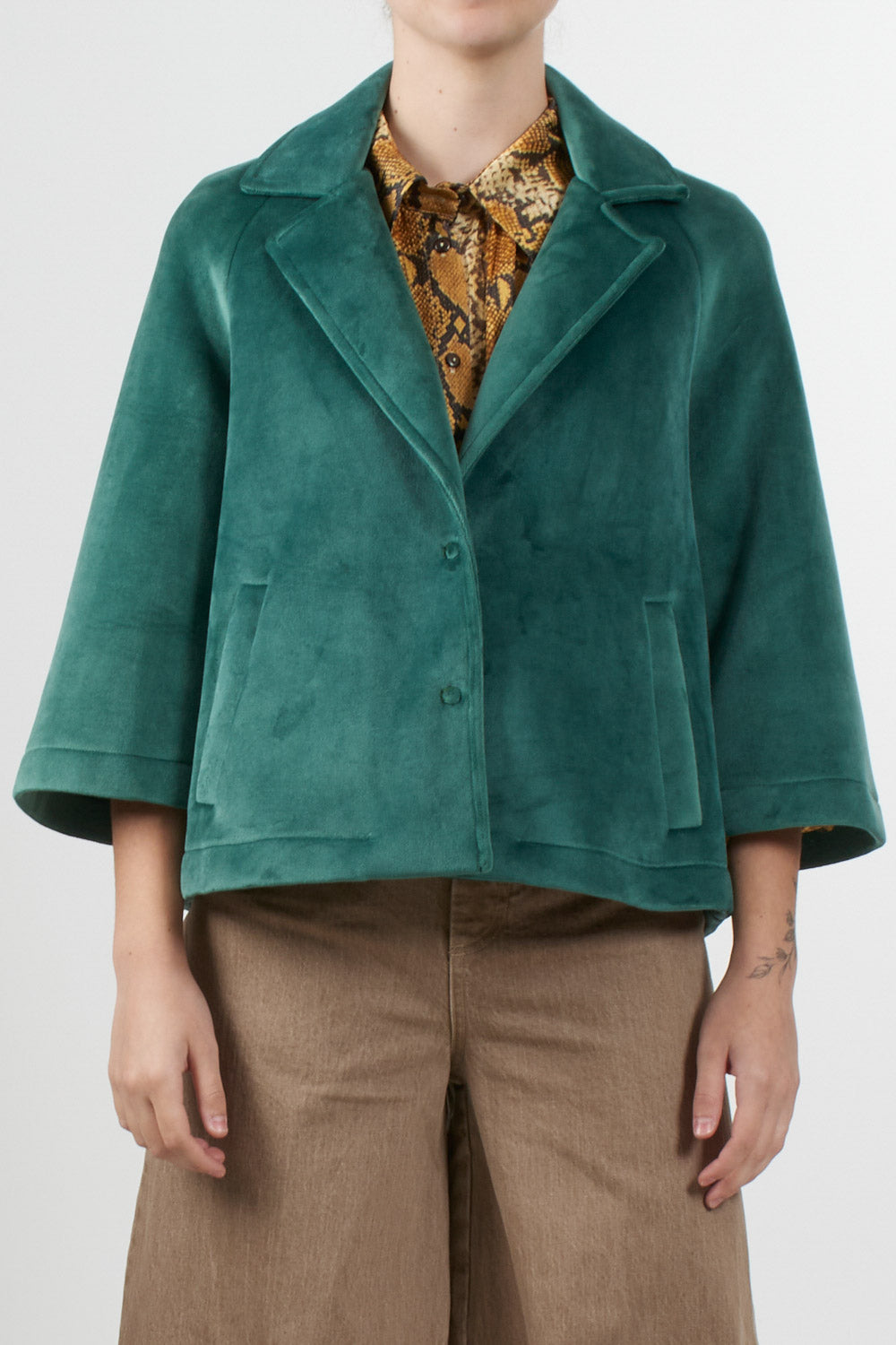 Tensione In's loose-fitting short jacket features 3/4 sleeves, a front button fastening, classic lapel collar and side pockets, completing the essential and sophisticated design, ideal for adding an elegant touch to even the most casual outfits.
