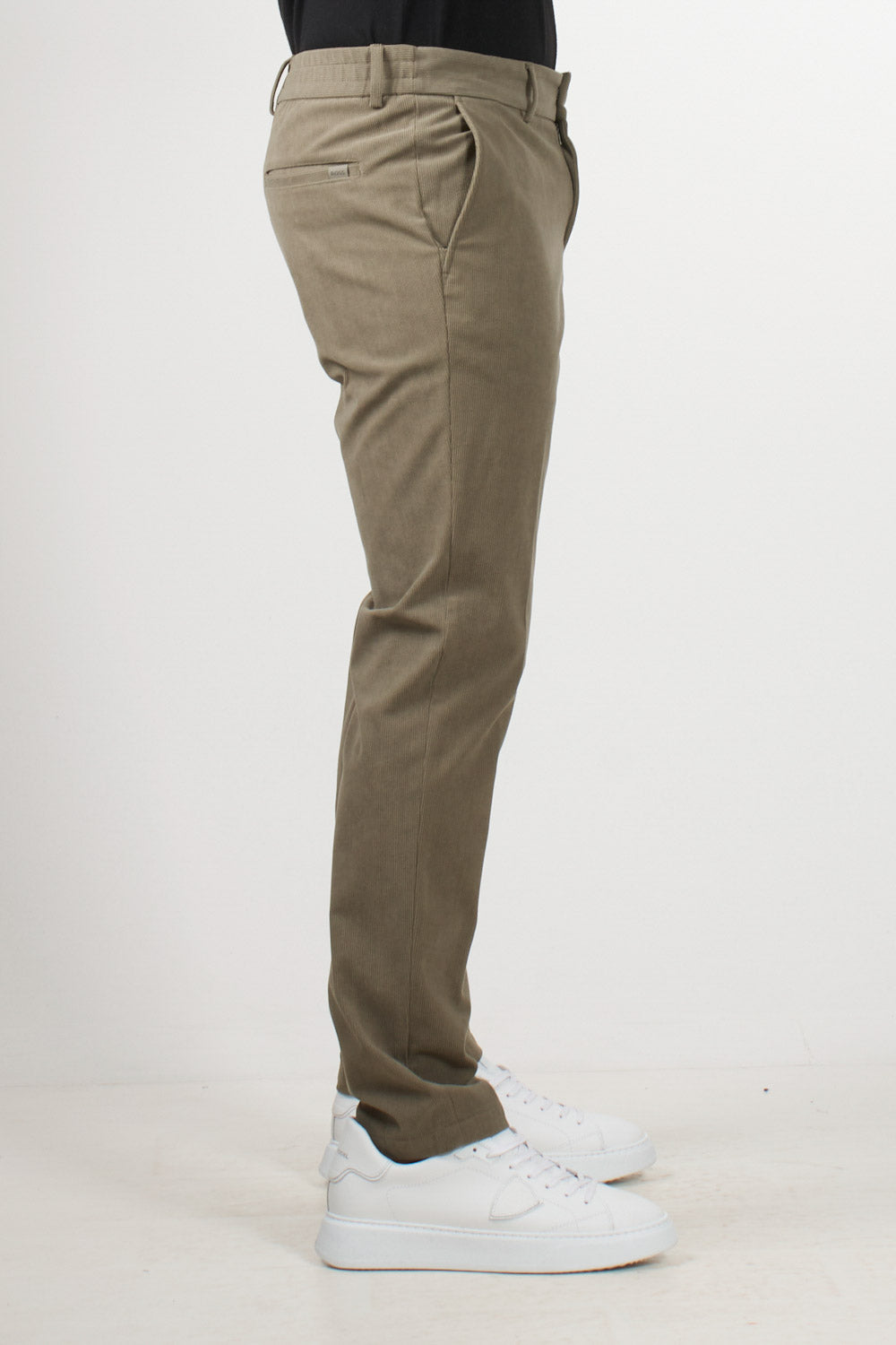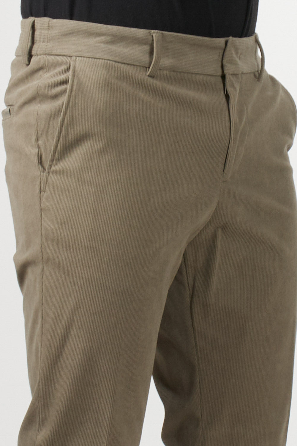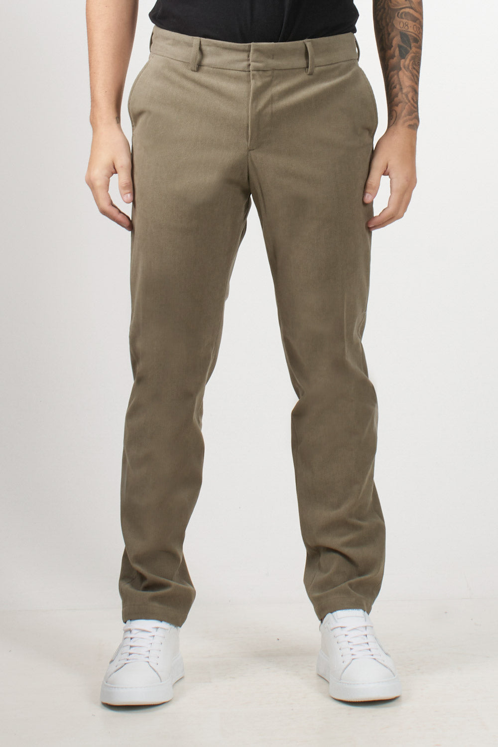 Men's slim-fit trousers, perfect for adding a touch of sophisticated and contemporary style to everyday looks. Crafted from stretch corduroy, they offer comfort and freedom of movement while maintaining a clean, elegant line. The style features a hook and zip closure and an elasticated waistband.