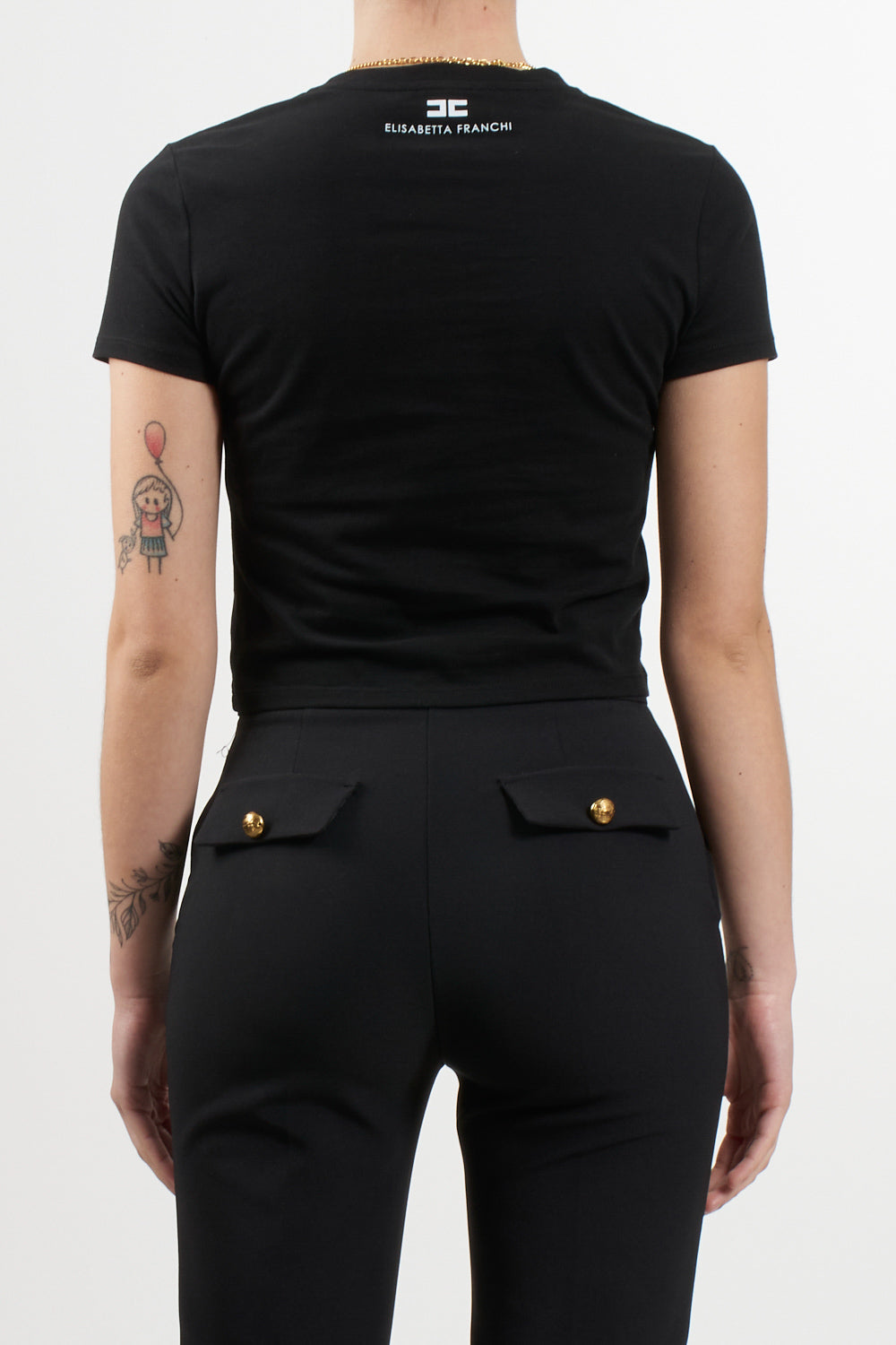 Elisabetta Franchi Women's Cropped T-shirt with Bow Necklace