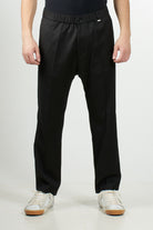 I'M BRIAN trousers with a modern design and a straight, comfortable fit. Featuring an elastic waistband with a button, they offer a clean, versatile look, ideal for a contemporary style.