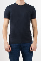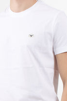 T-shirt girocollo di Emporio Armani con micro patch logo sul petto, maniche corte, vestibilità regolare