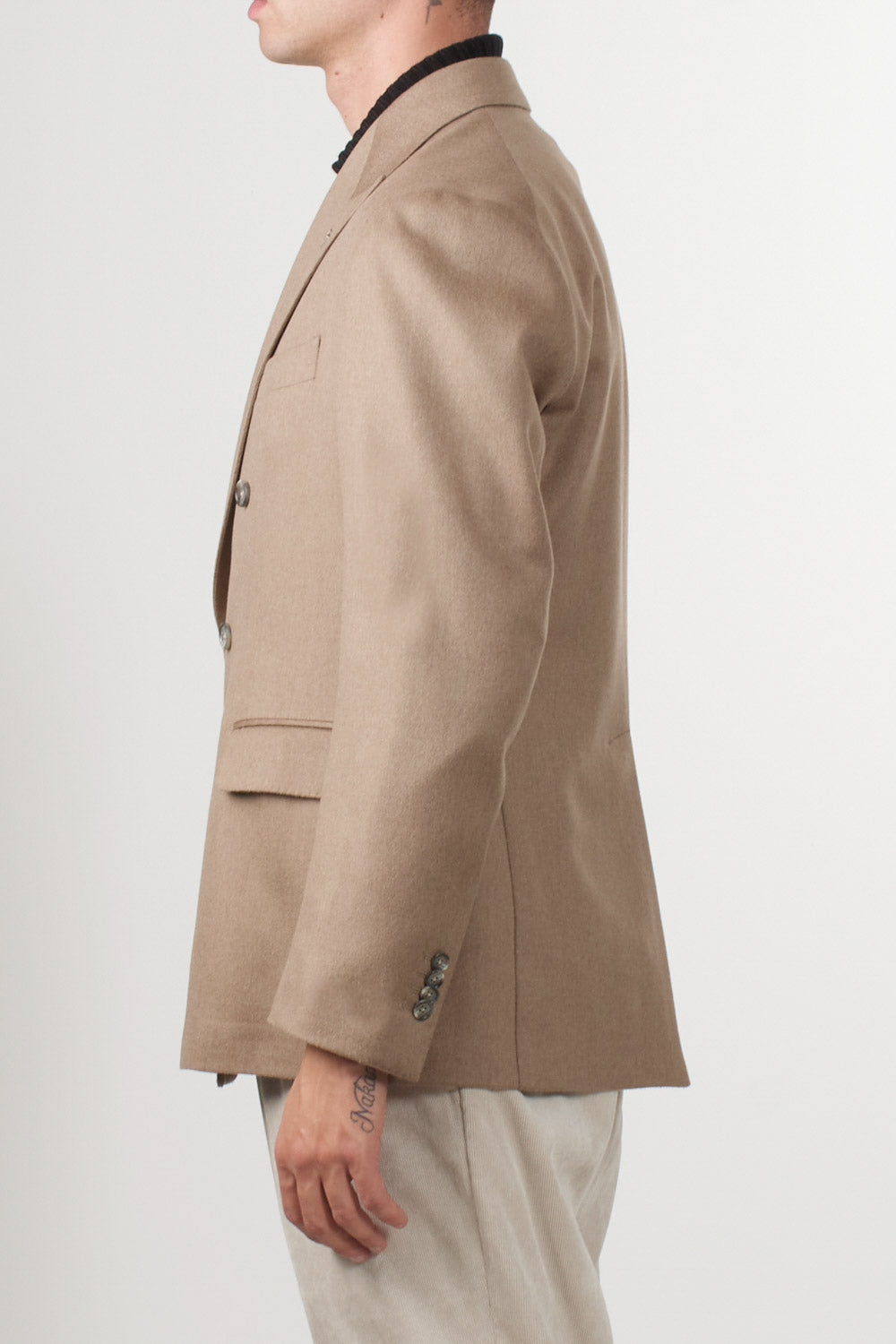 Double-breasted camel jacket