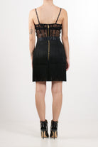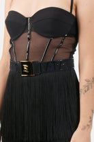 Elisabetta Franchi Fringed Dress with Tulle Corset