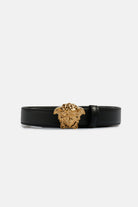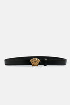 A bold and elegant accessory, this Versace belt is crafted from smooth leather and features the iconic Medusa metal buckle. Ideal to complete both formal and smart-casual outfits with a distinctive touch.