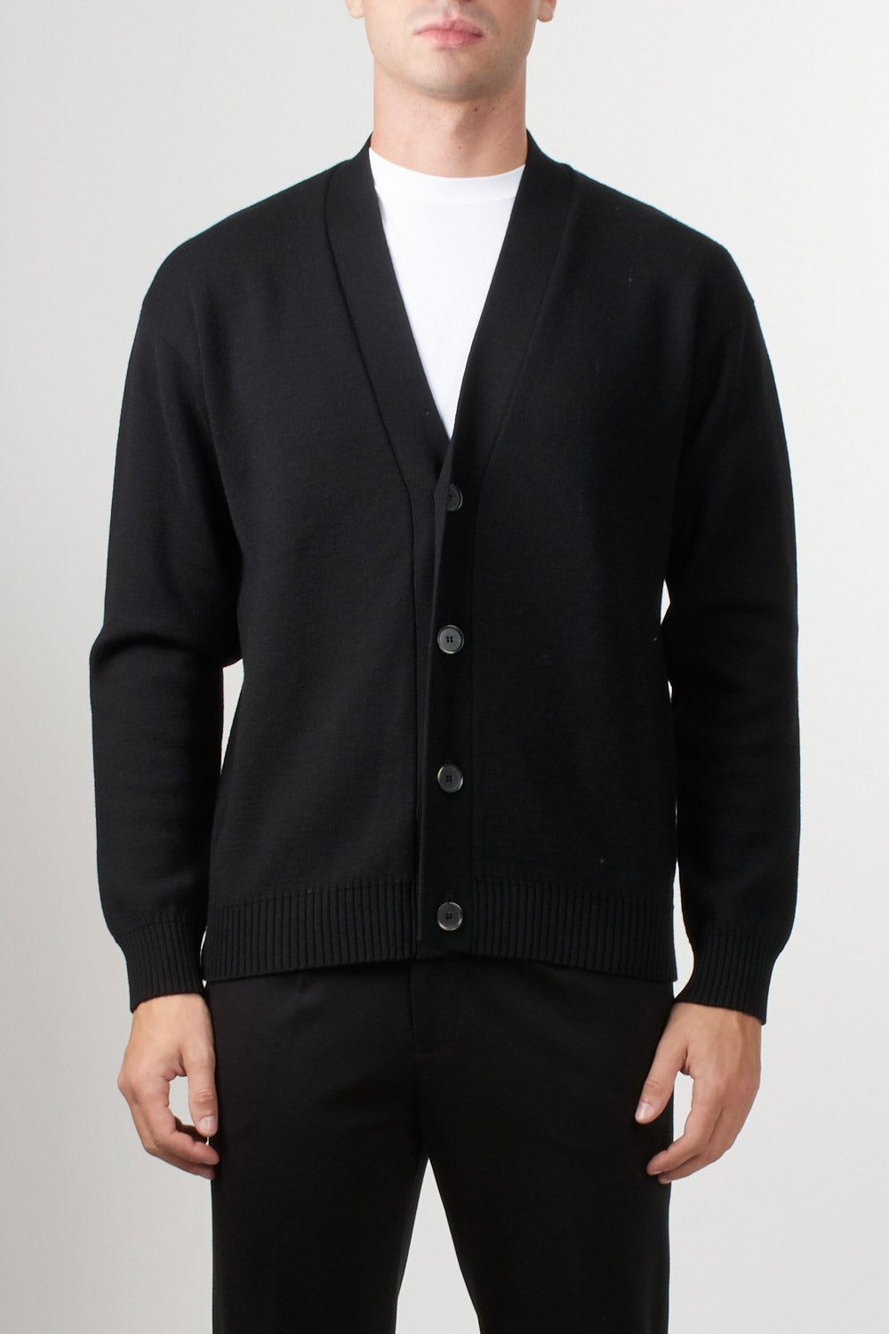 Daniele Alessandrini cardigan, crafted from pure merino wool. This style features a front button closure, a V-neck, and ribbed cuffs and hem. A simple yet refined piece, ideal for completing casual or more formal looks with a touch of understated elegance.
