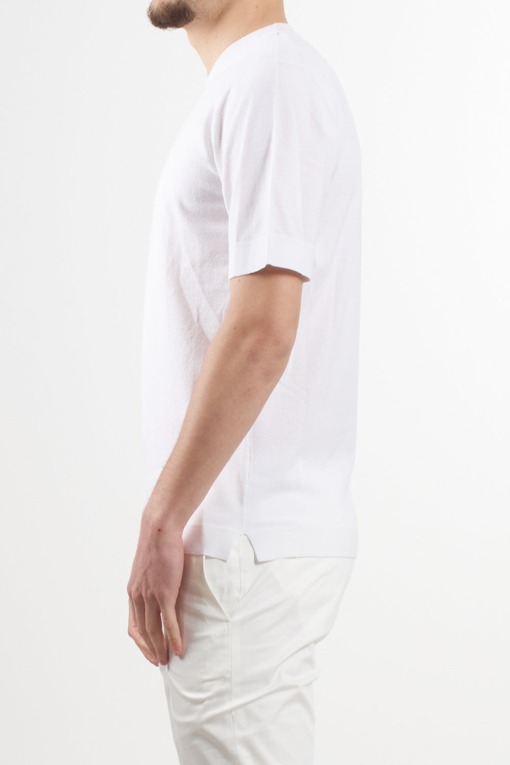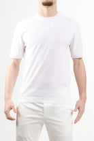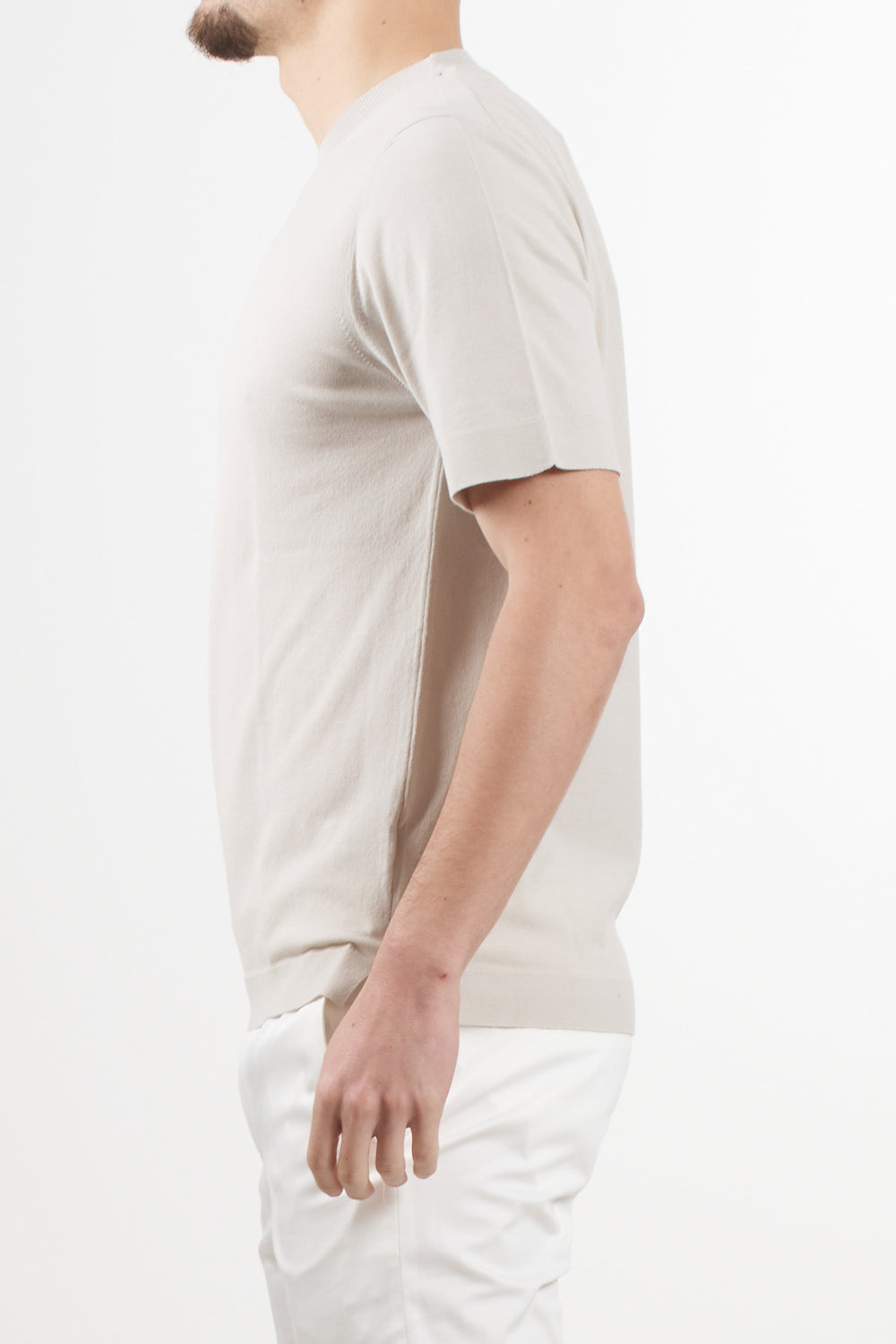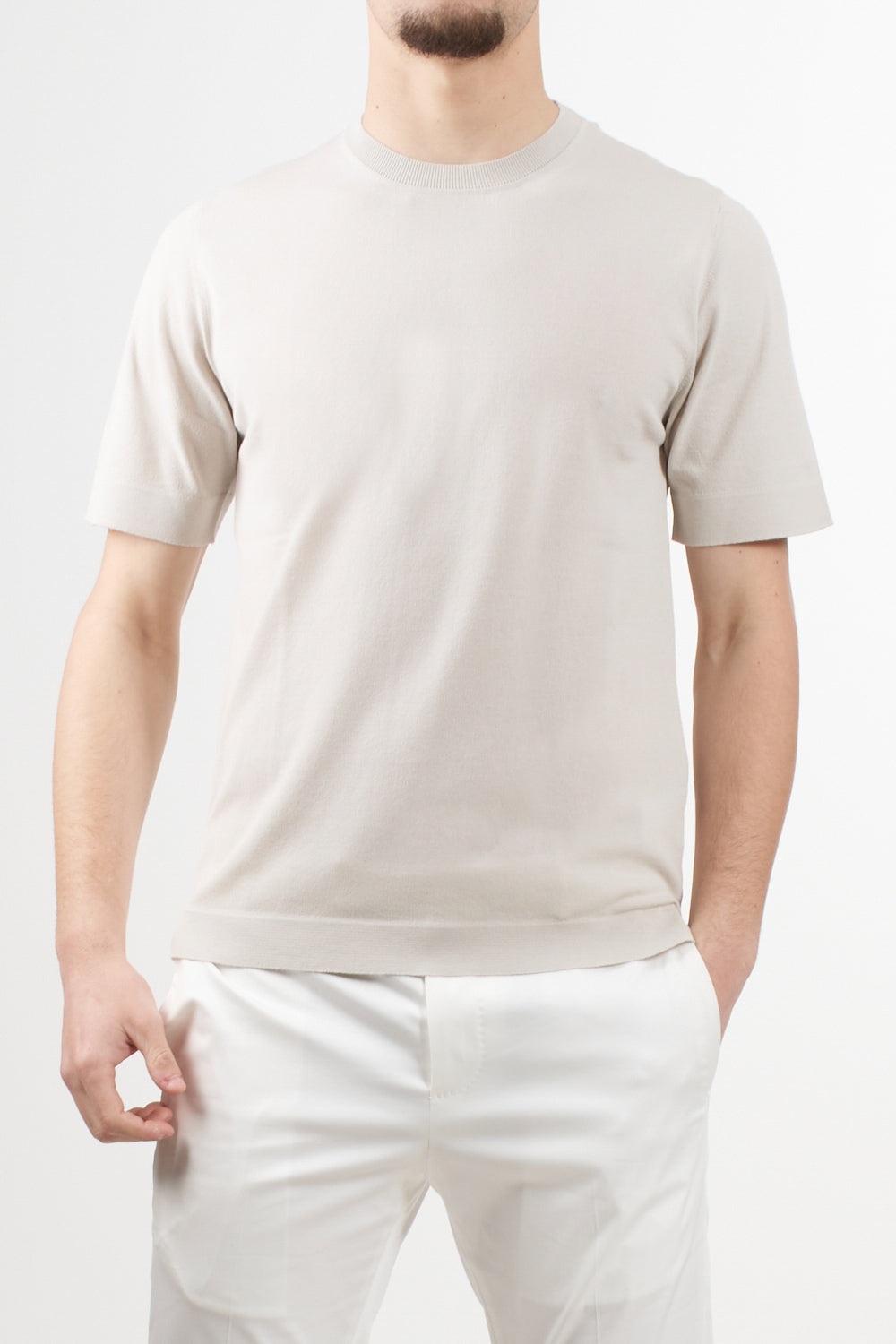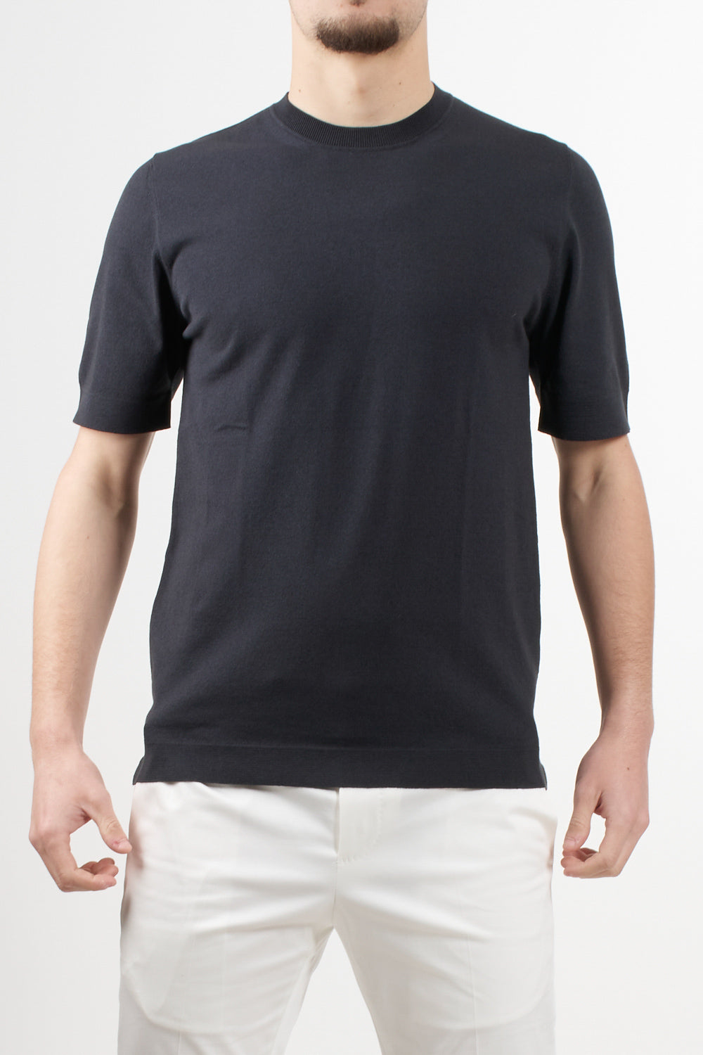 An essential piece with a timeless style: this Alpha Studio sweater is made of high-quality cotton, perfect for those seeking comfort and sophistication in everyday life. The clean design with crew neck and short sleeves makes it ideal both under summer jackets and worn alone for a minimal but refined look.