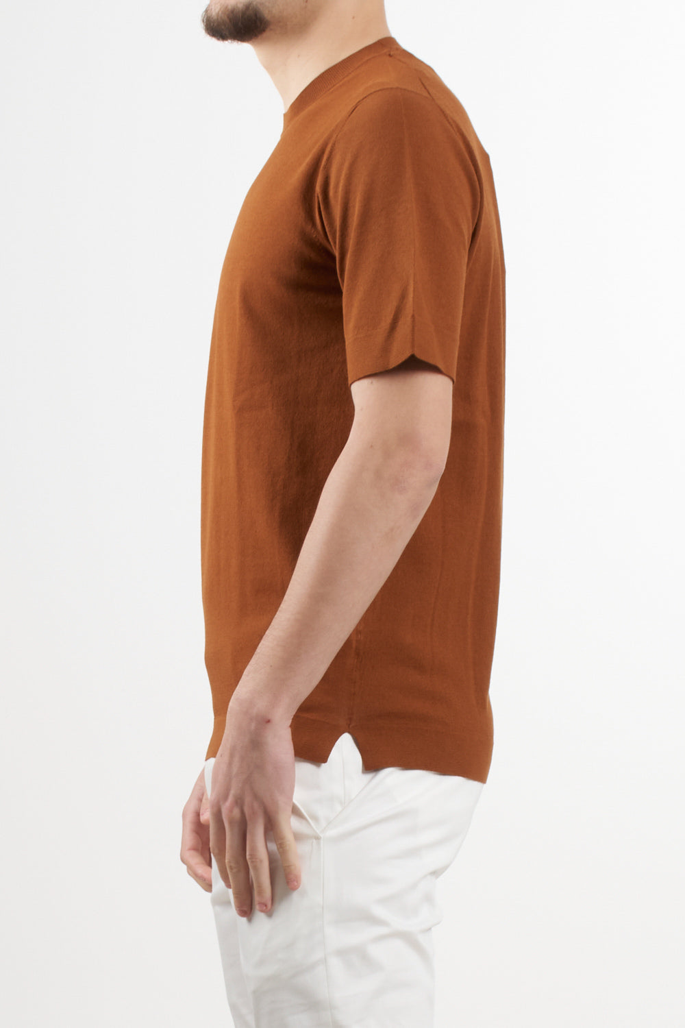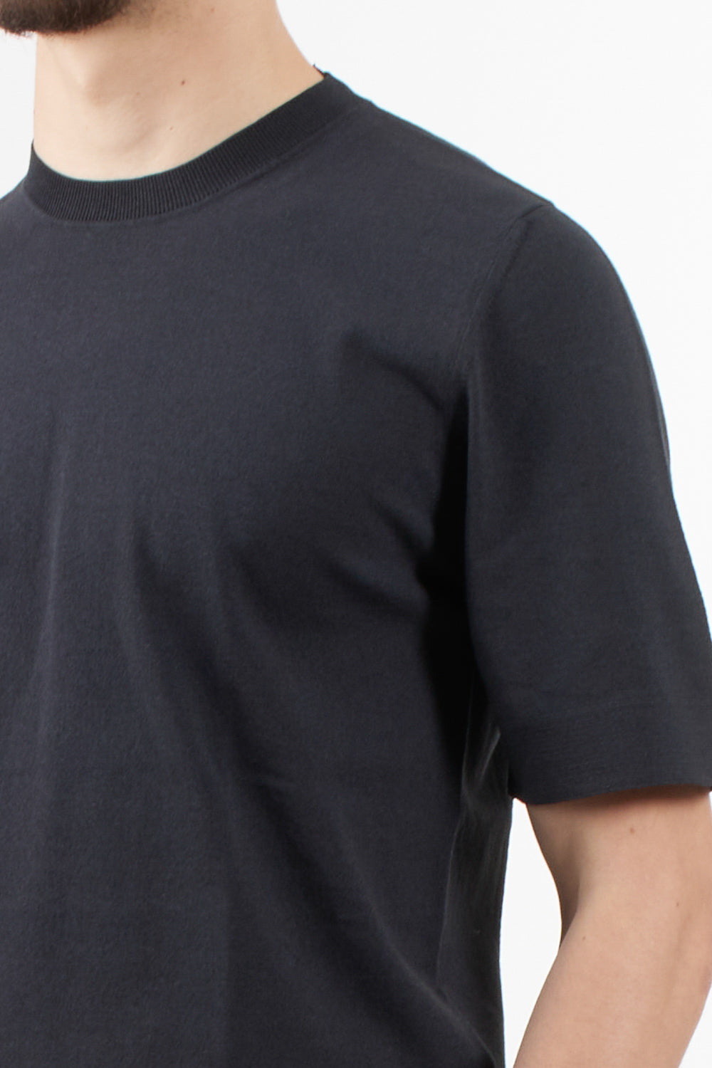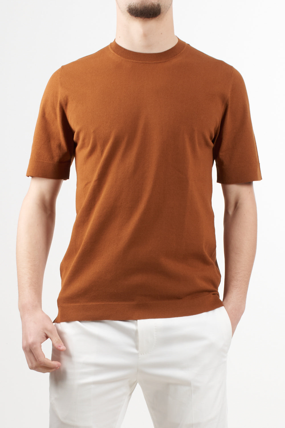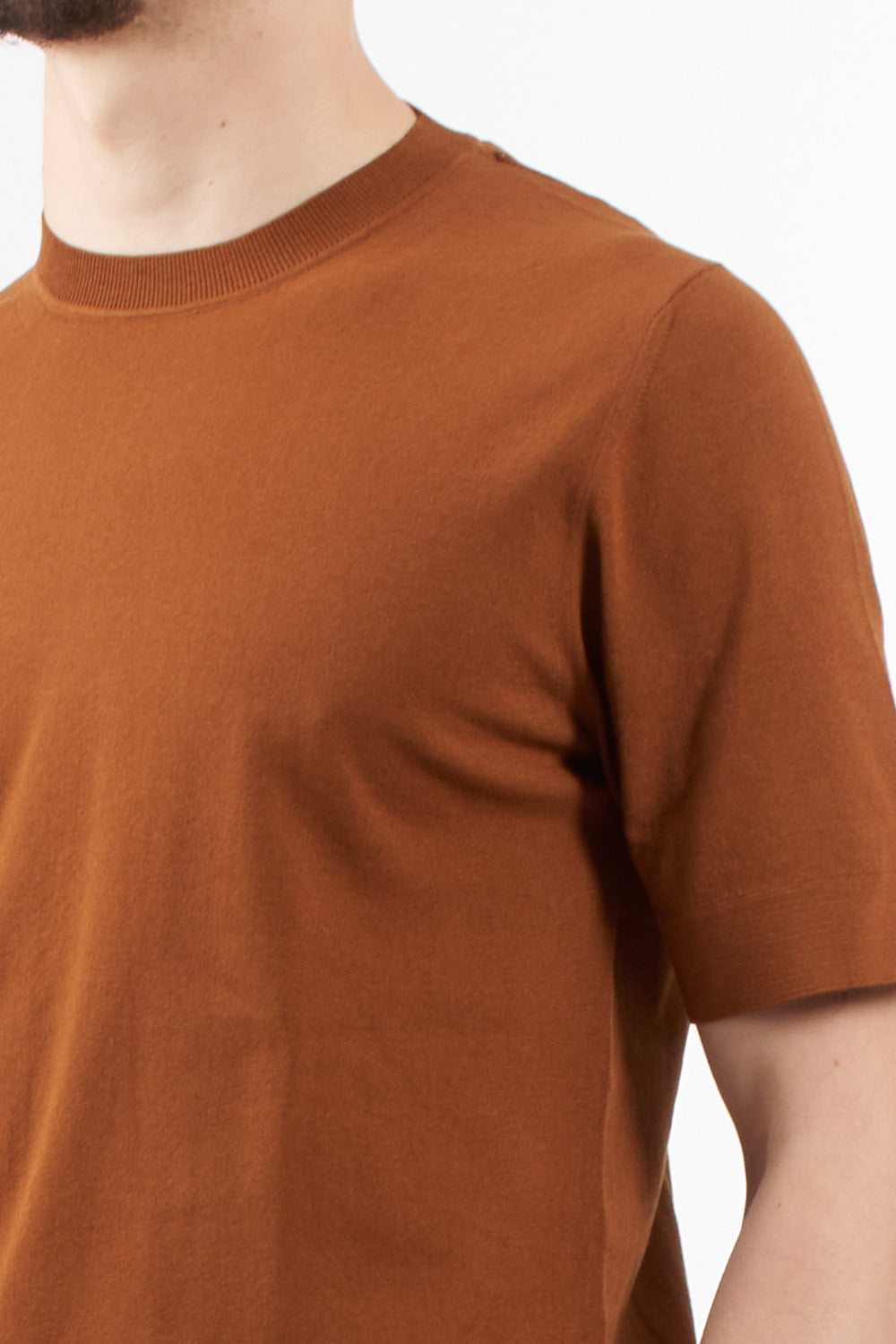 An essential piece with a timeless style: this Alpha Studio sweater is made of high-quality cotton, perfect for those seeking comfort and sophistication in everyday life. The clean design with crew neck and short sleeves makes it ideal both under summer jackets and worn alone for a minimal but refined look.