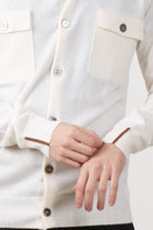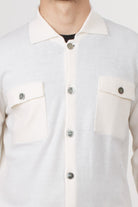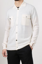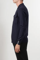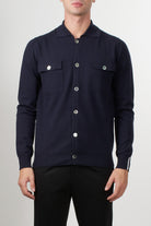 Pure Geelong wool shirt by Alpha Studio with a clean and refined design, front button fastening , two patch pockets on the chest and ribbed cuffs and hem, essential cut and the quality of the yarn make this garment a versatile element of the men's wardrobe, ideal to wear both as a shirt and as a light overshirt.