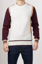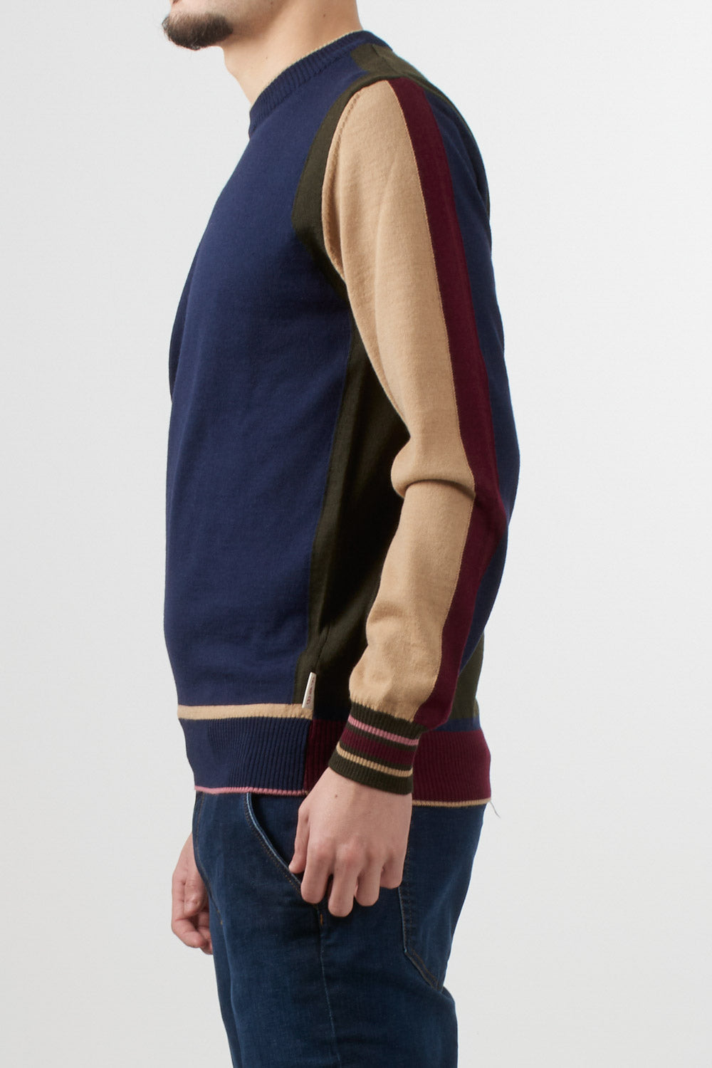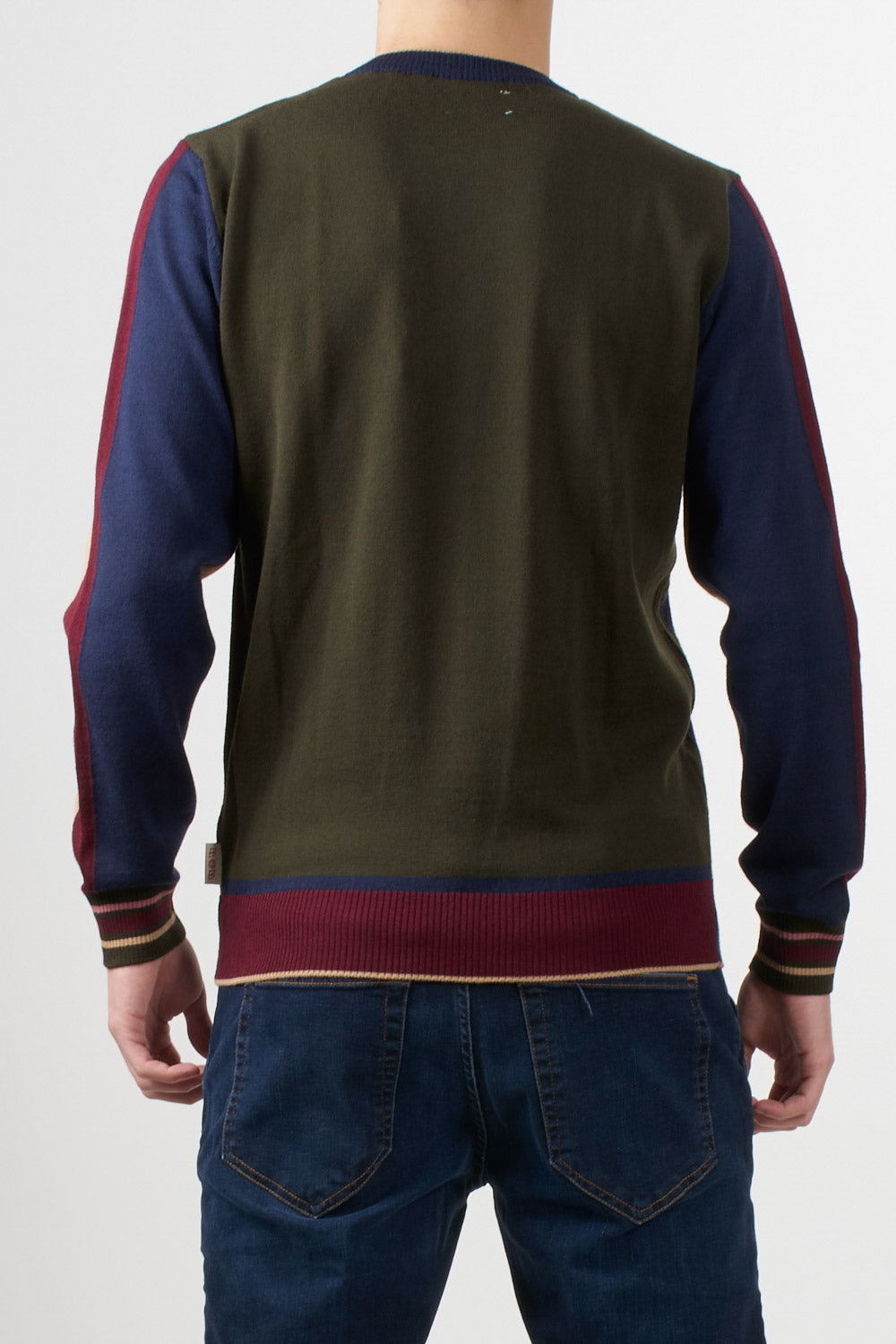 Long-sleeved sweater from Bob Company, featuring a multicolor design with contrasting details on the sleeves and hem. The ribbed finishes on the neck, cuffs and hem complete the garment with a sporty and contemporary touch.