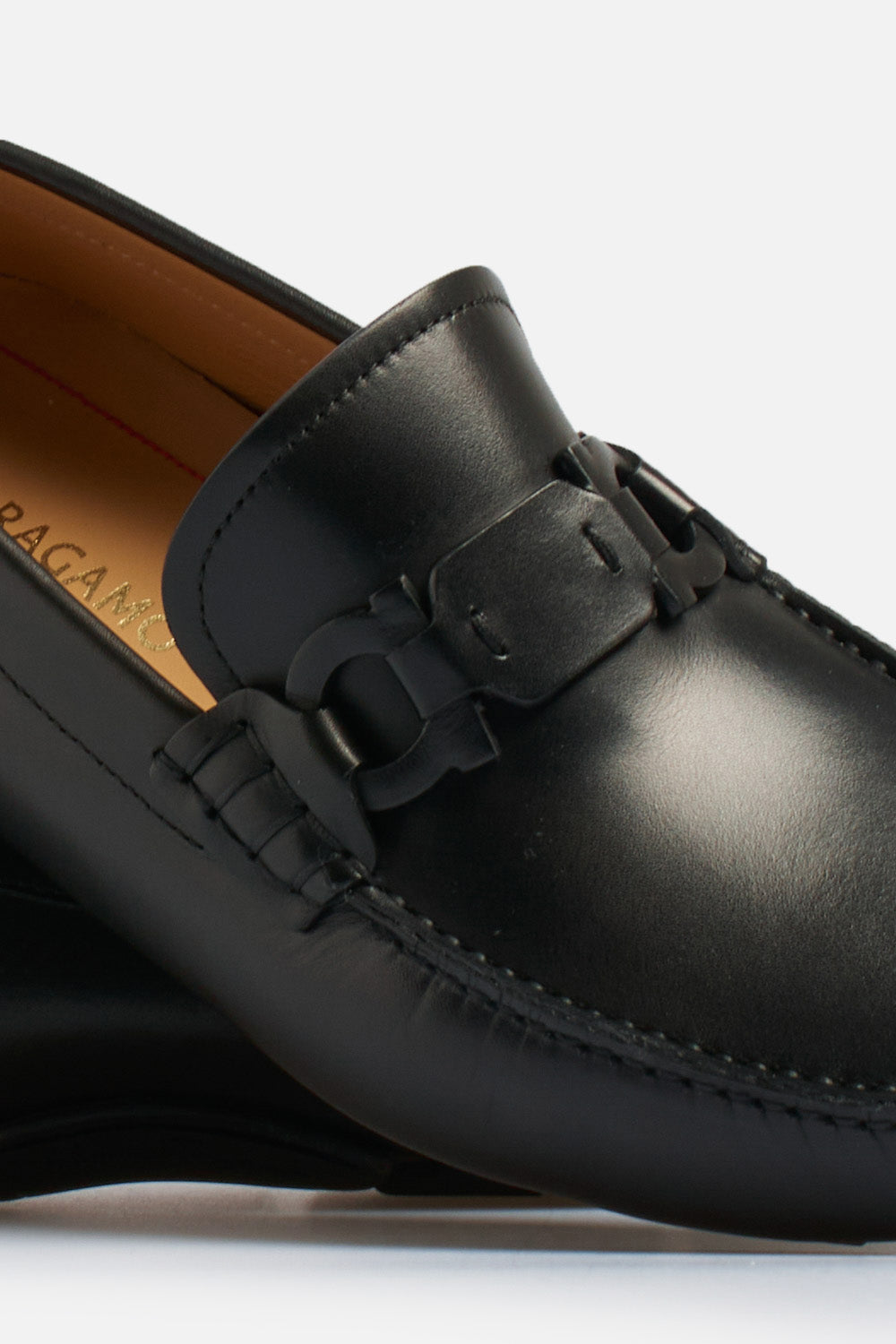 These Salvatore Ferragamo loafers represent a perfect balance between elegance and comfort. Crafted from high-quality smooth leather, they stand out for the tone-on-tone front clamp, an iconic detail of the brand. The rubber sole ensures a stable and flexible walk, making them ideal for formal and business casual looks.