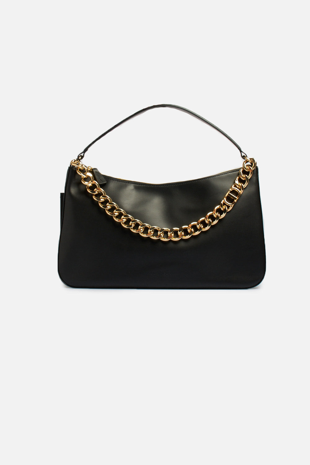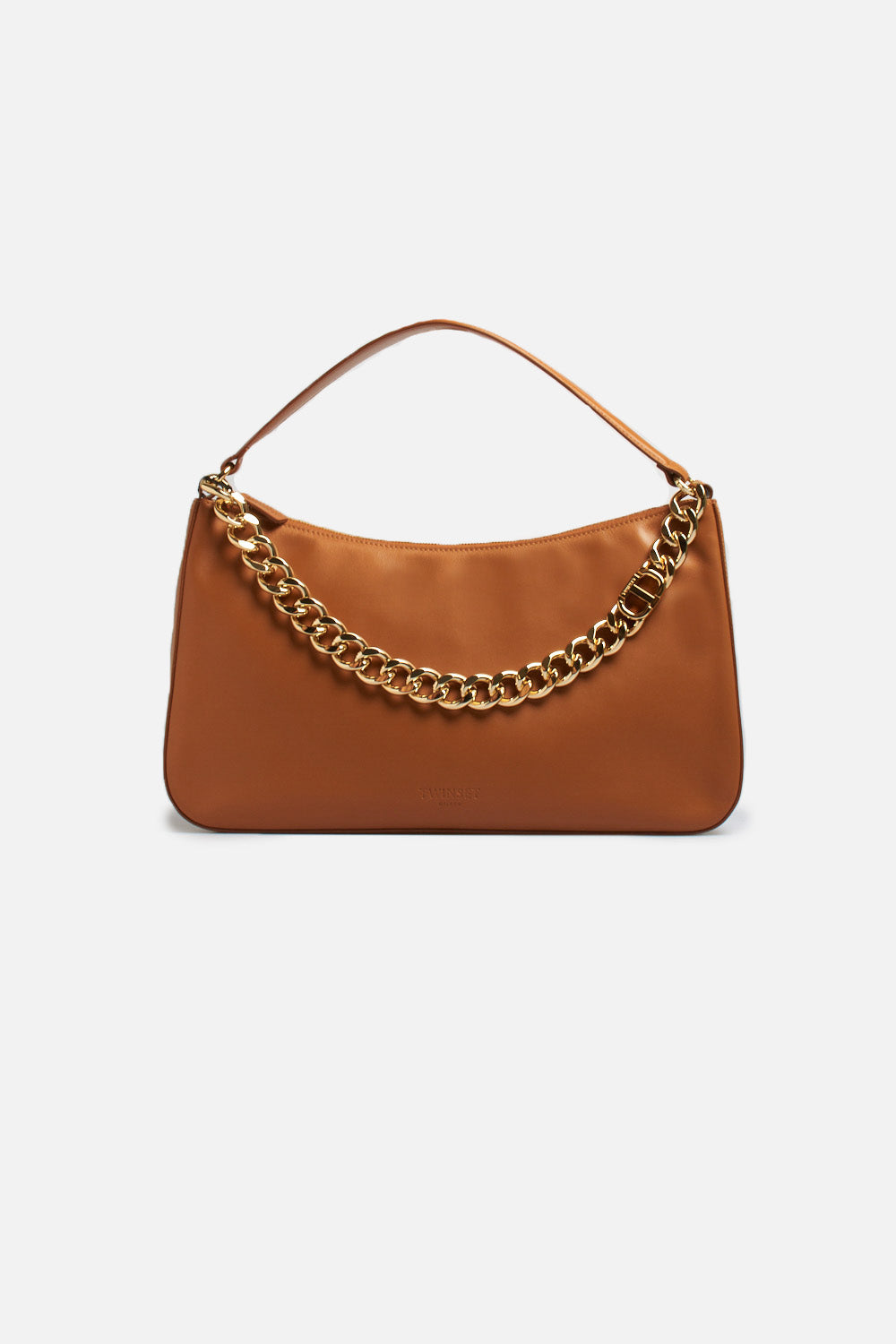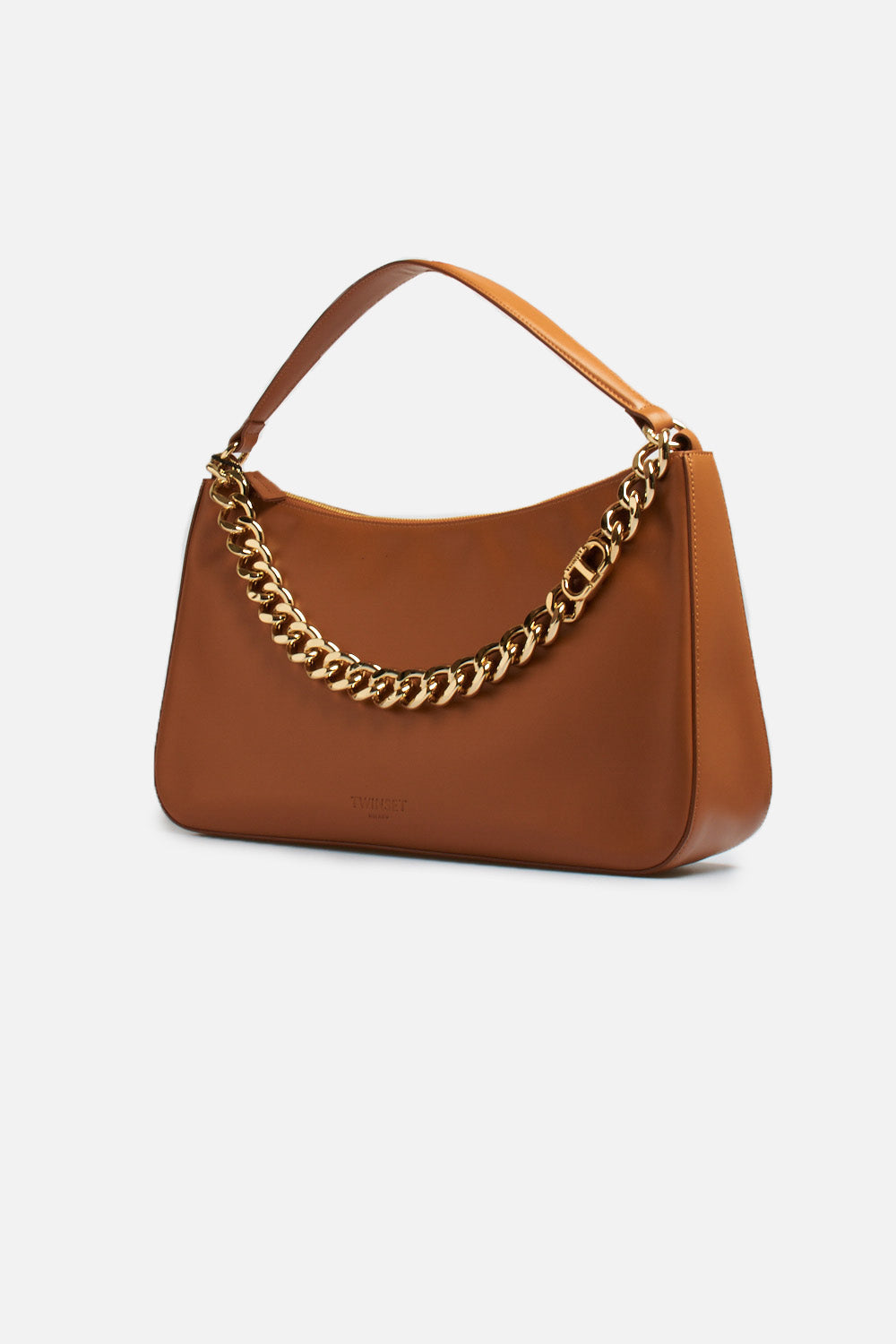 Twinset hobo bag made of smooth calfskin, embossed logo, internal lining in cotton blend twill, two handles, one in leather and the other in gold metal chain with Oval T