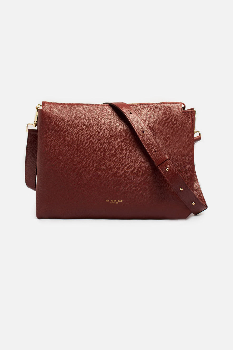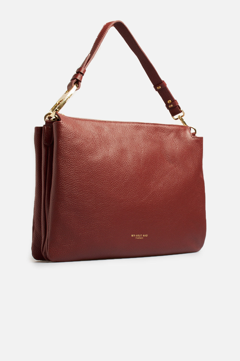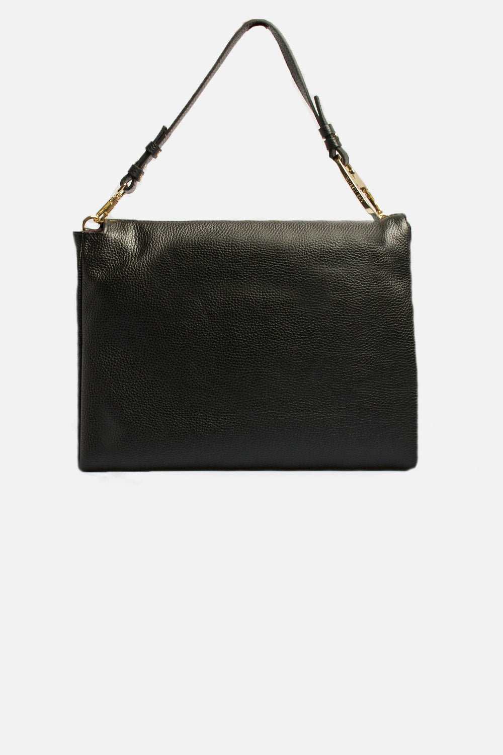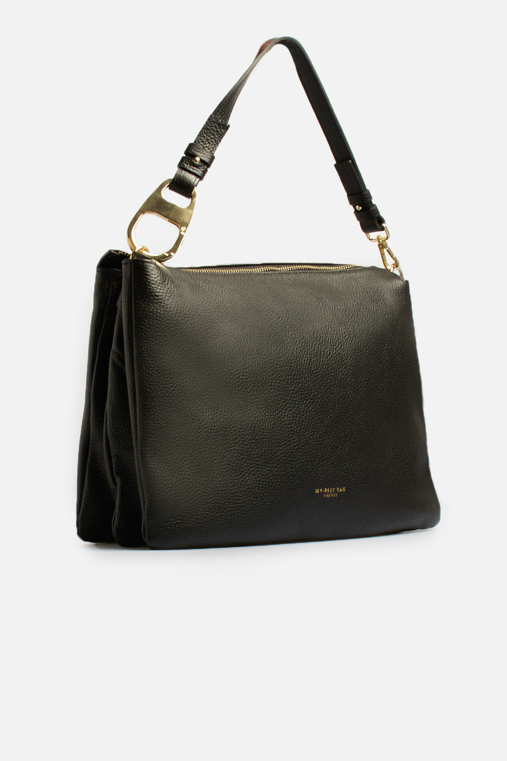 My Best Bag large shoulder bag made of hammered effect leather Made in Italy, characterised by a compact and versatile line, adjustable and removable shoulder strap that allows it to be worn both on the shoulder and crossbody, gold front logo and gold-finish metal details