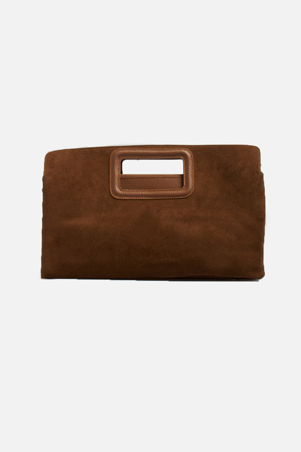 The Viktoria handbag is crafted from soft suede, embellished with a carved rectangular handle and tone-on-tone trim. The clean, refined design makes it ideal for adding a touch of sophistication to everyday or evening looks. Roomy interior with magnetic closure.