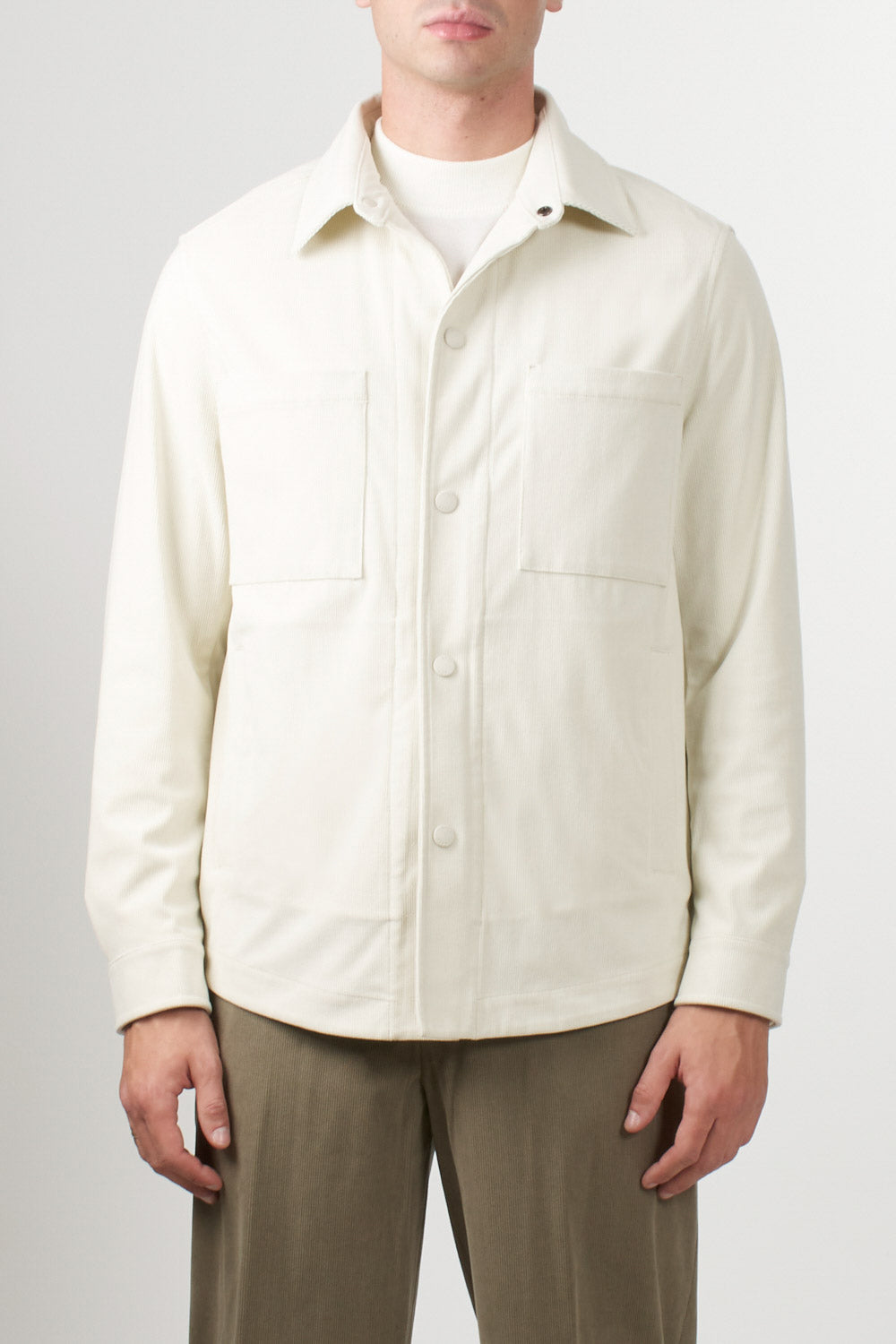 This Boss shirt jacket is crafted from stretch corduroy with wrinkle-resistant properties, ideal for creating modern and versatile looks. Featuring a relaxed fit and a snap-button front closure, it features two patch pockets on the chest and two side pockets.