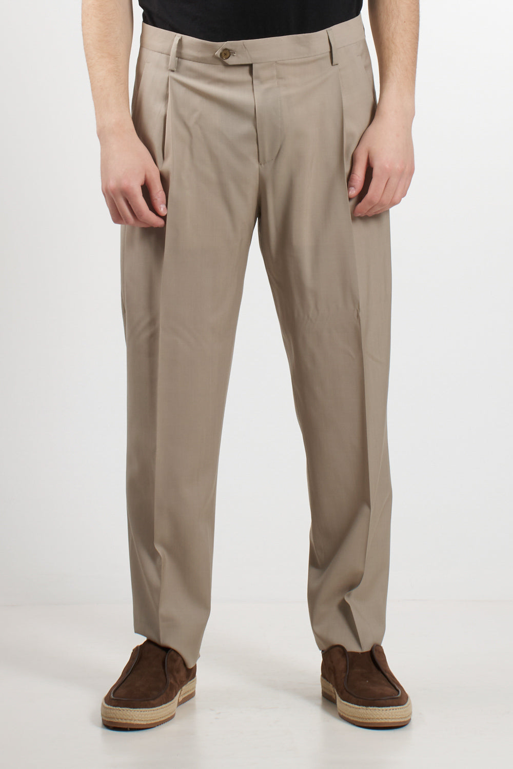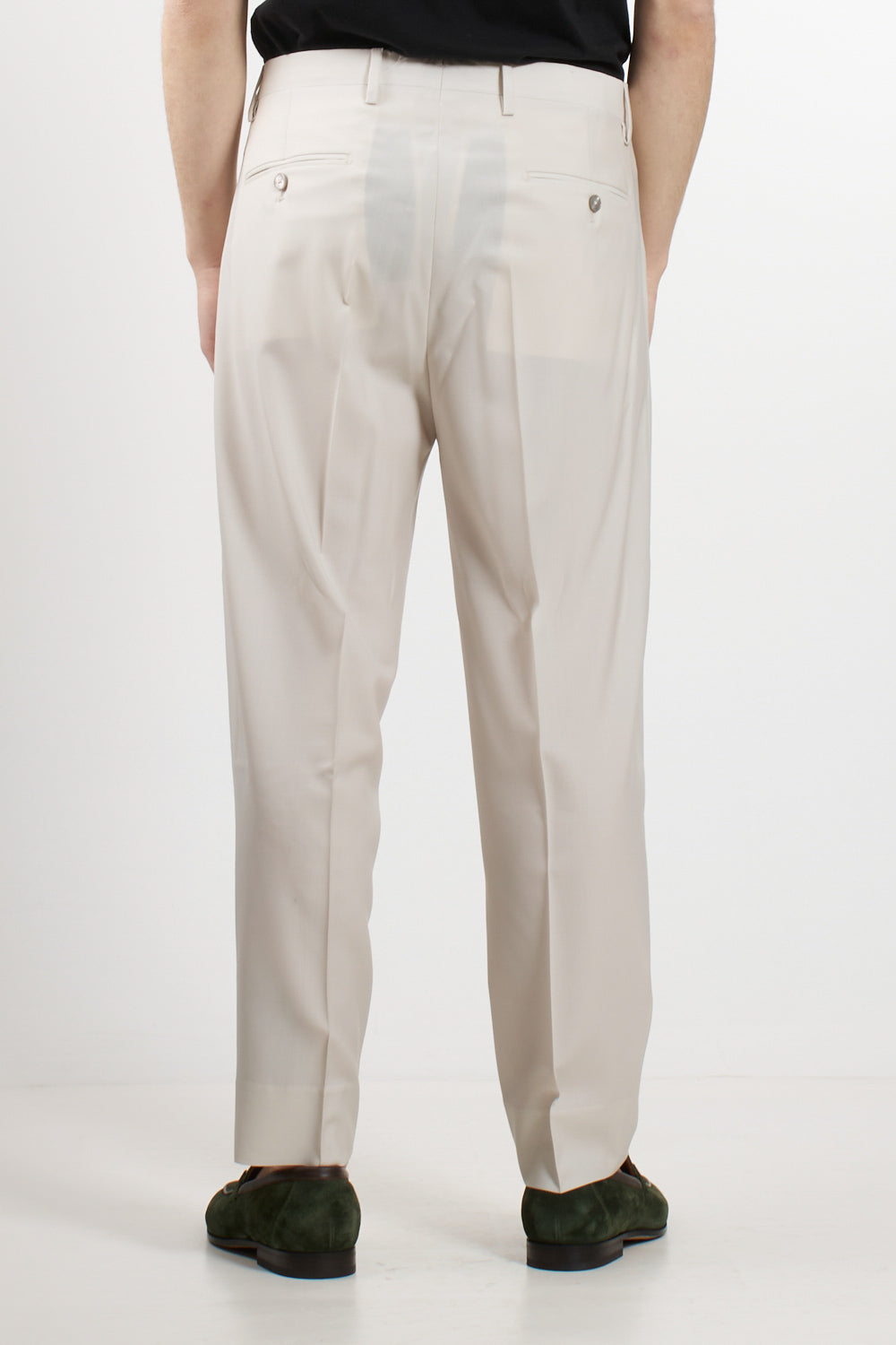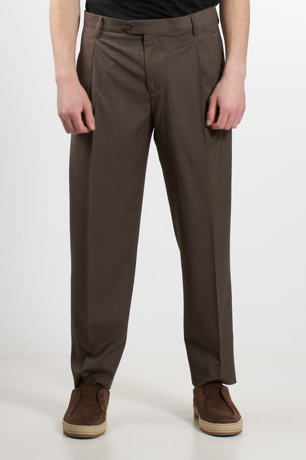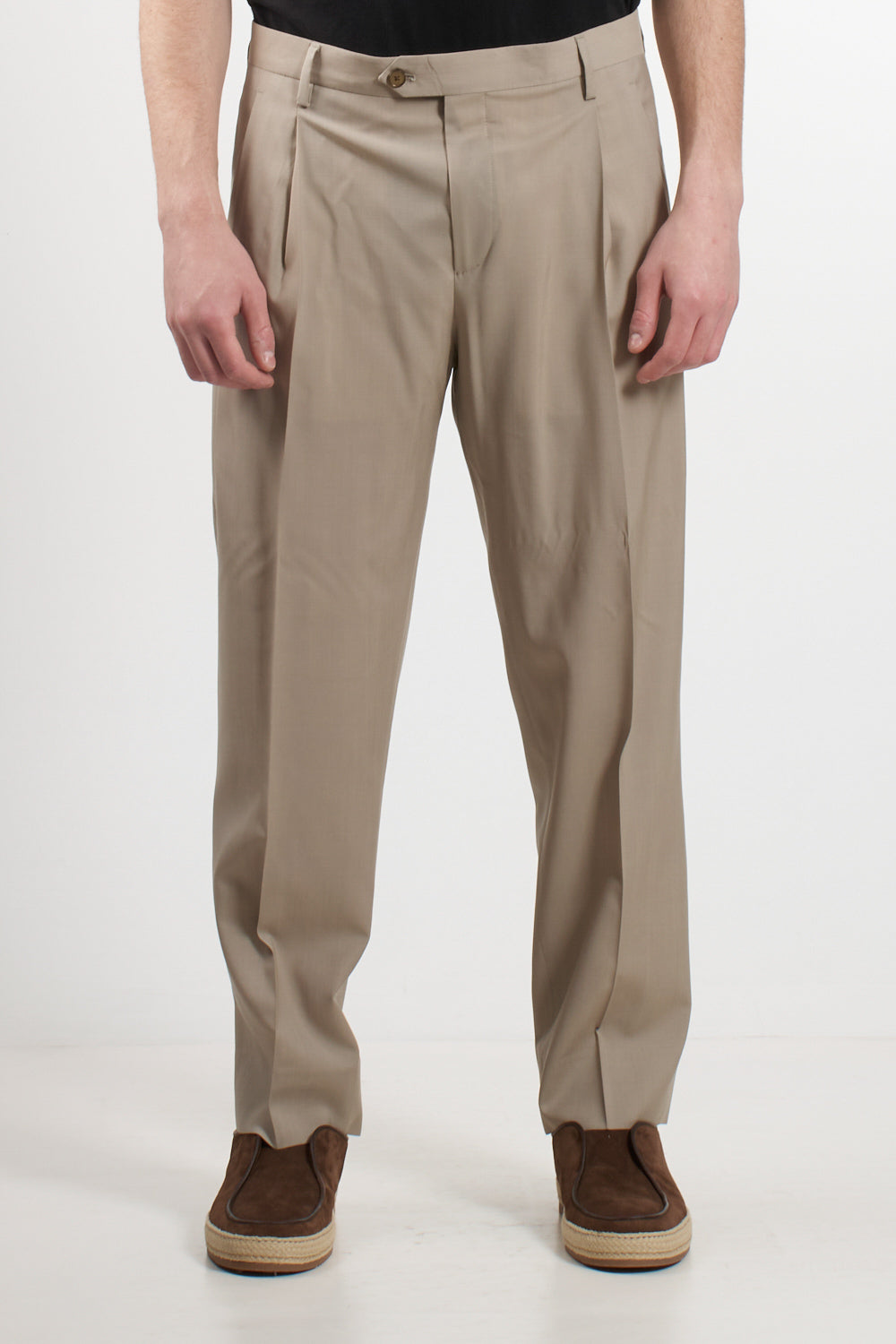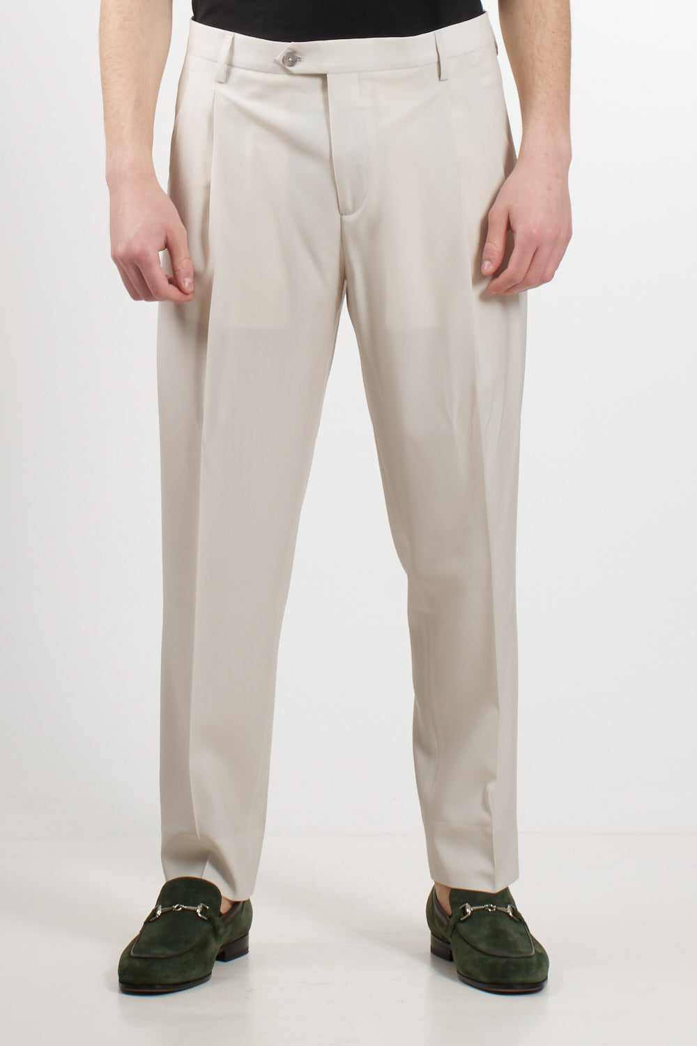 Arnos double pleat tailored trousers in pure wool. Featuring belt loops, two side pockets and a buttoned welt pocket on the back. The regular fit and lightweight fabric make them ideal for an elegant and comfortable look during the warm season.