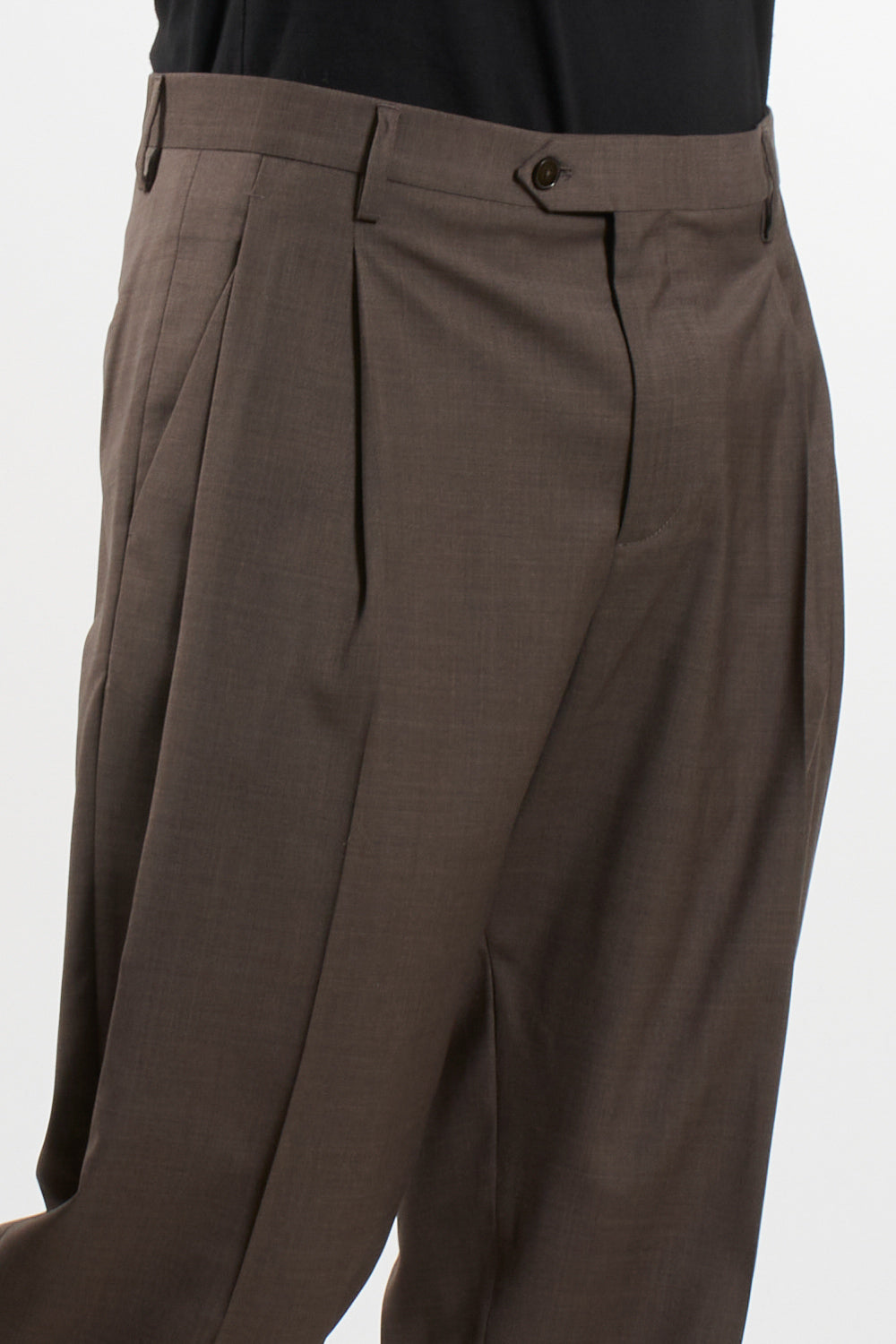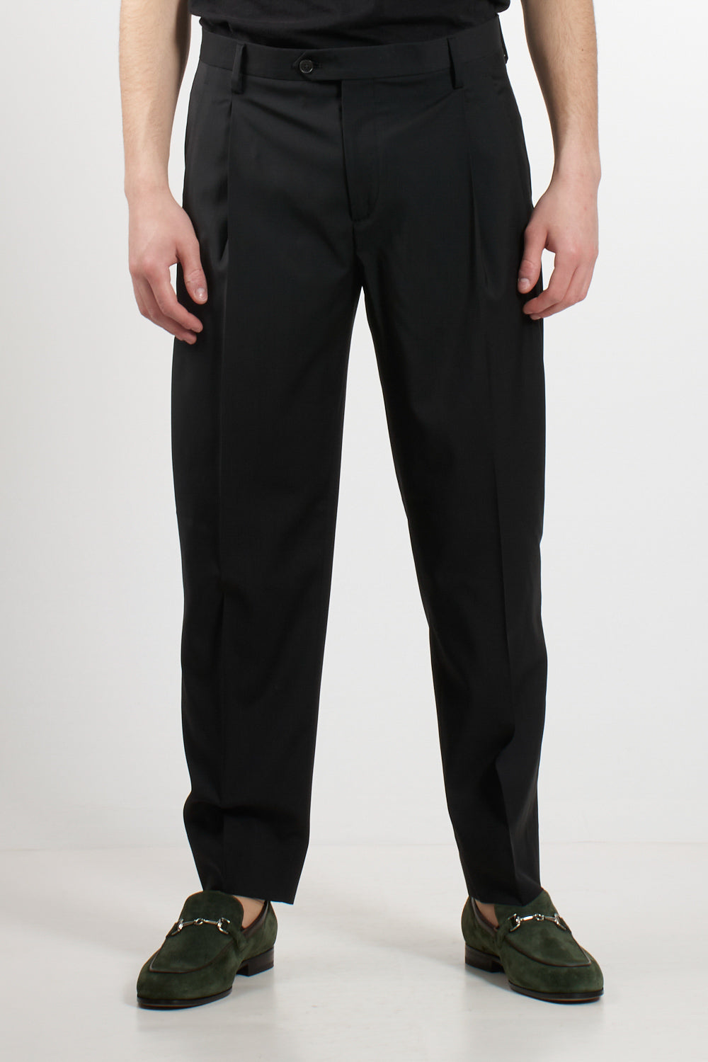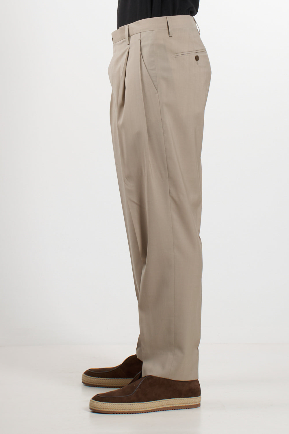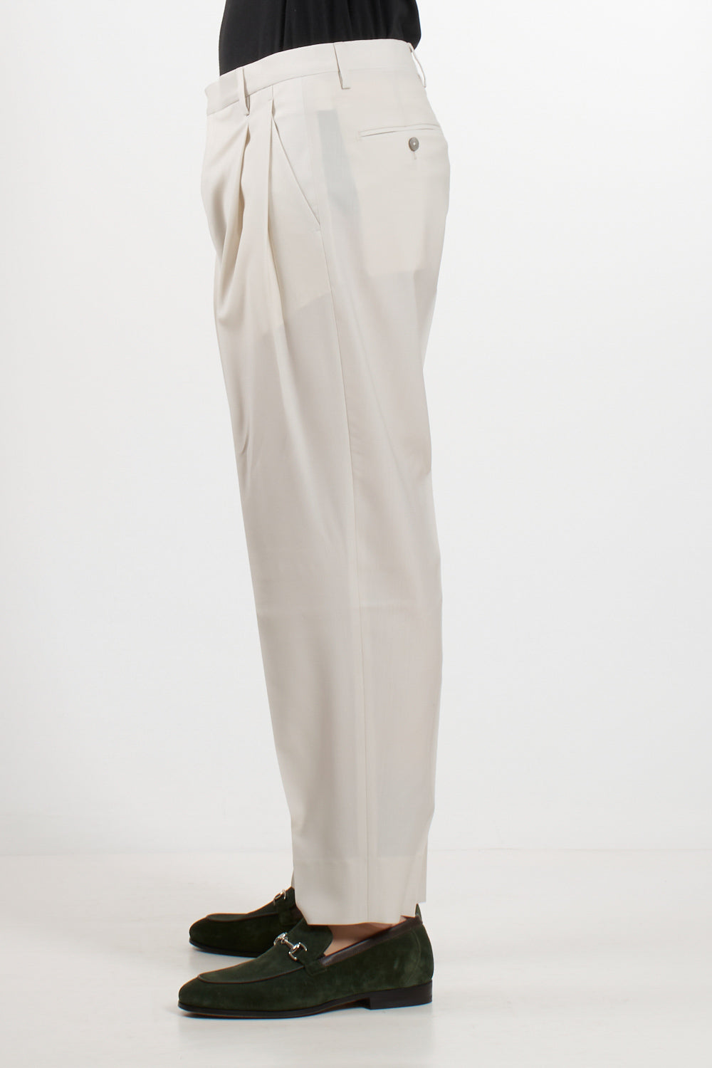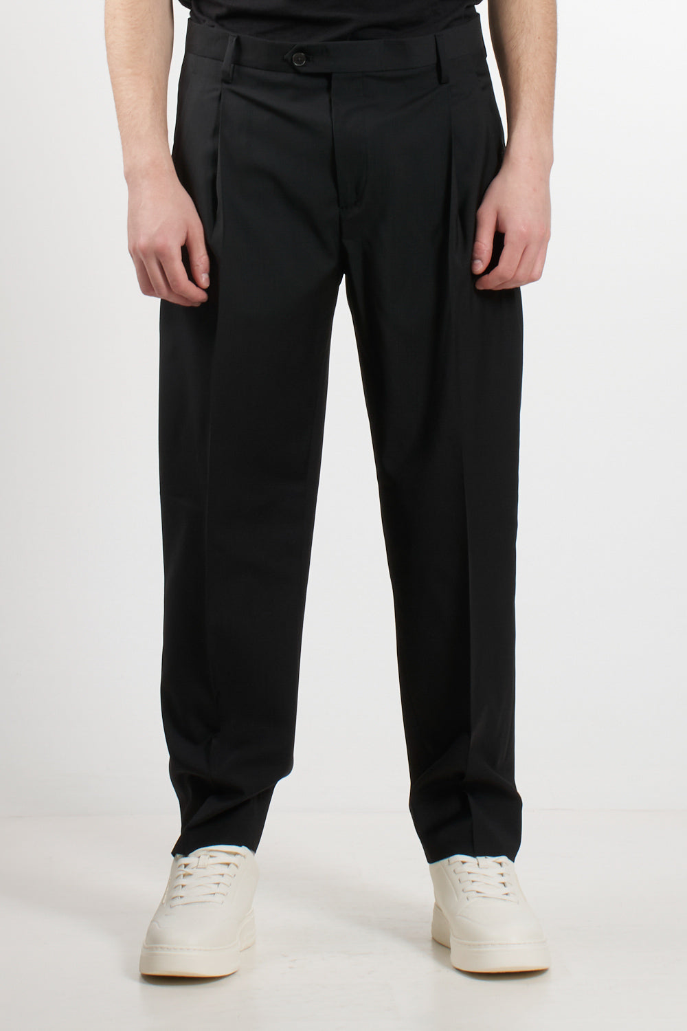 Arnos double pleat tailored trousers in pure wool. Featuring belt loops, two side pockets and a buttoned welt pocket on the back. The regular fit and lightweight fabric make them ideal for an elegant and comfortable look during the warm season.