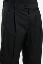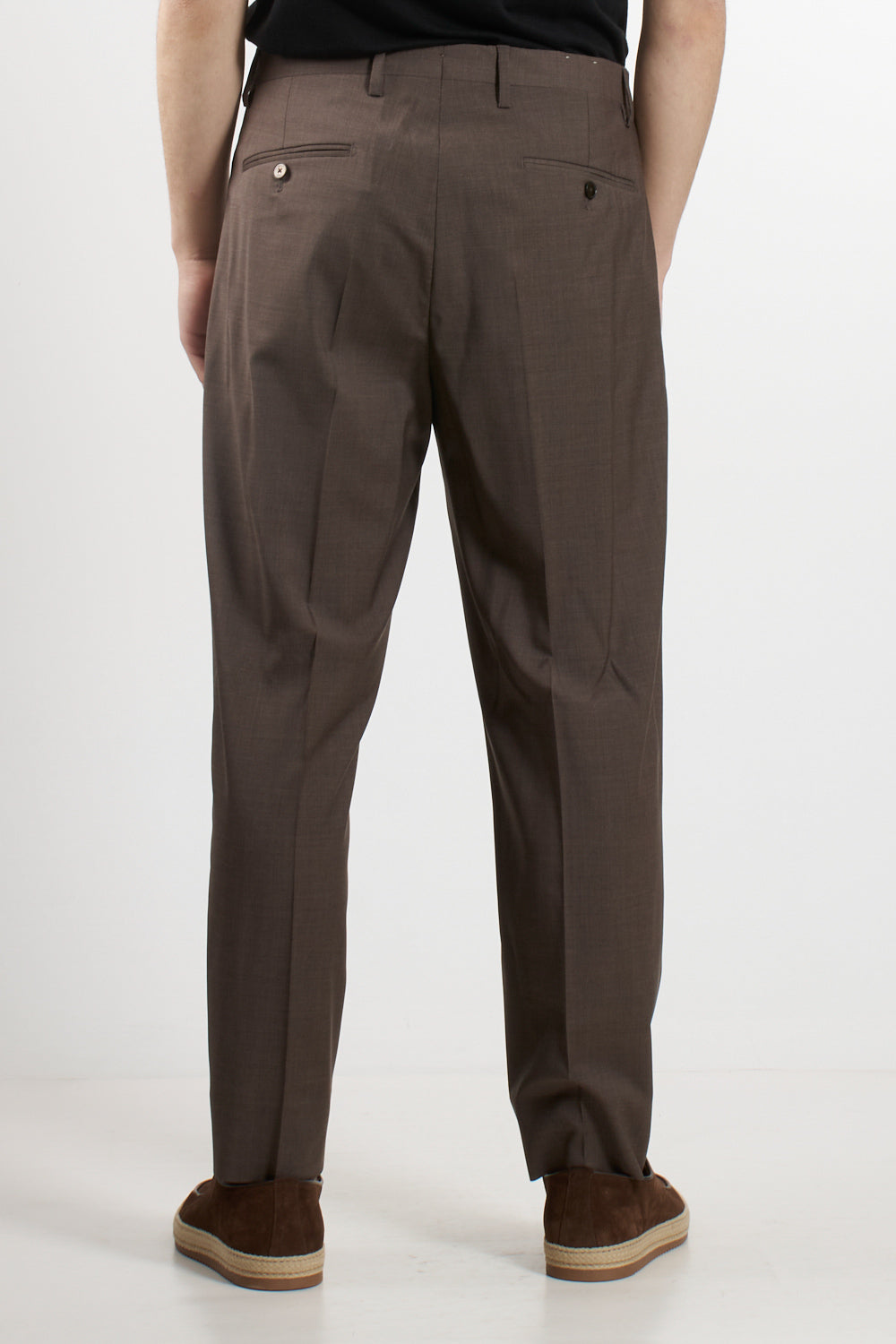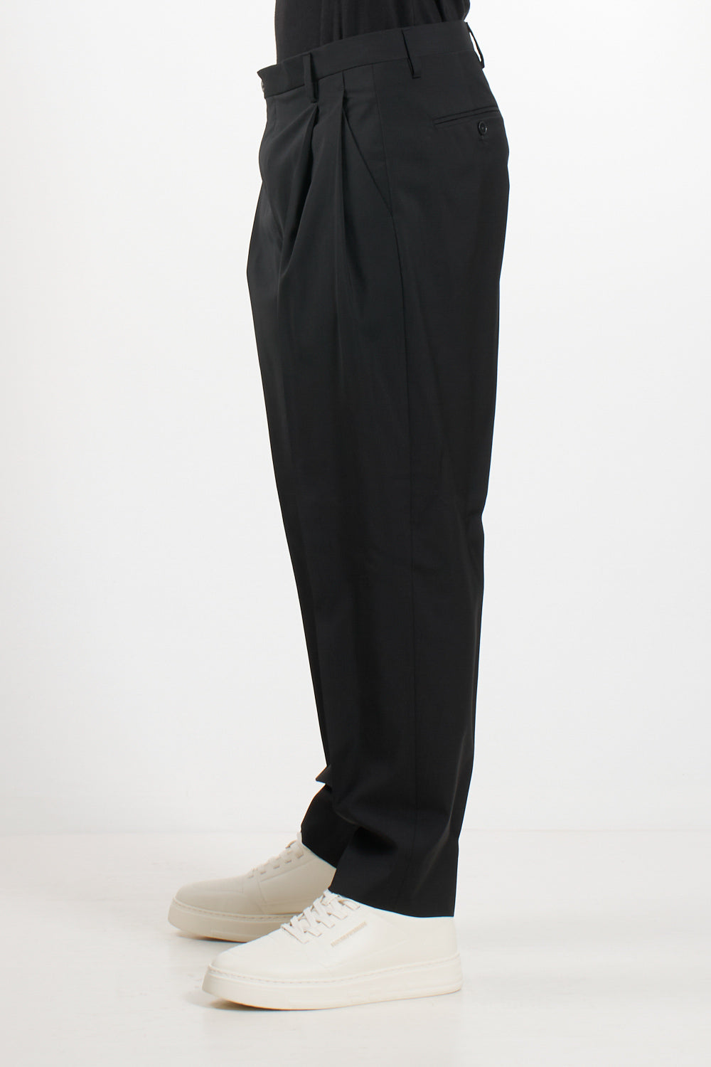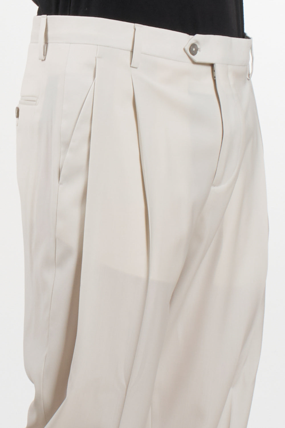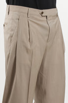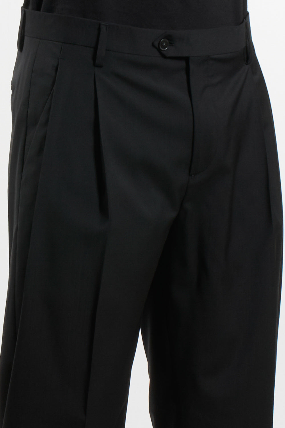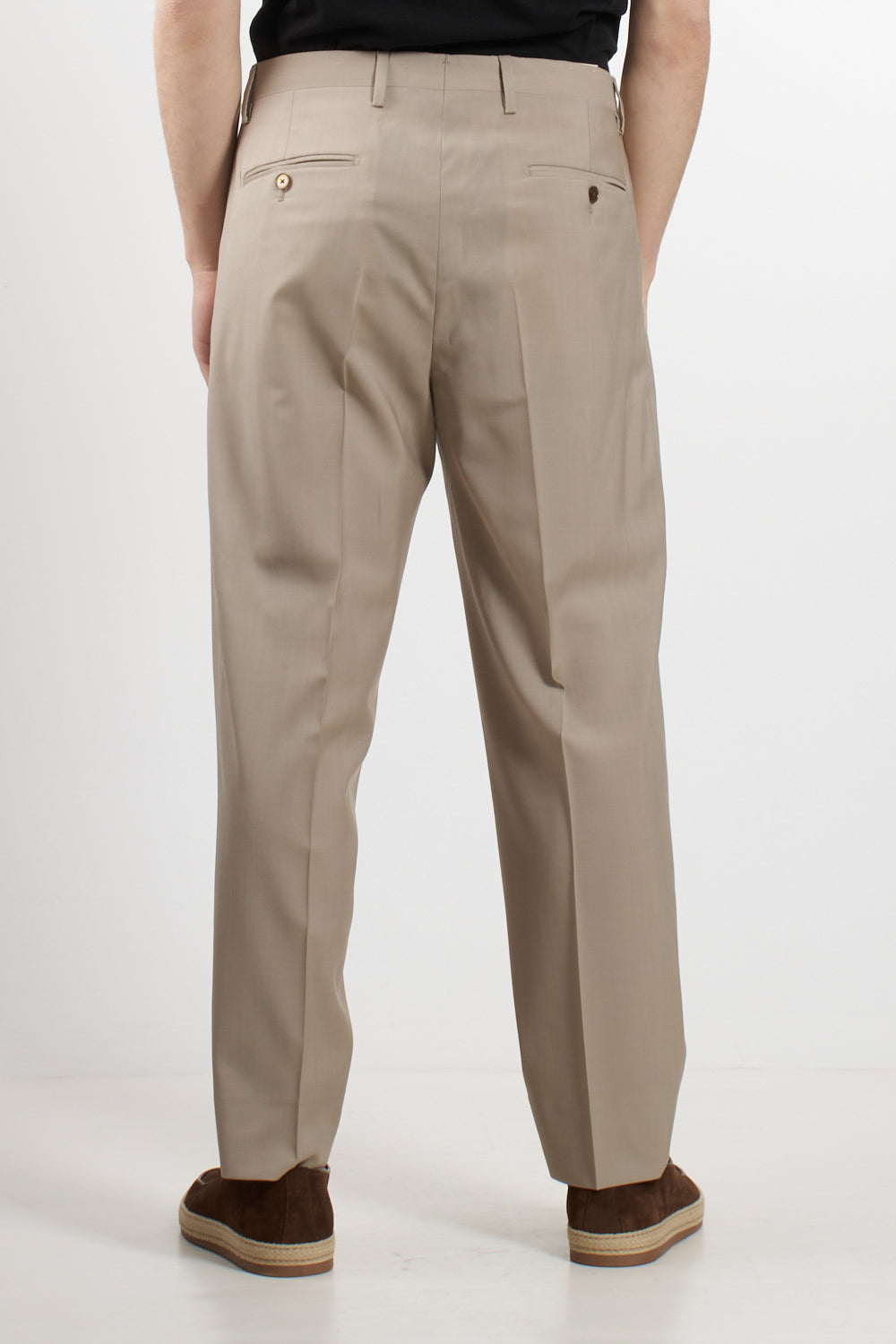 Arnos double pleat tailored trousers in pure wool. Featuring belt loops, two side pockets and a buttoned welt pocket on the back. The regular fit and lightweight fabric make them ideal for an elegant and comfortable look during the warm season.