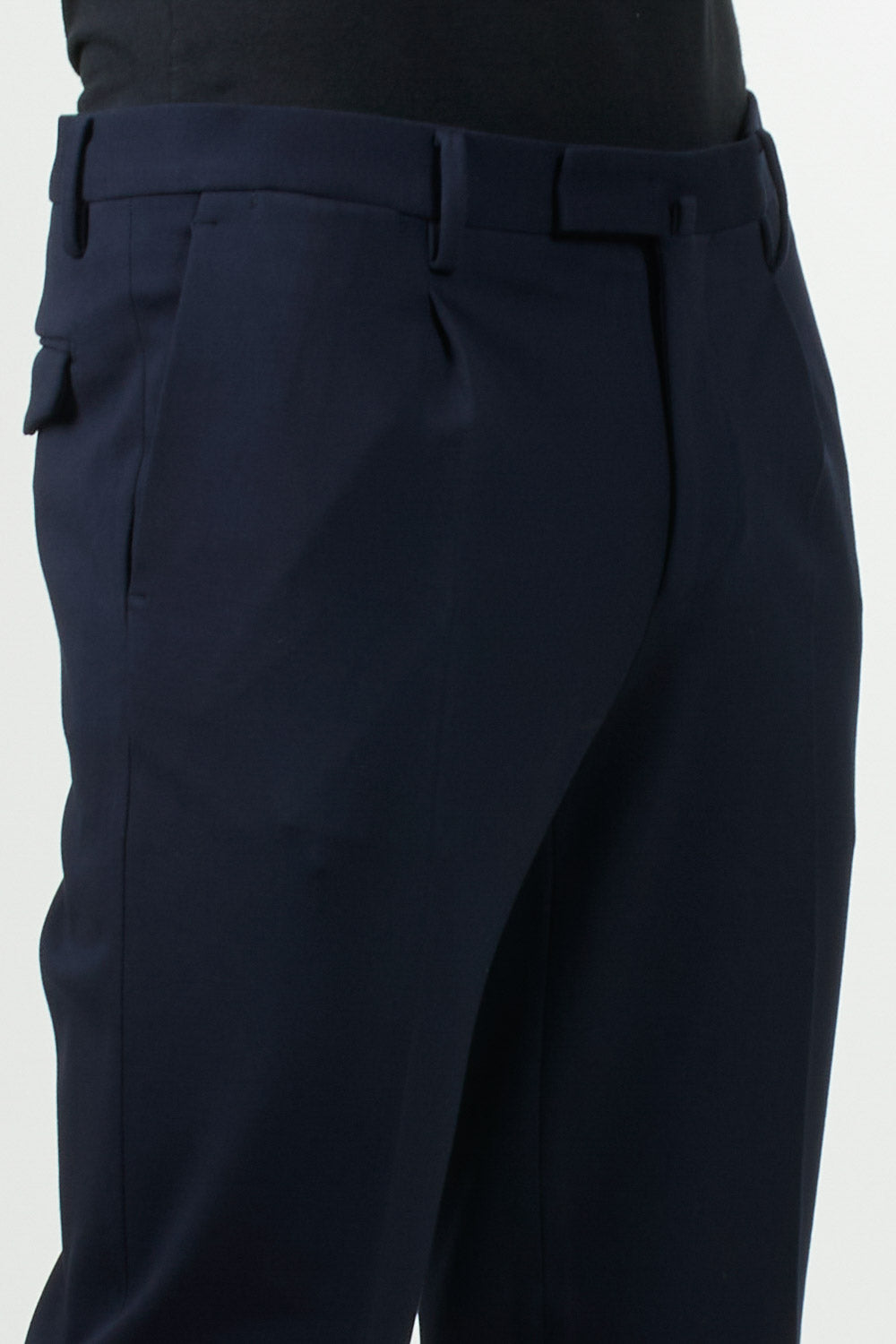 Tailored trousers by Briglia, featuring side slant pockets, belt loops and rear welt pockets with flap, clean lines and a straight fit.