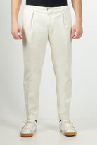 Portobello model Briglia trousers made of a blend of modal and cotton that guarantees comfort and fit, front darts and back welt pockets with button - Ideal for formal and refined casual looks.