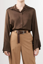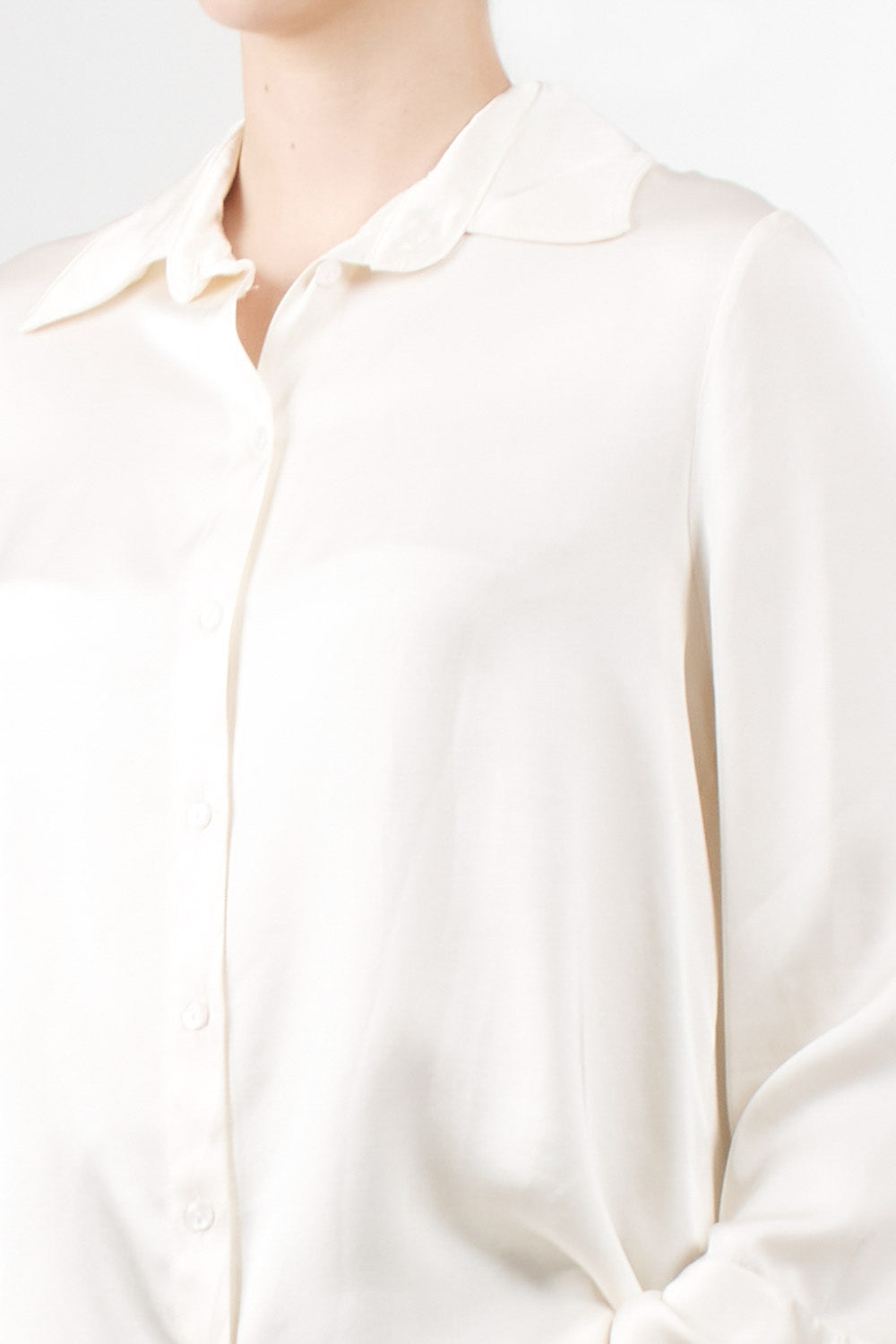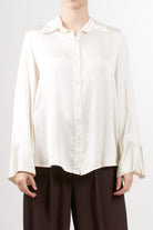 Motel's relaxed-fit long-sleeve shirt features a classic collar and wide cuffs. The shiny fabric and flowing construction make this piece ideal for elegant and formal outfits.