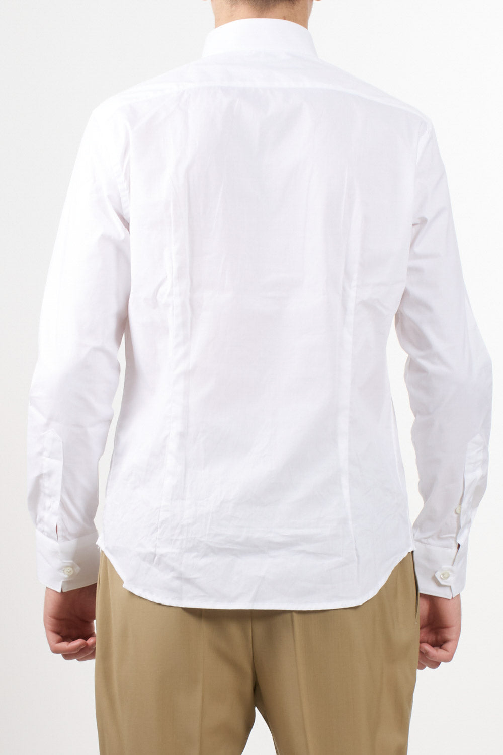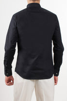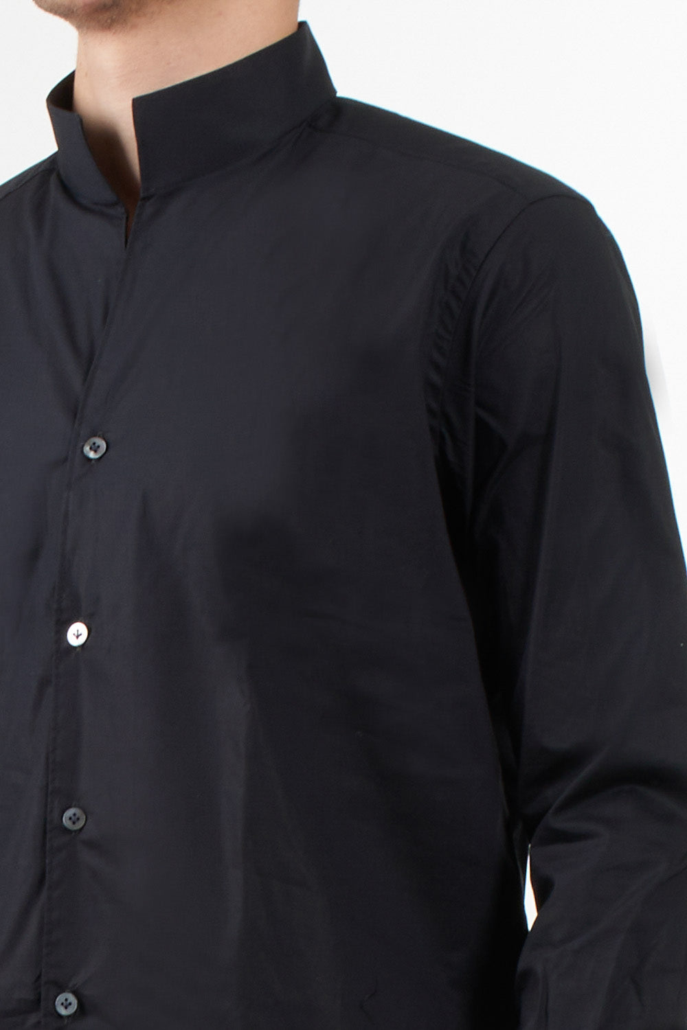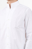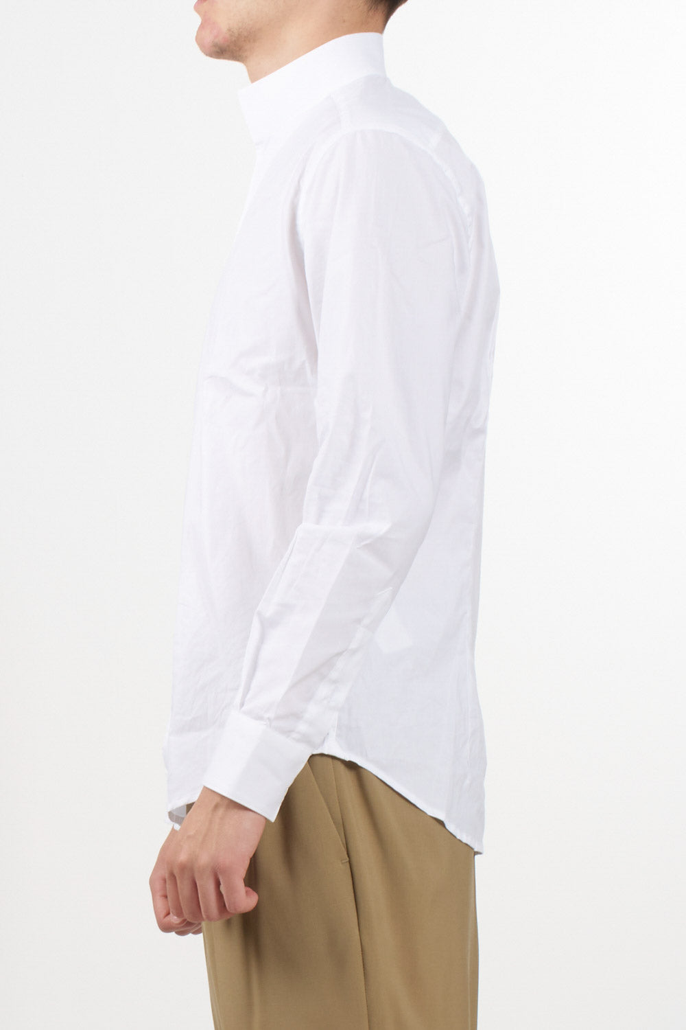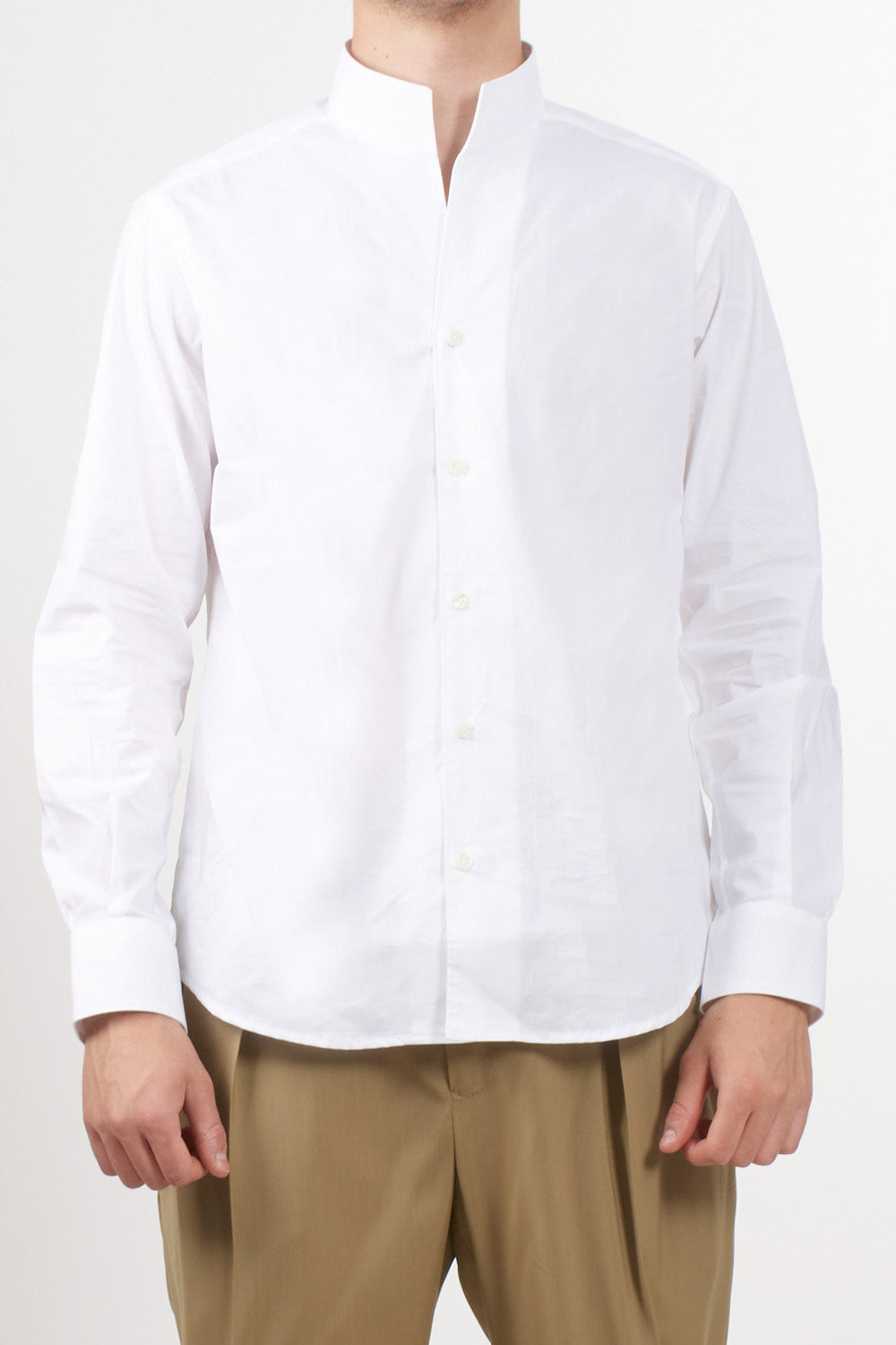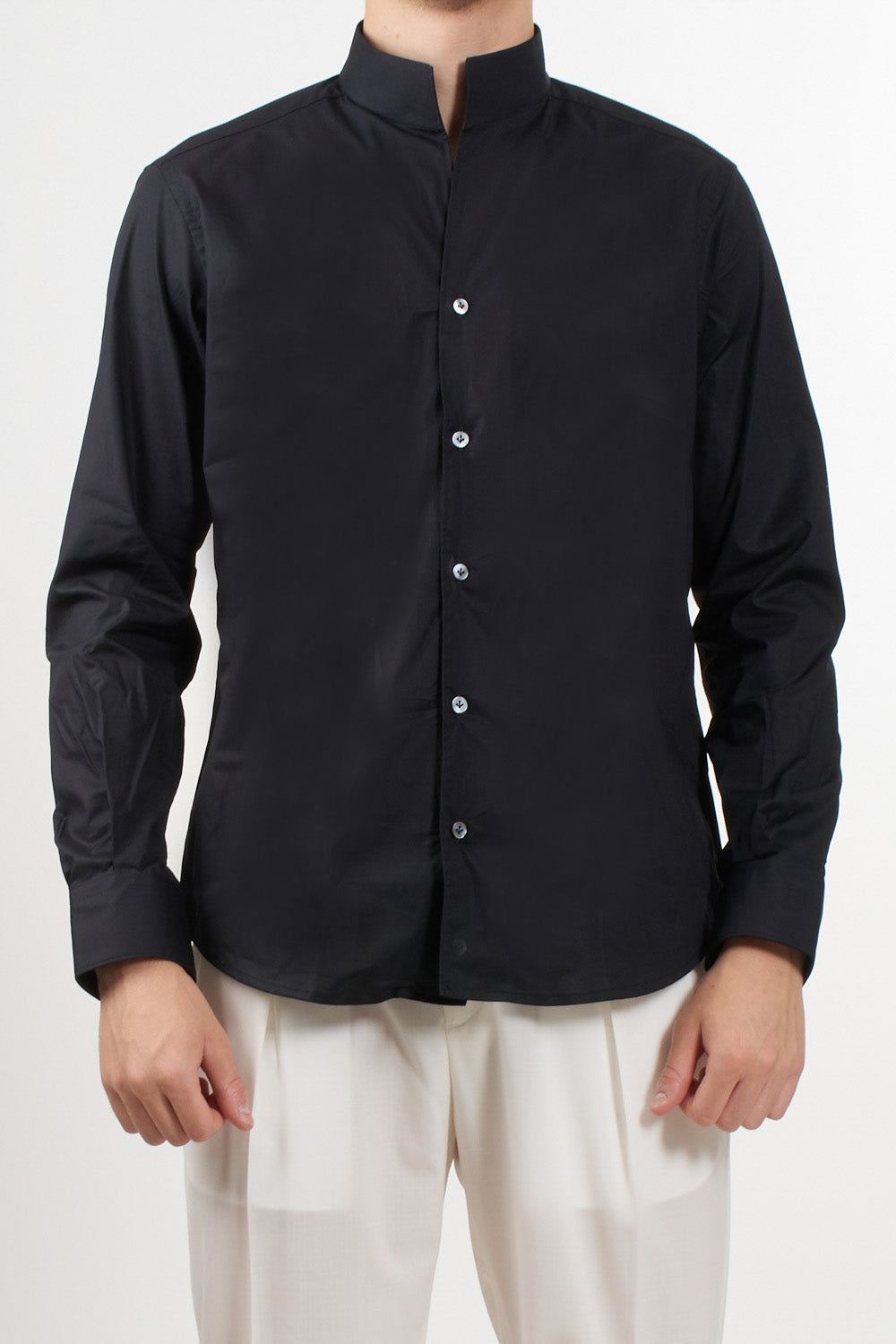 Caliban shirt, featuring a clean design with guru collar and front buttoning. The straight line and light natural fabric make it ideal for the summer season, to be worn in both casual and elegant contexts. Buttoned cuffs and regular bottom.