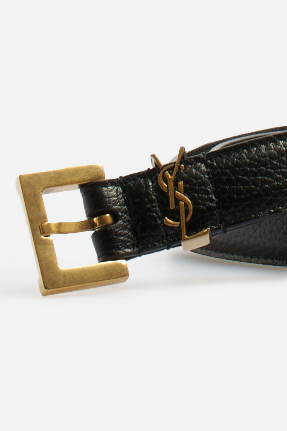 The belt Cassandra Thin The Belt Cassandra thin of Saint Laurent And a accessory iconic That unites elegance And identity stylistics. Made in skin Of high quality, And characterized from the buckle square in metal golden with logo YSL engraved, symbol distinctive from the House. Perfect For to enhance pants, clothes , adds a touch Of refinement to Everything is fine look.