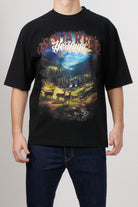 Dsquared2 loose-fit cotton T-shirt featuring a large landscape-themed front print with "Heritage" writing and the Dsquared2 logo. The style features a ribbed crew neck and short sleeves for a distinctive and contemporary look with an artistic edge.