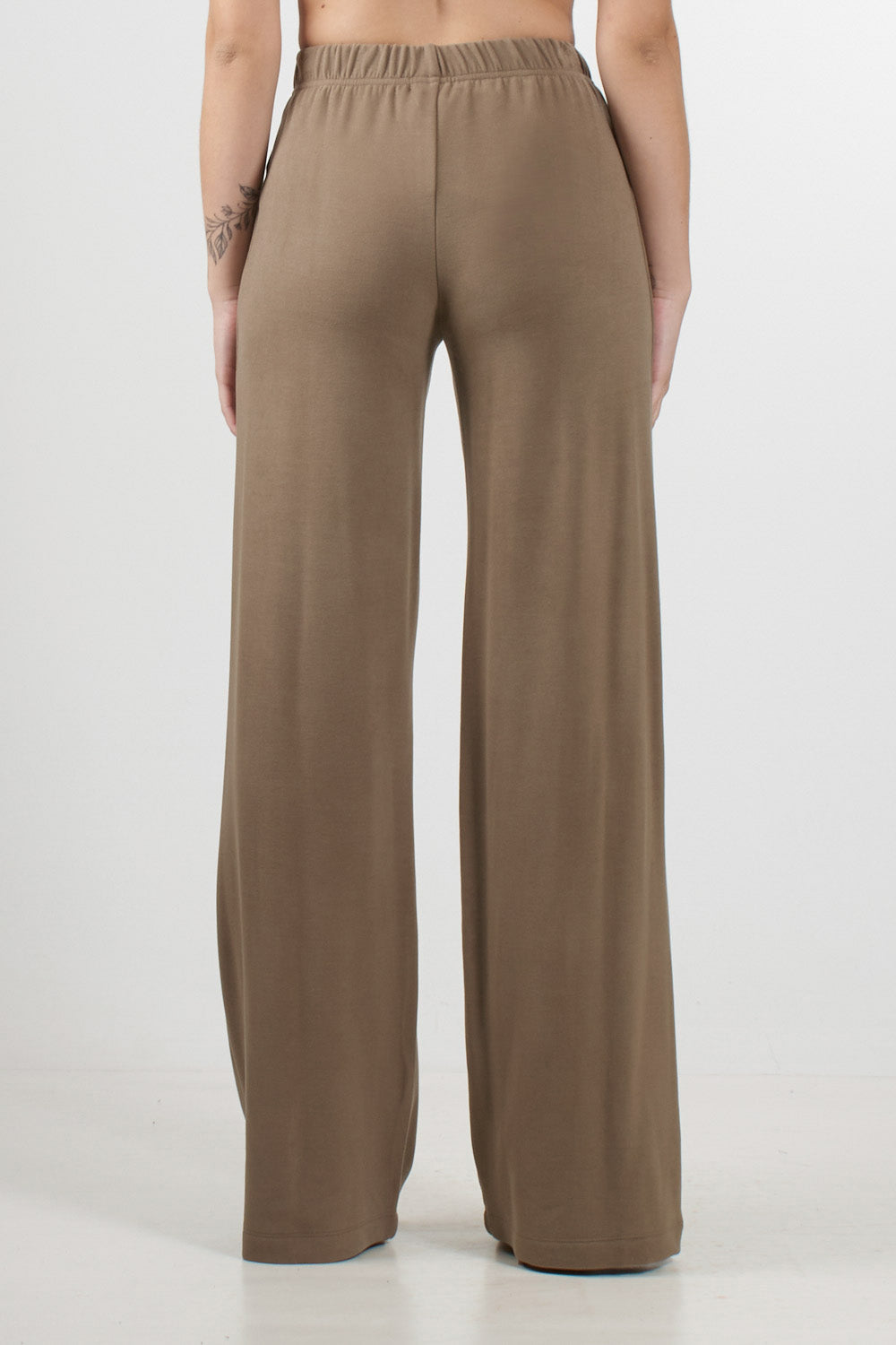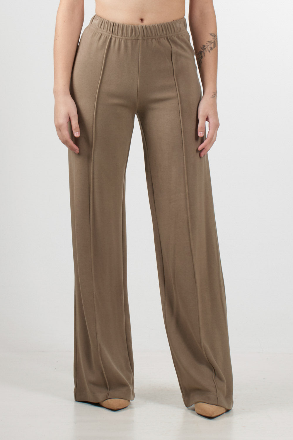 Eleh high-waisted trousers with an elastic waistband and palazzo fit, featuring vertical seams down the front. A versatile piece, suitable for both casual and more elegant looks.