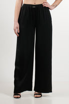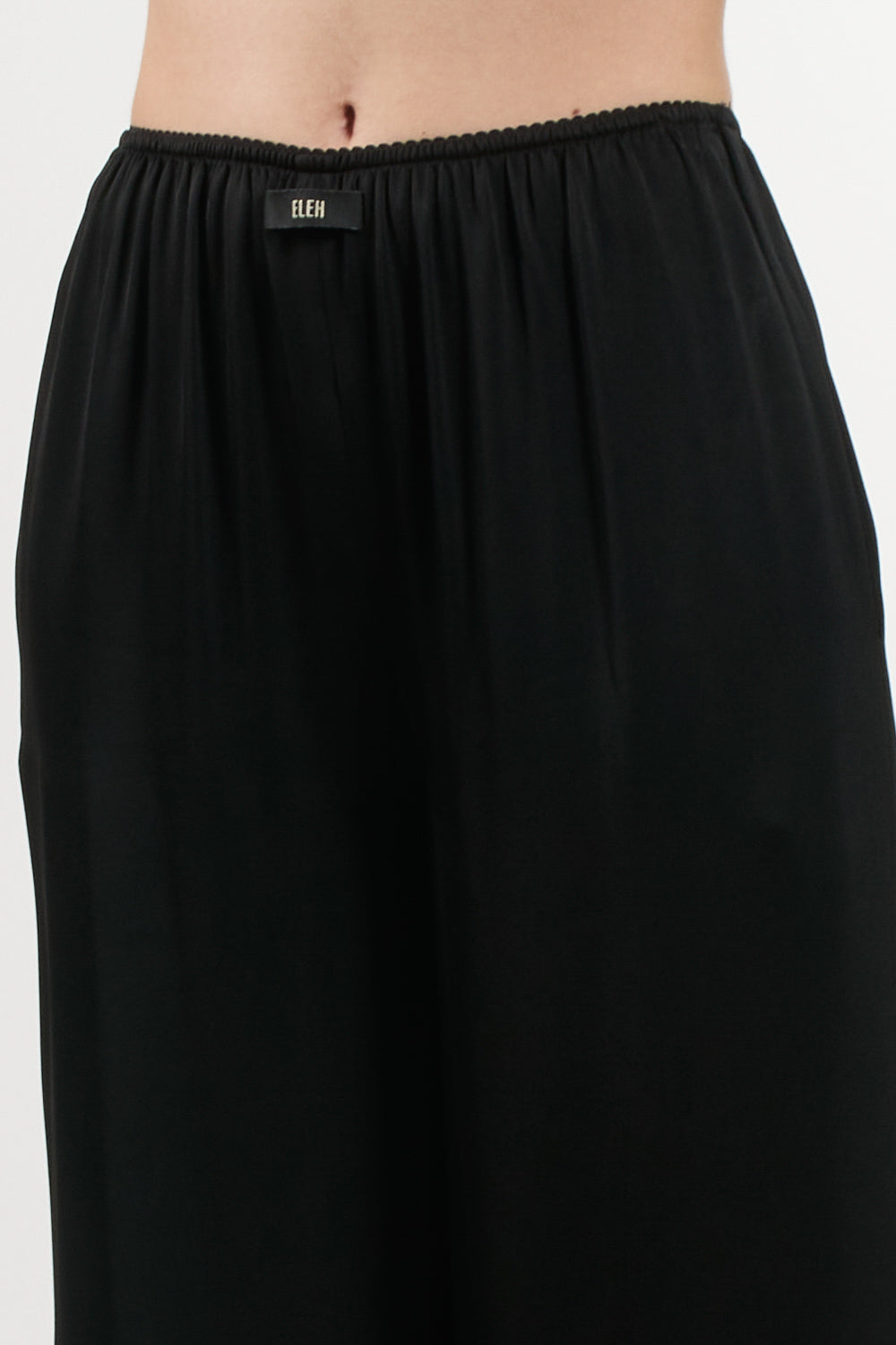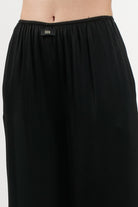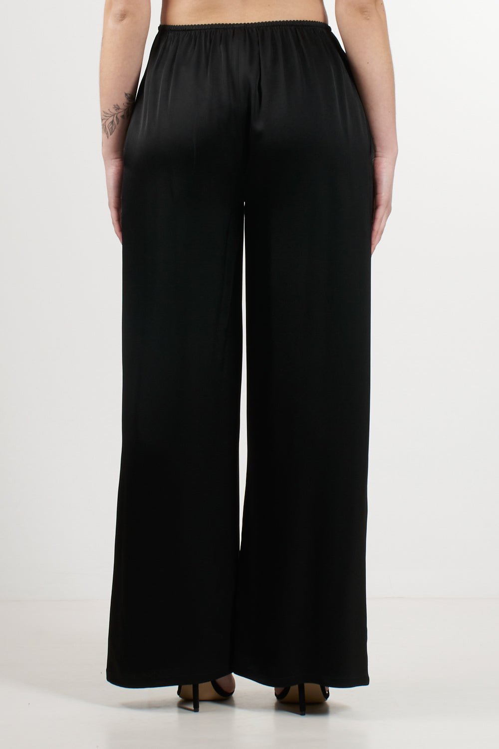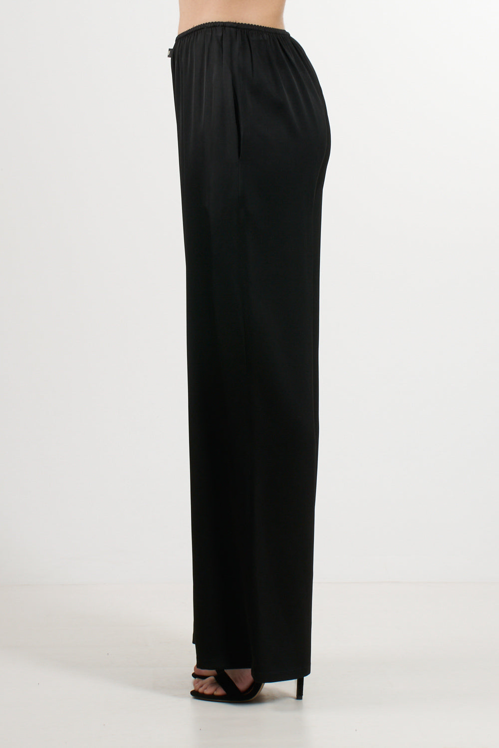 Palazzo trousers in flowing fabric, featuring an elasticated waist, front micrologo and side pockets. The loose design and soft line make it ideal for elegant and comfortable summer looks.