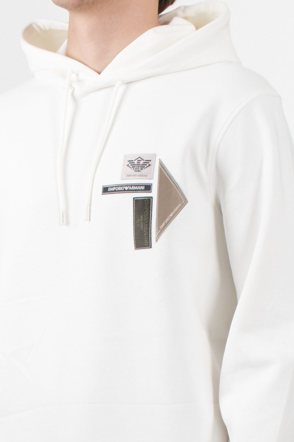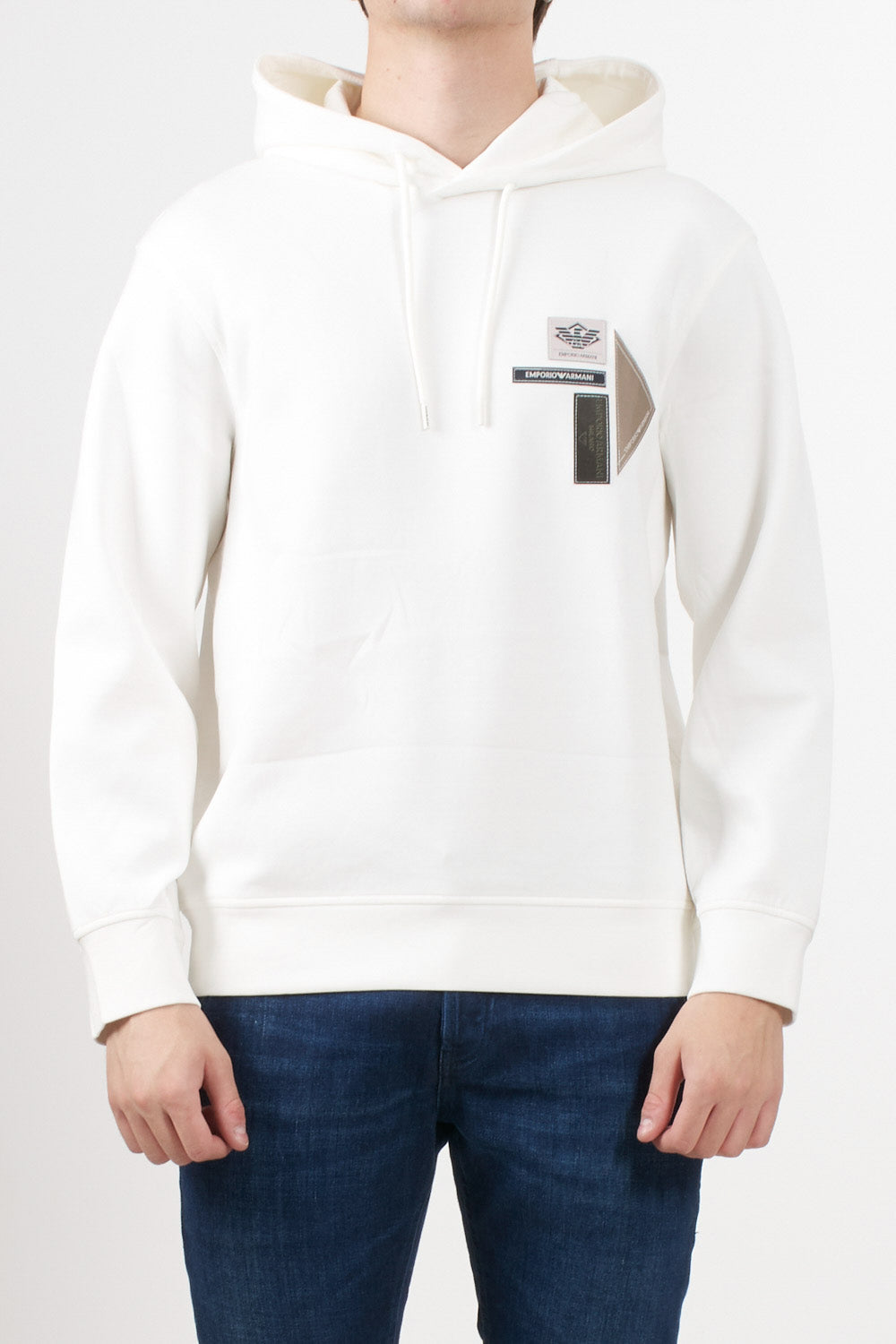 Hoodie with drawstring, patch and appliqués on the chest. Clean, essential lines, ideal for a casual and contemporary look.