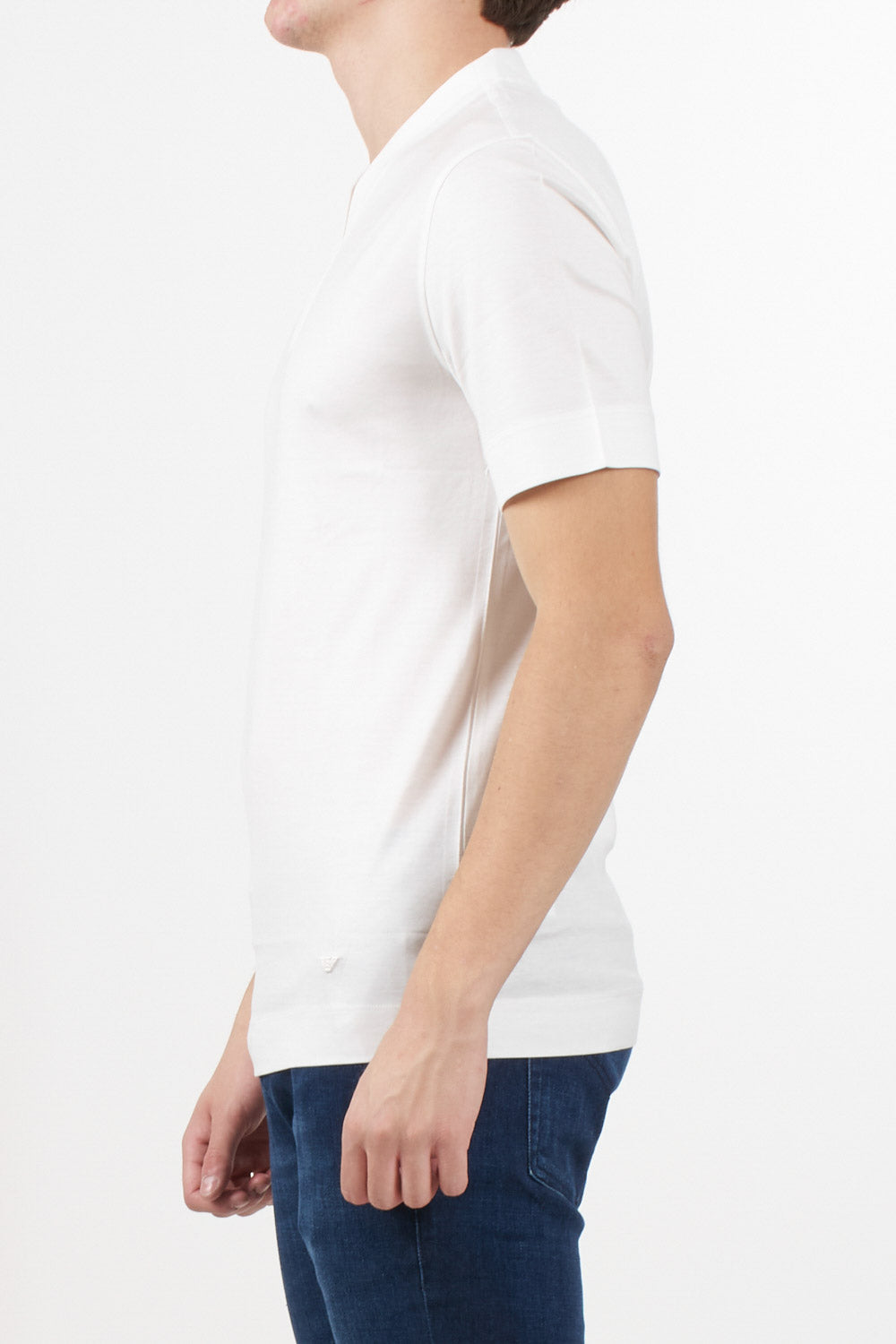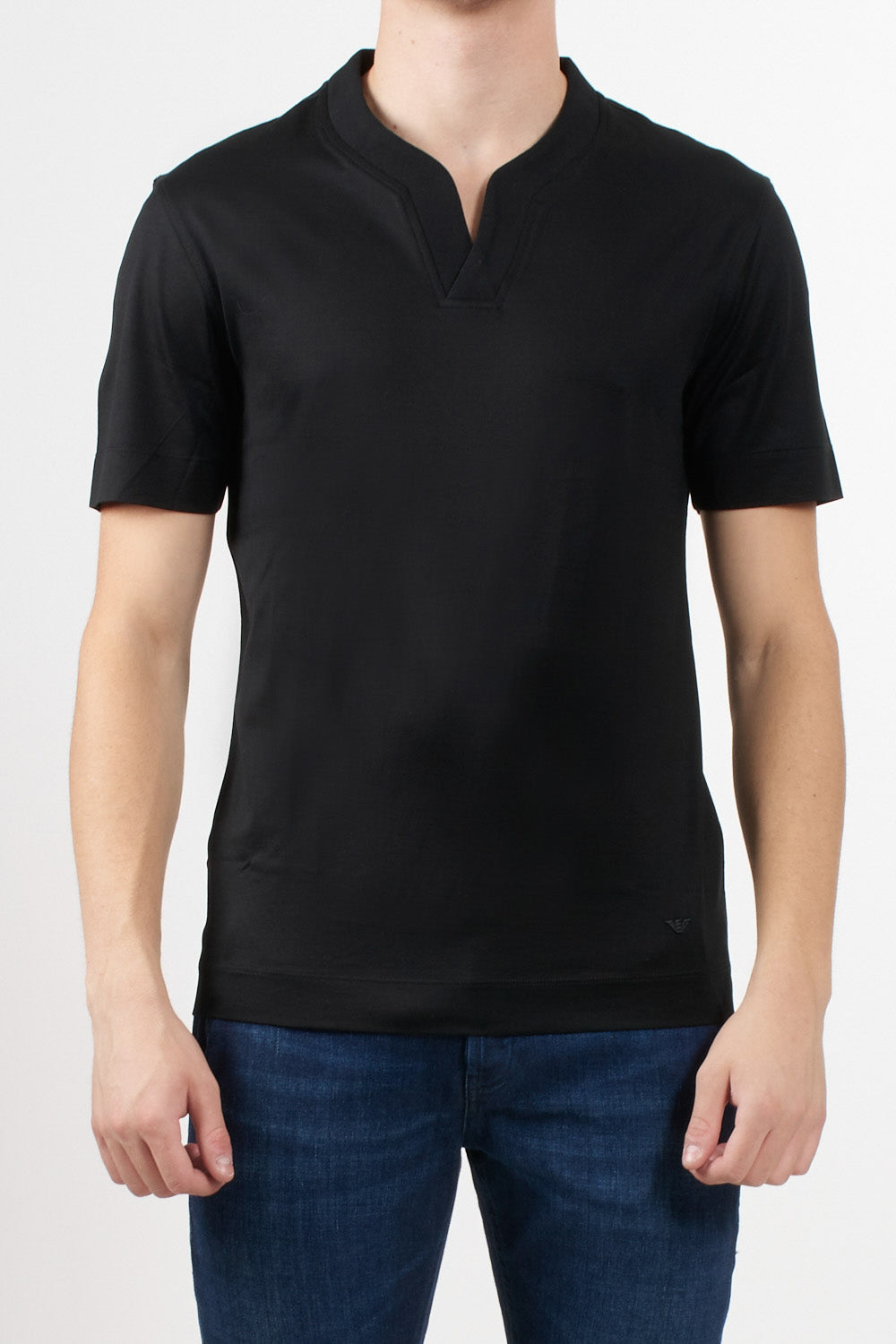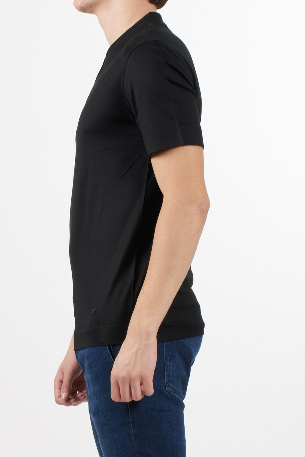 Emporio Armani T-shirt with V-neckline and piquet trim, made of lyocell blend jersey, short sleeves, regular fit