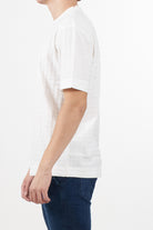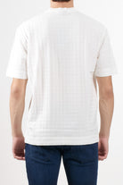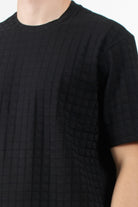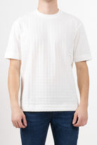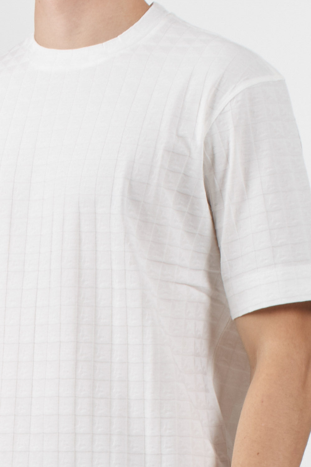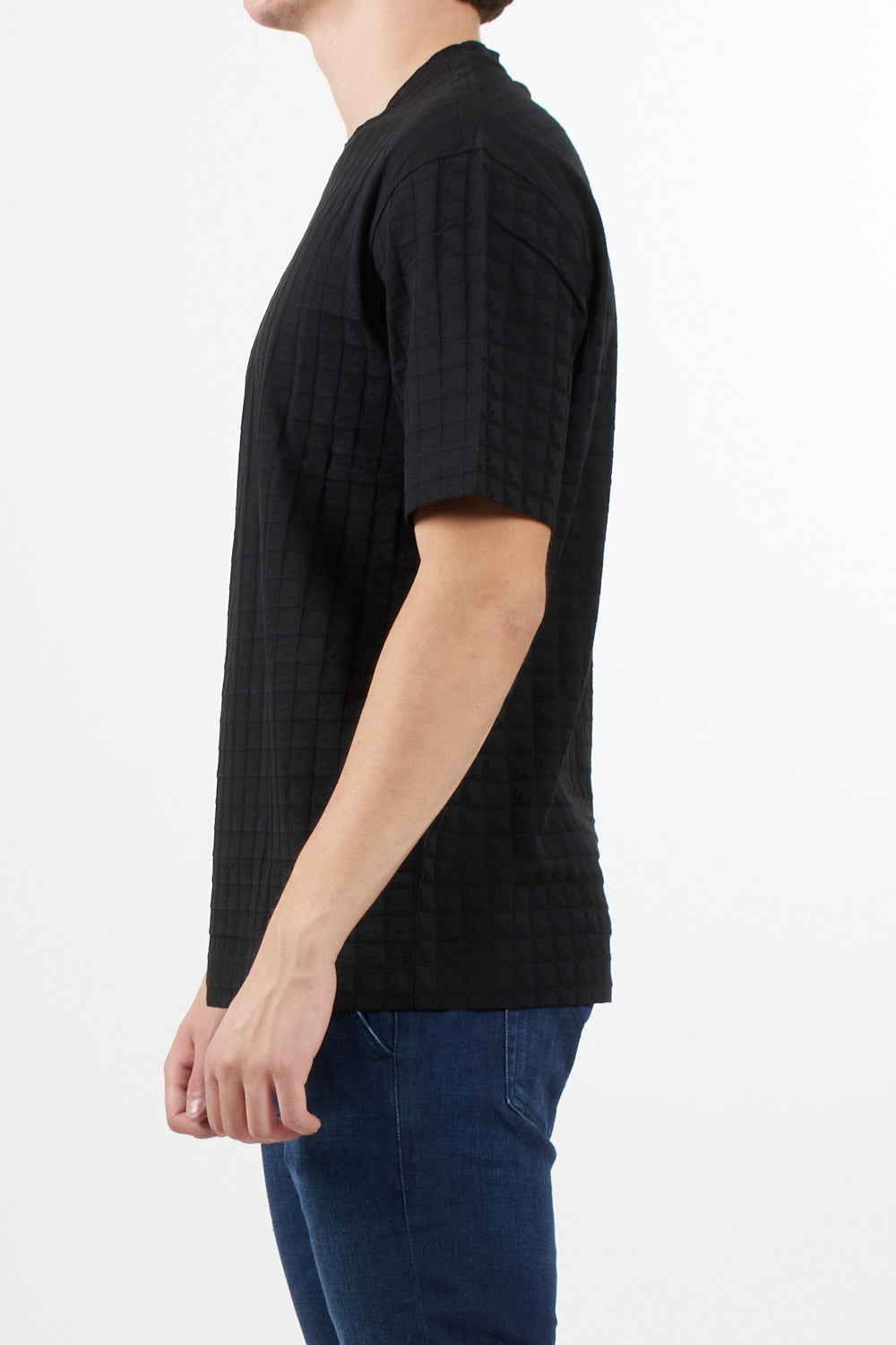 Crew neck T-shirt by Emporio Armani made of cotton jersey, jacquard knit, all-over raised check motif, repeated eagle in the same tone that creates a particular optical effect.