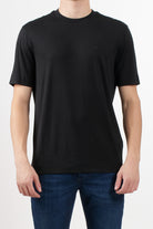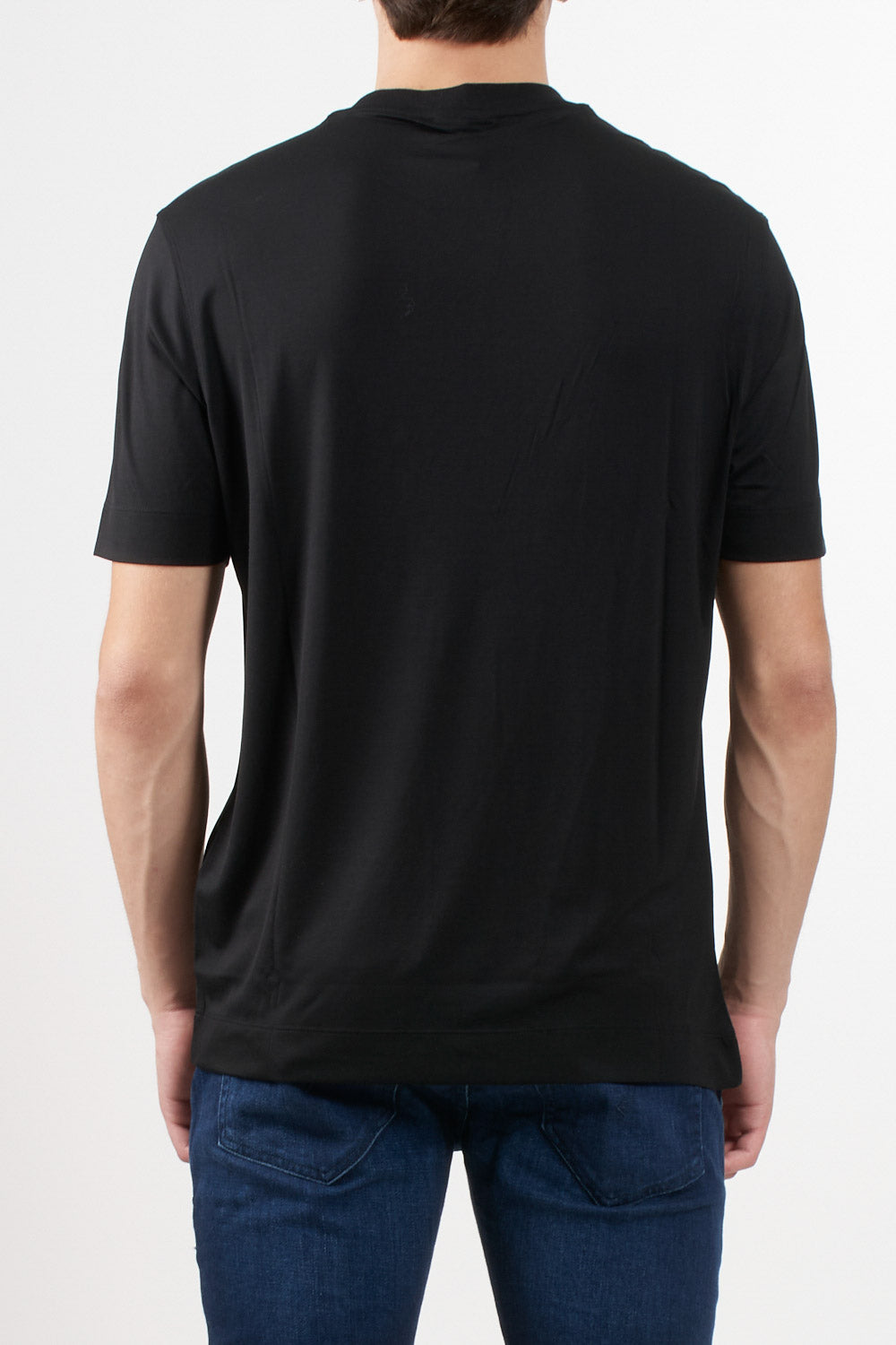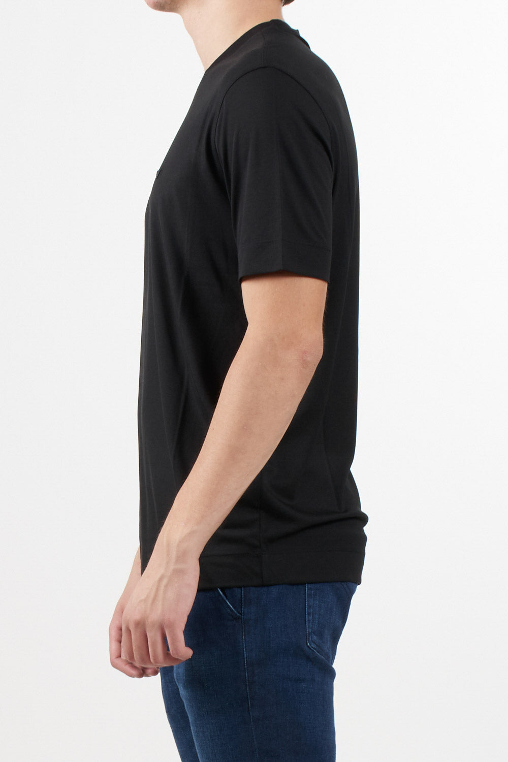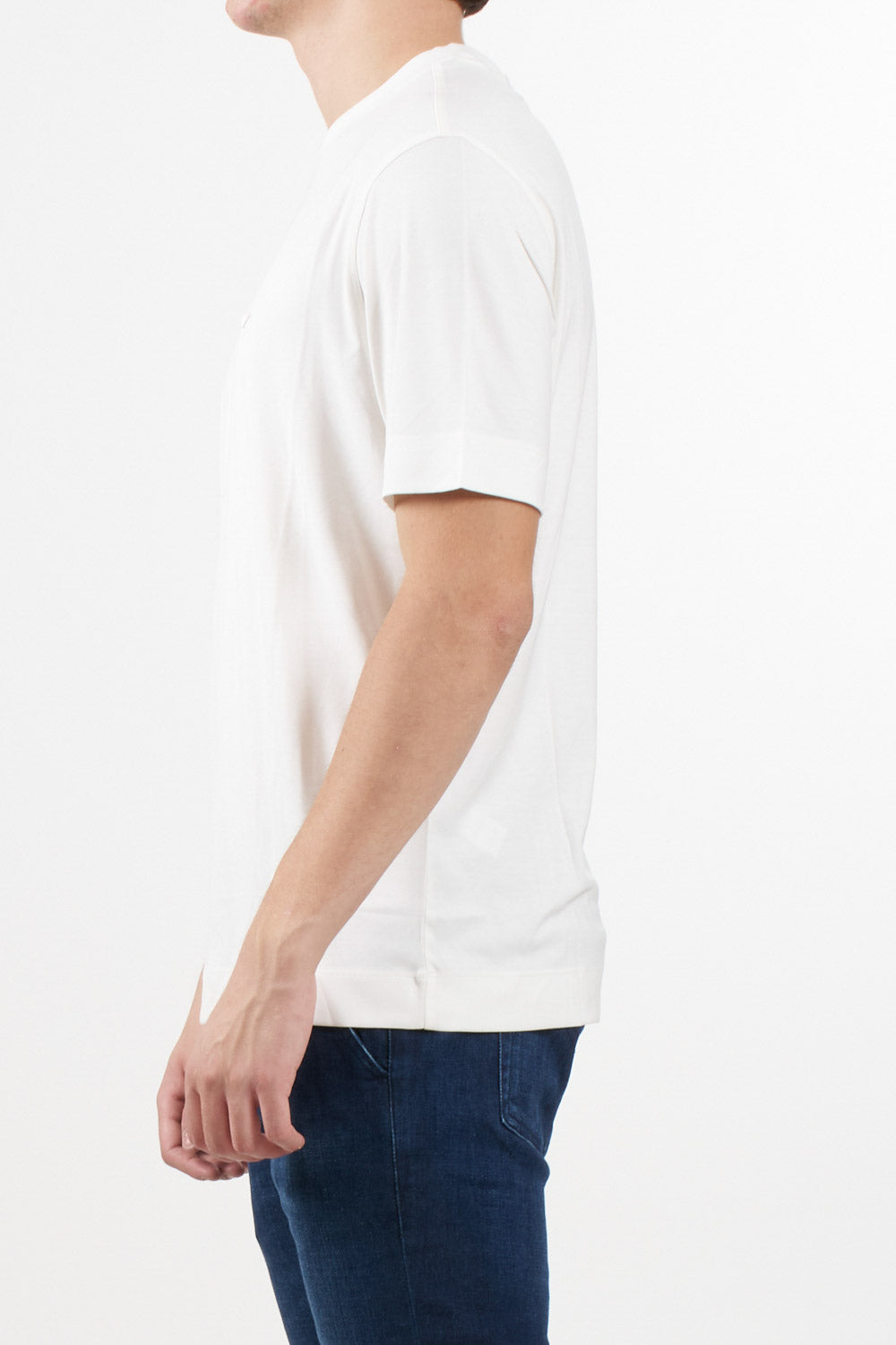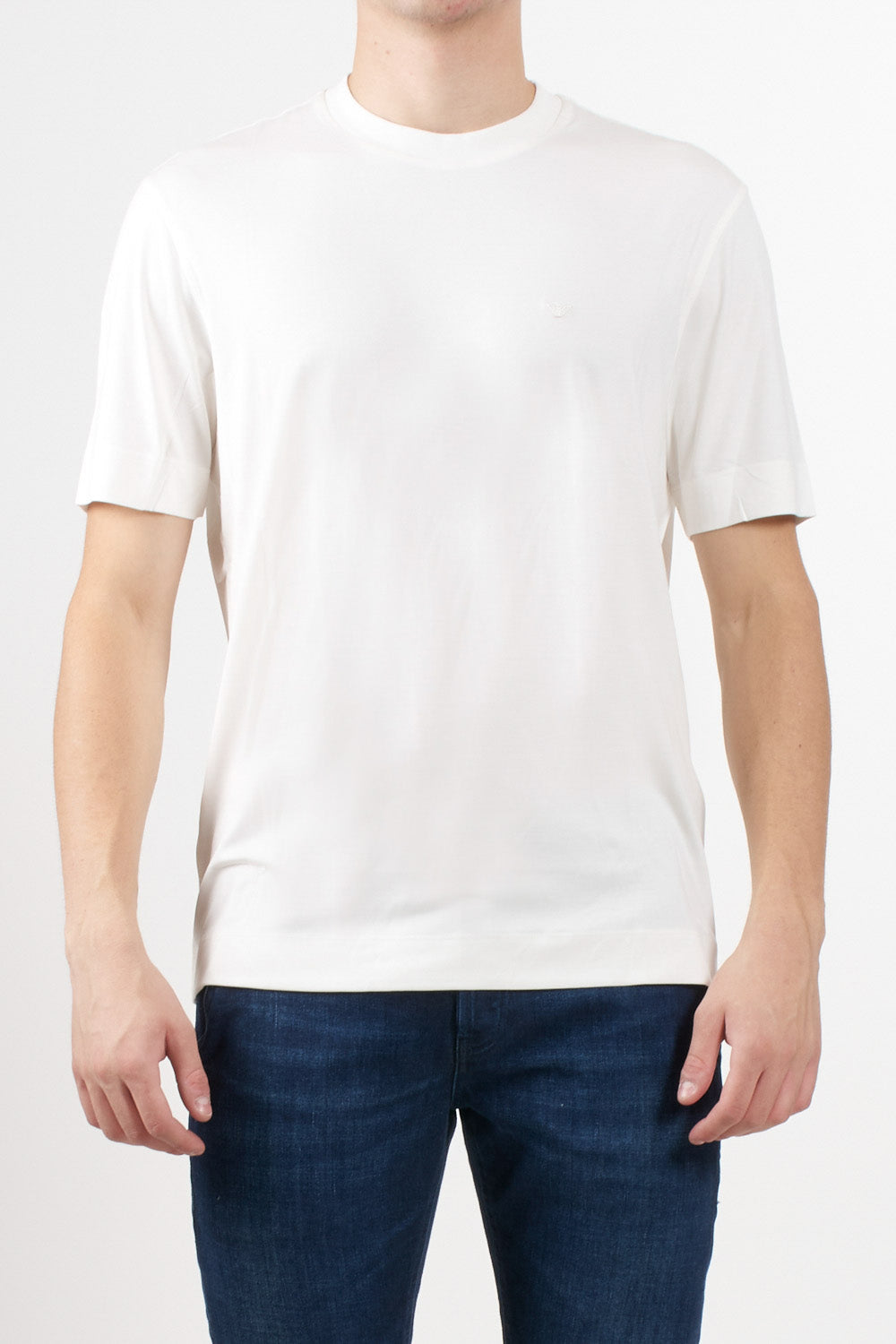 Crew neck T-shirt by Emporio Armani with micro eagle embroidery on the chest in tone, made of modal jersey, a super fluid and soft fabric.