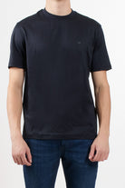 Crew-neck T-shirt in a cotton and lyocell blend jersey, with a simple yet distinctive style. The tone-on-tone embroidered micro eagle detail on the chest adds an iconic yet subtle touch. Ideal for a clean, sophisticated look, perfect under jackets or with casual denim.