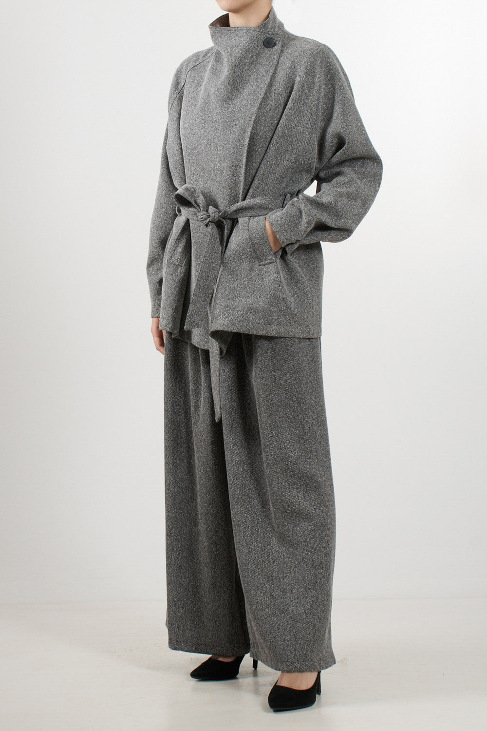 Salt and pepper jacket with belt